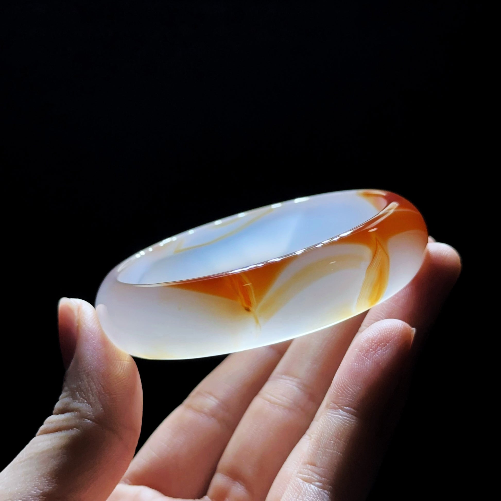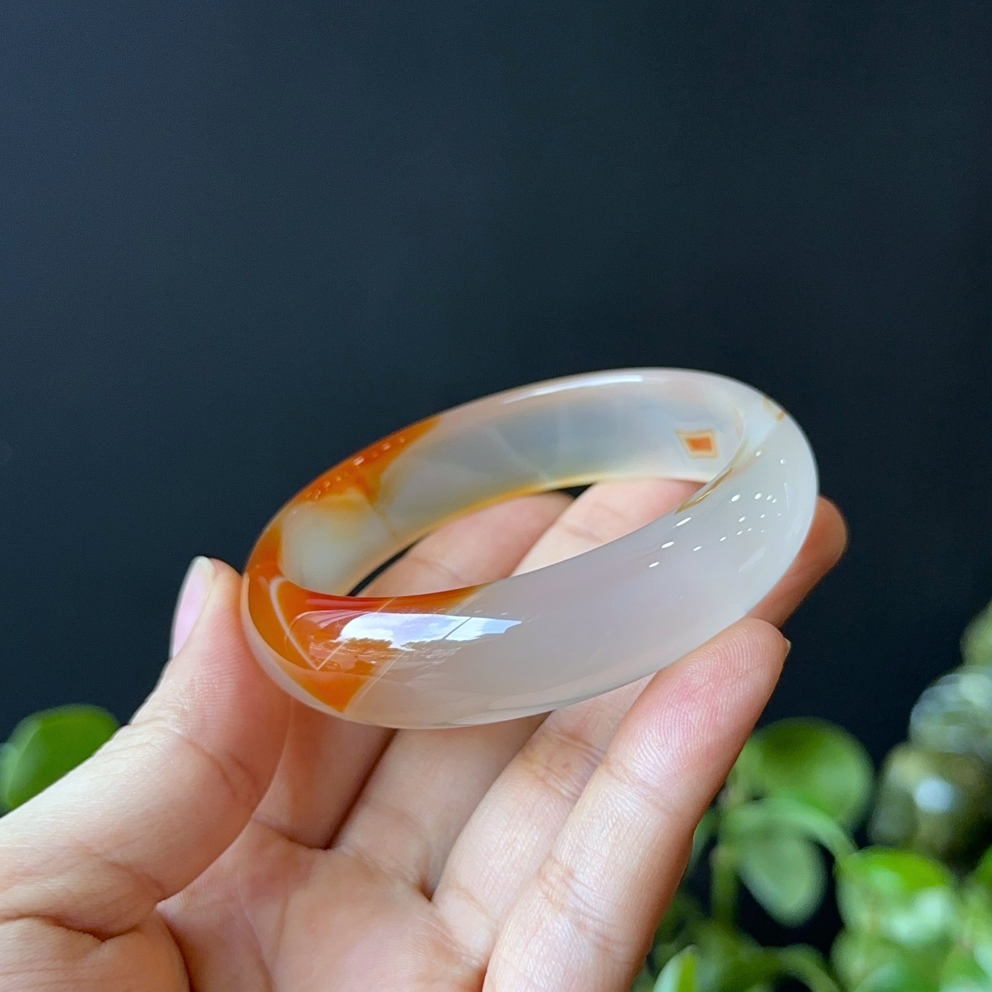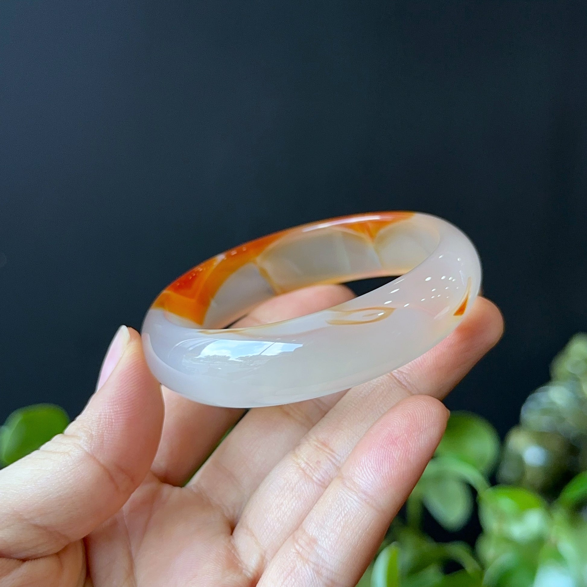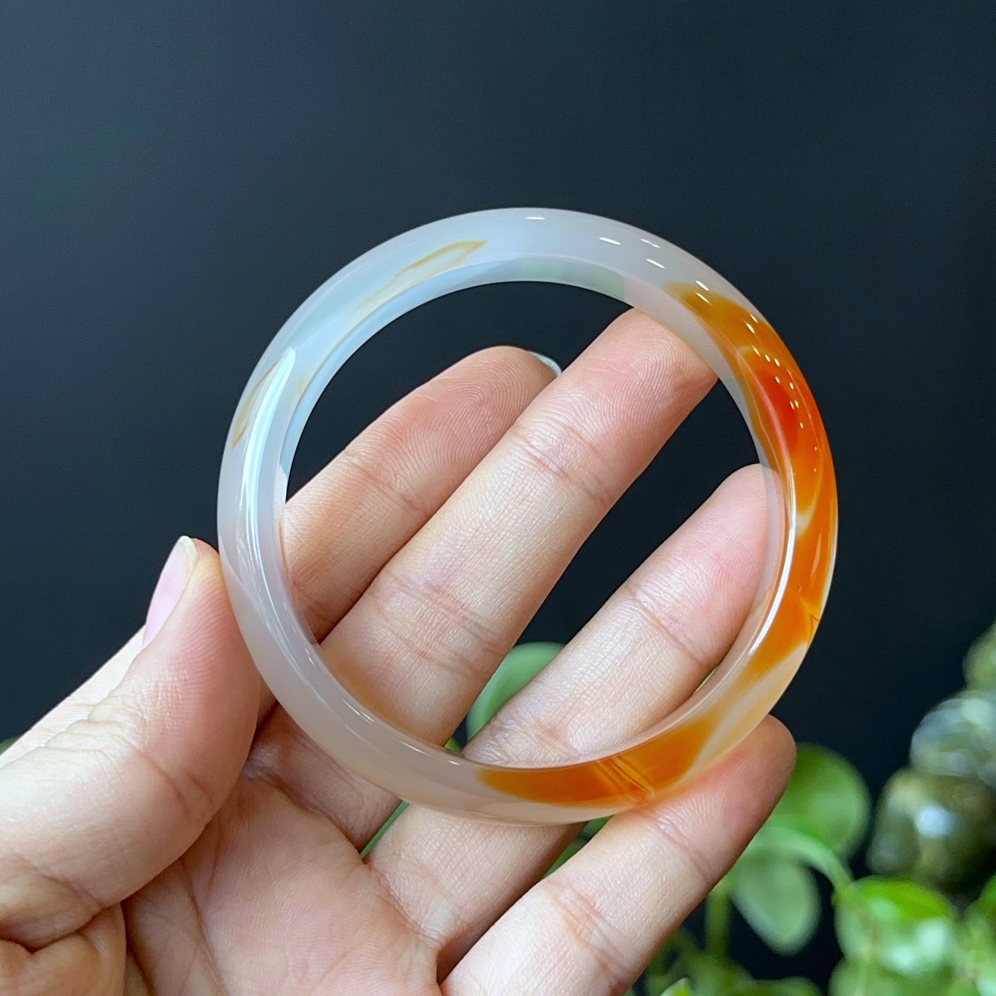 Natural Red Agate Bangle Leaf Style Size 57 mm