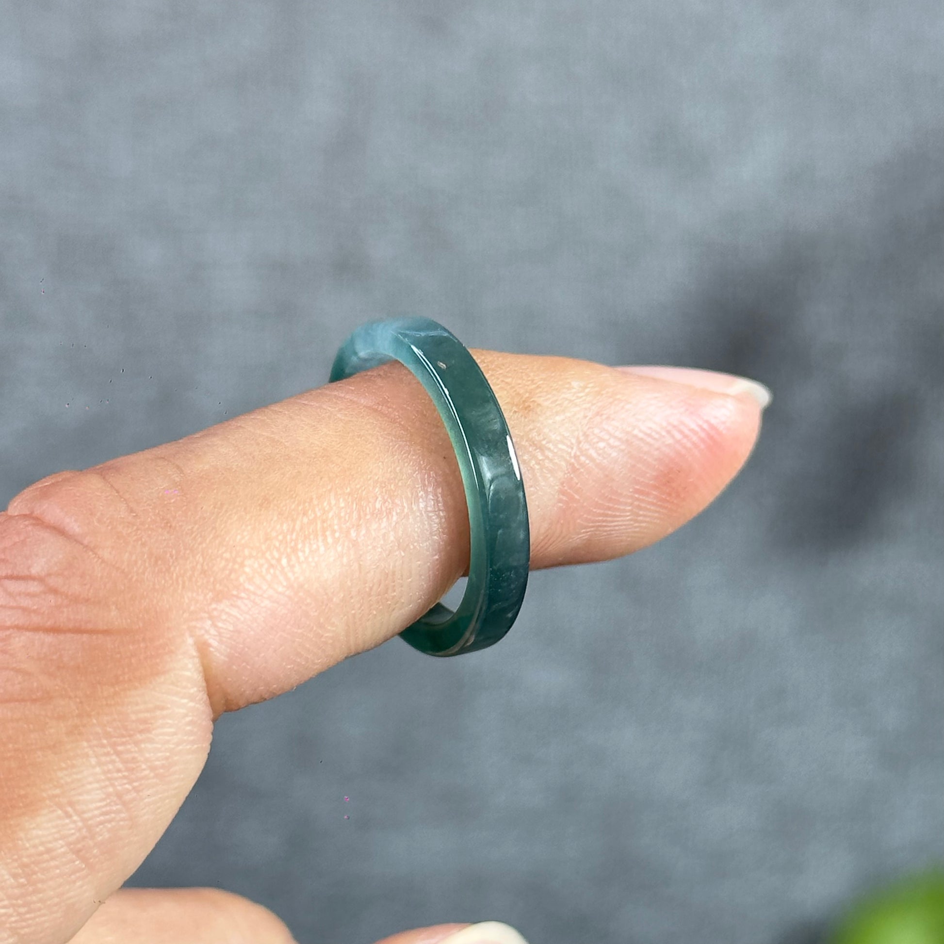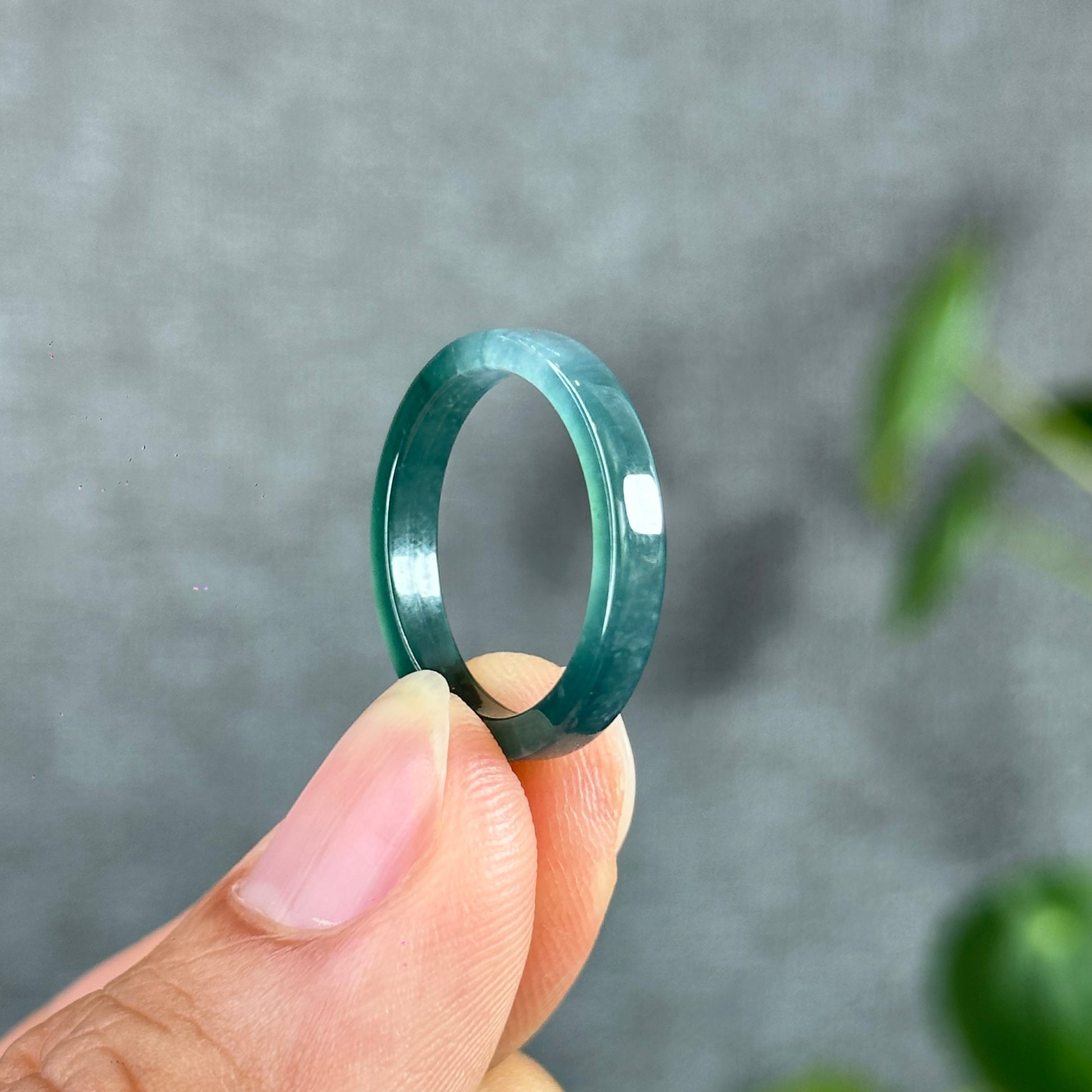 - Natural Water Green Jadeite Jade Ring Square Style Size 1.72