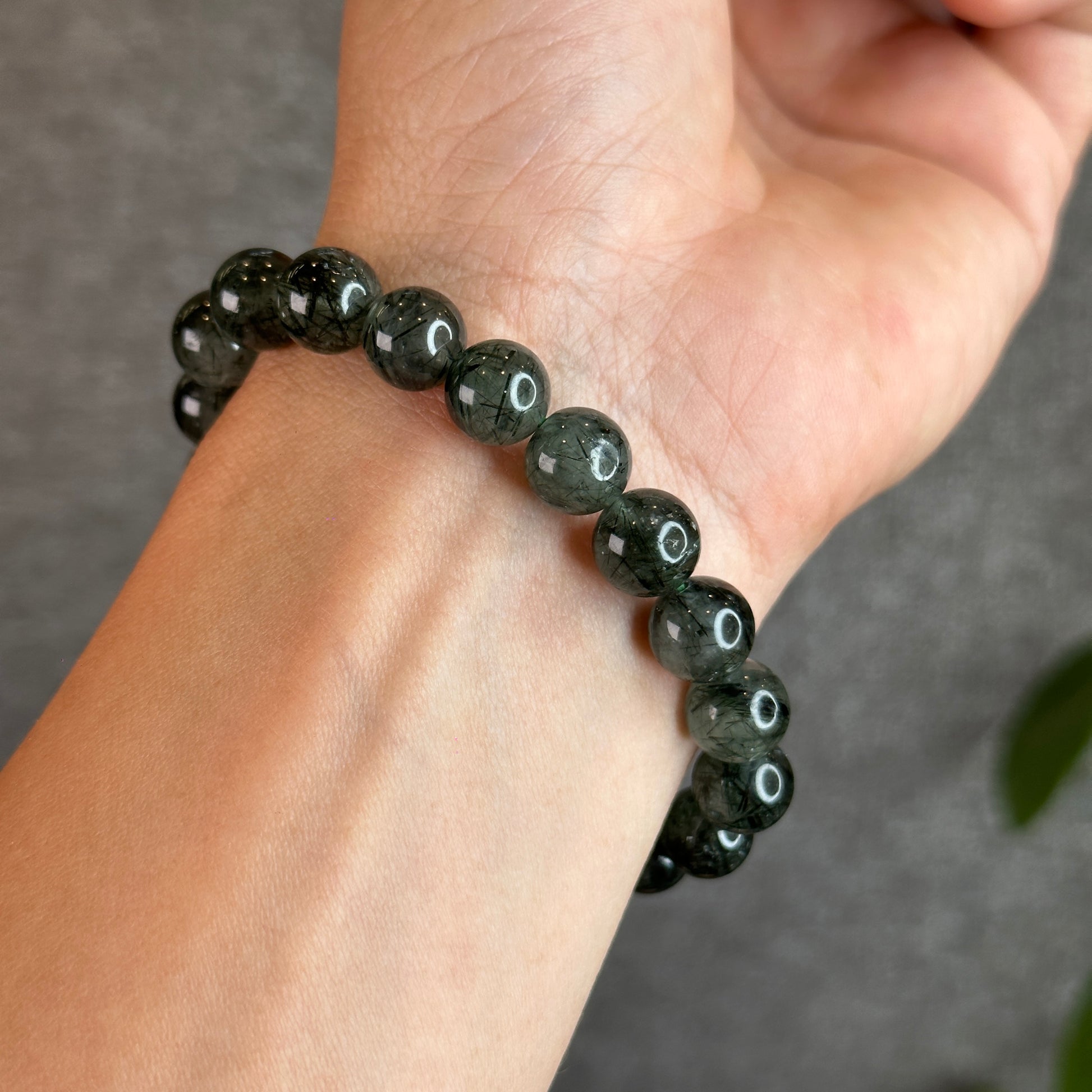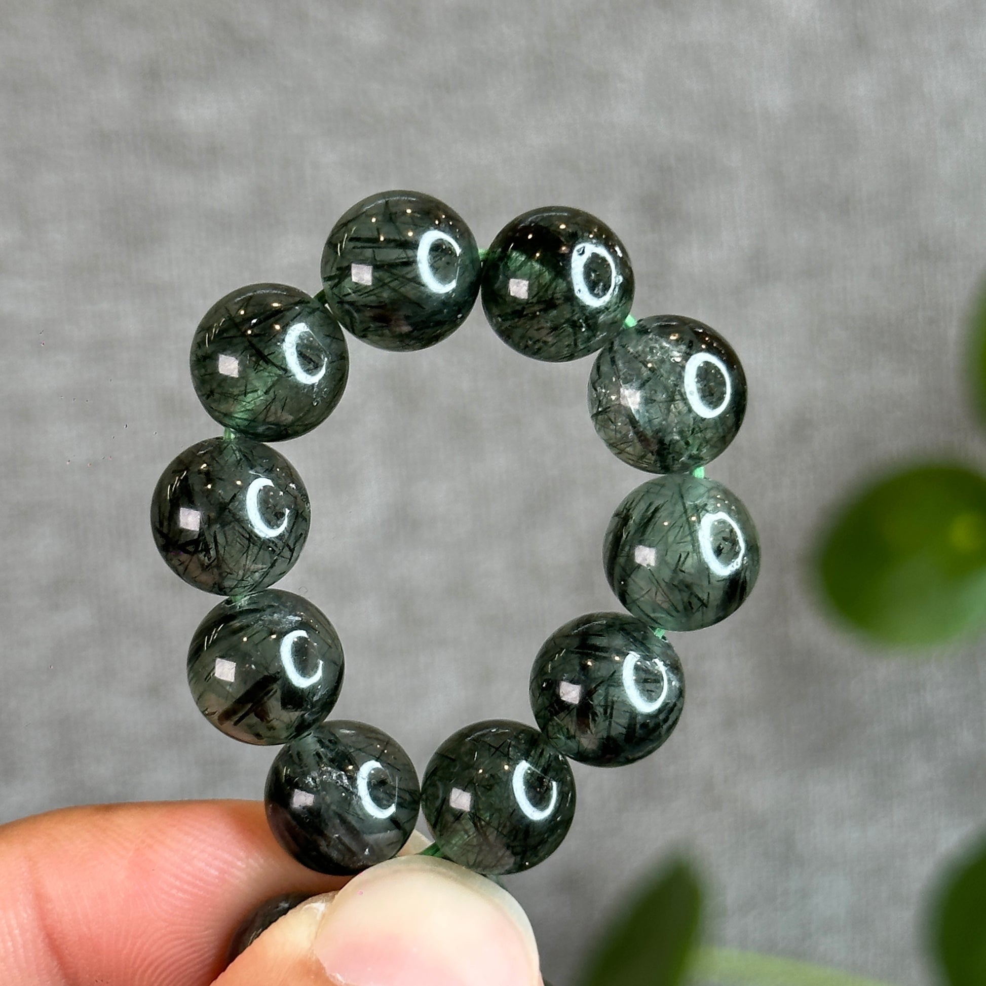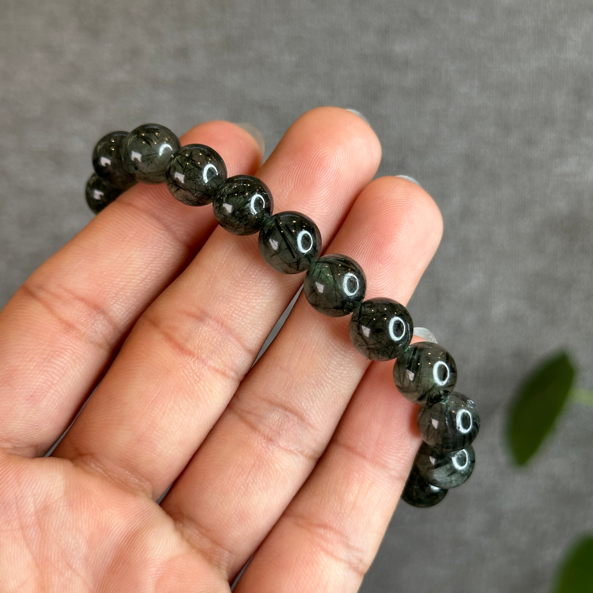 Natural Green Rutilated Quartz Bracelet Size 9.5 mm