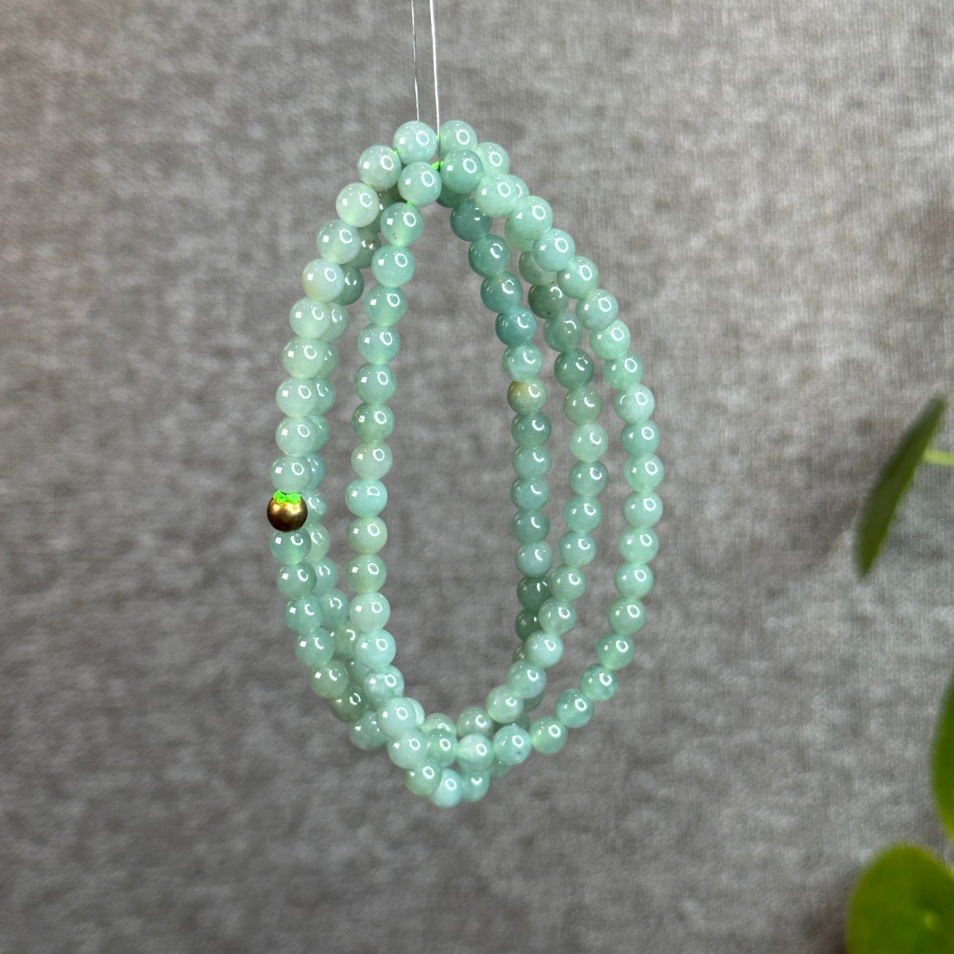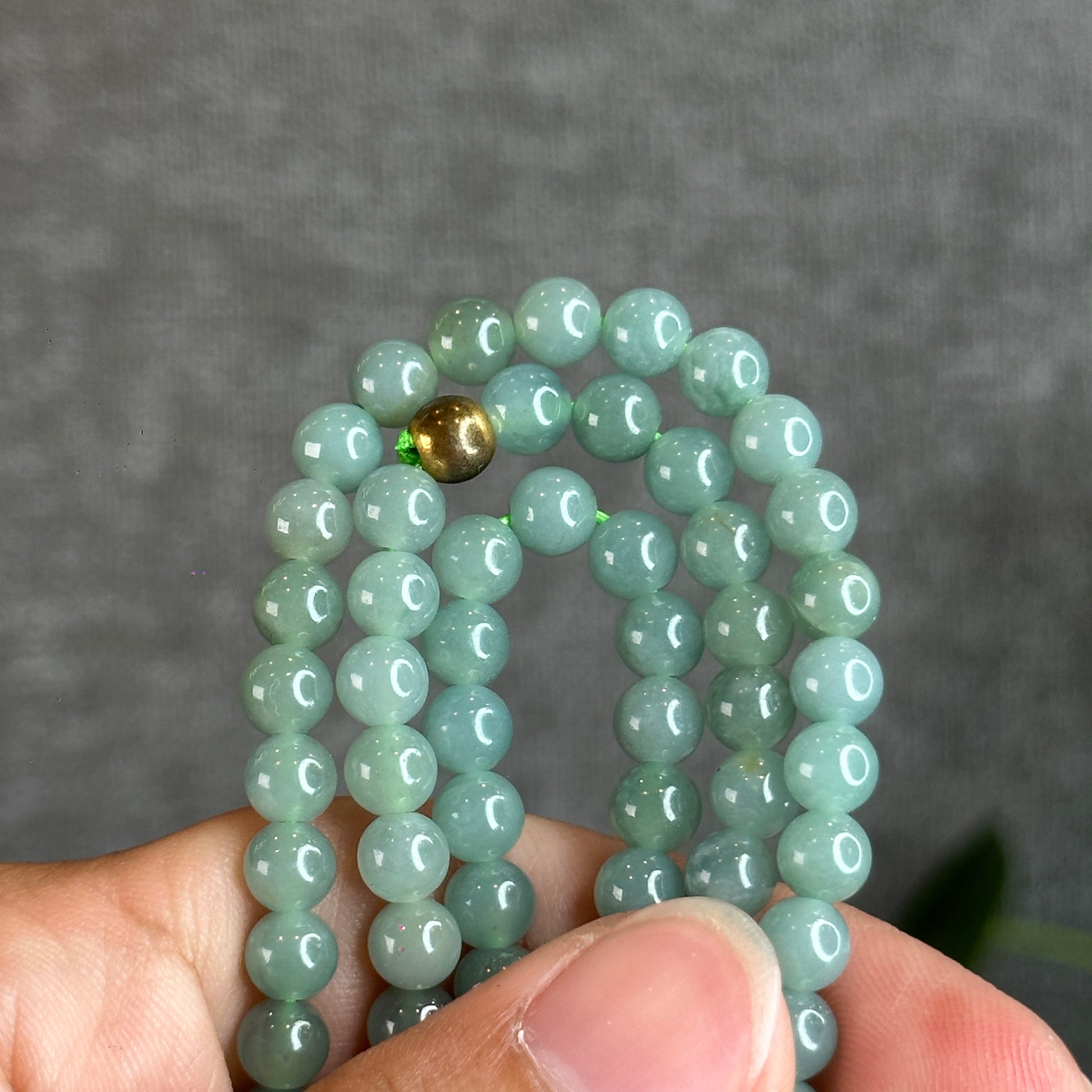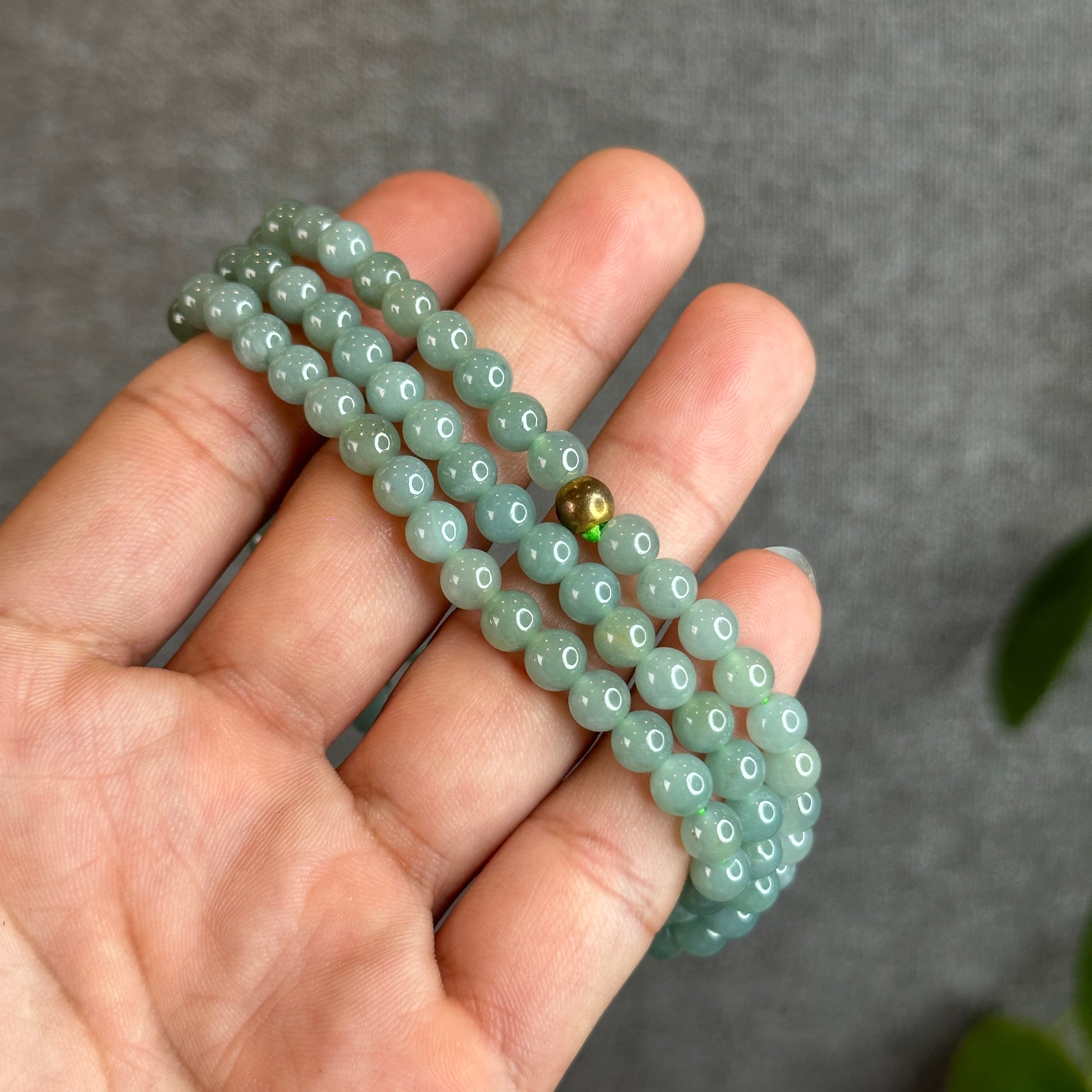 Light Water Green Natural Jadeite Jade Triple Wrap Bracelet Size 5.5mm