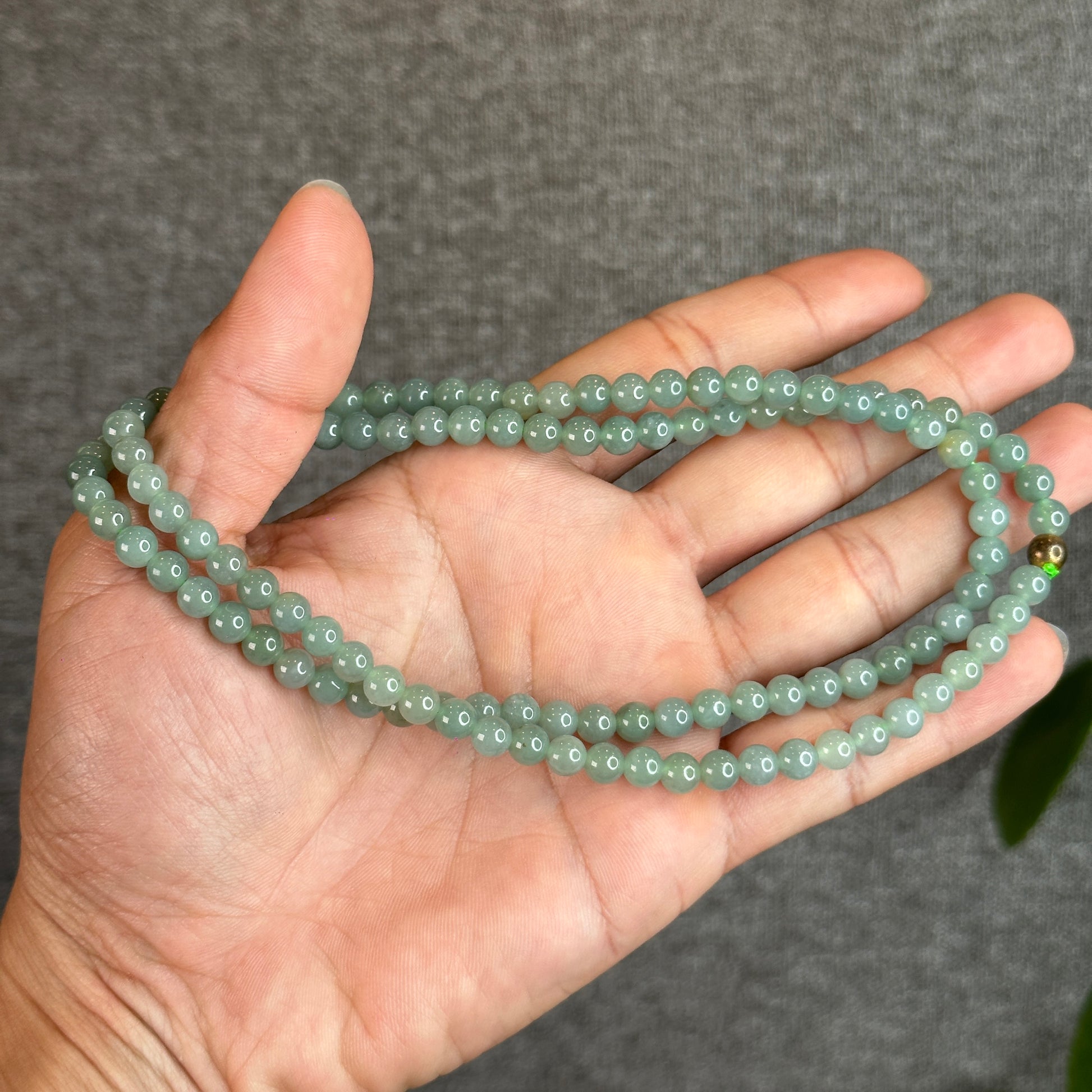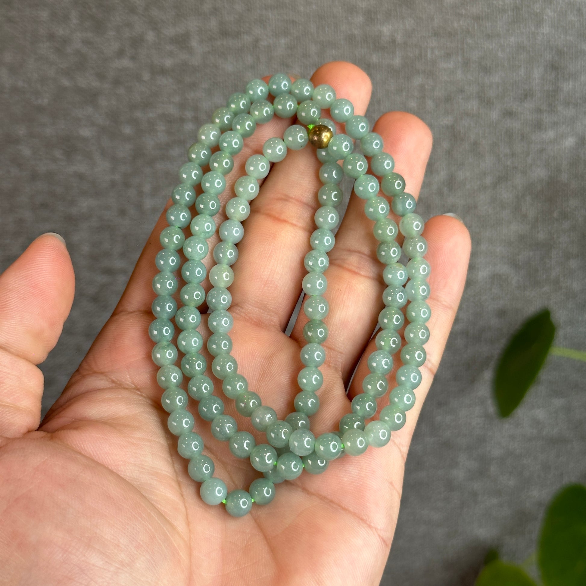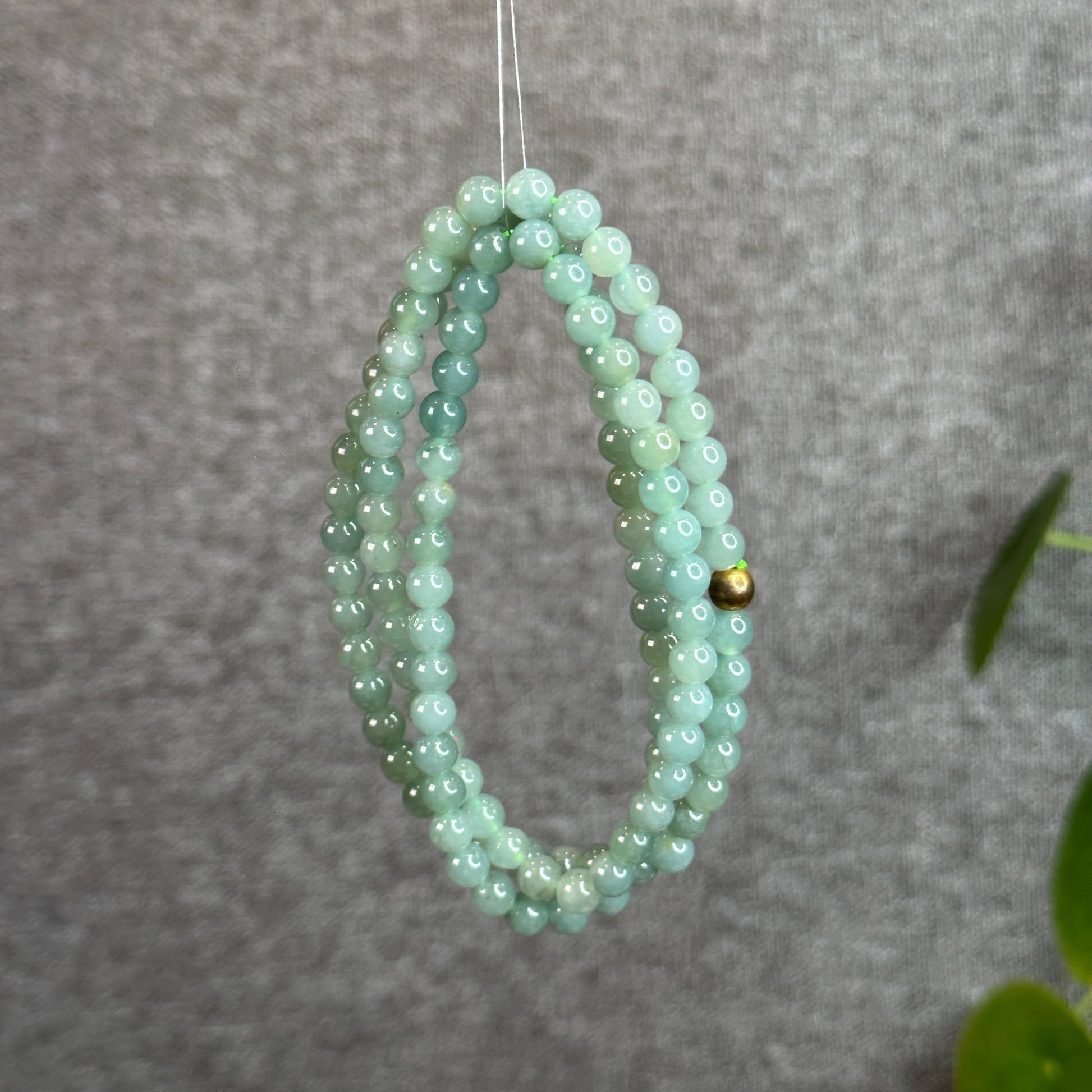 Light Water Green Natural Jadeite Jade Triple Wrap Bracelet Size 5.5mm