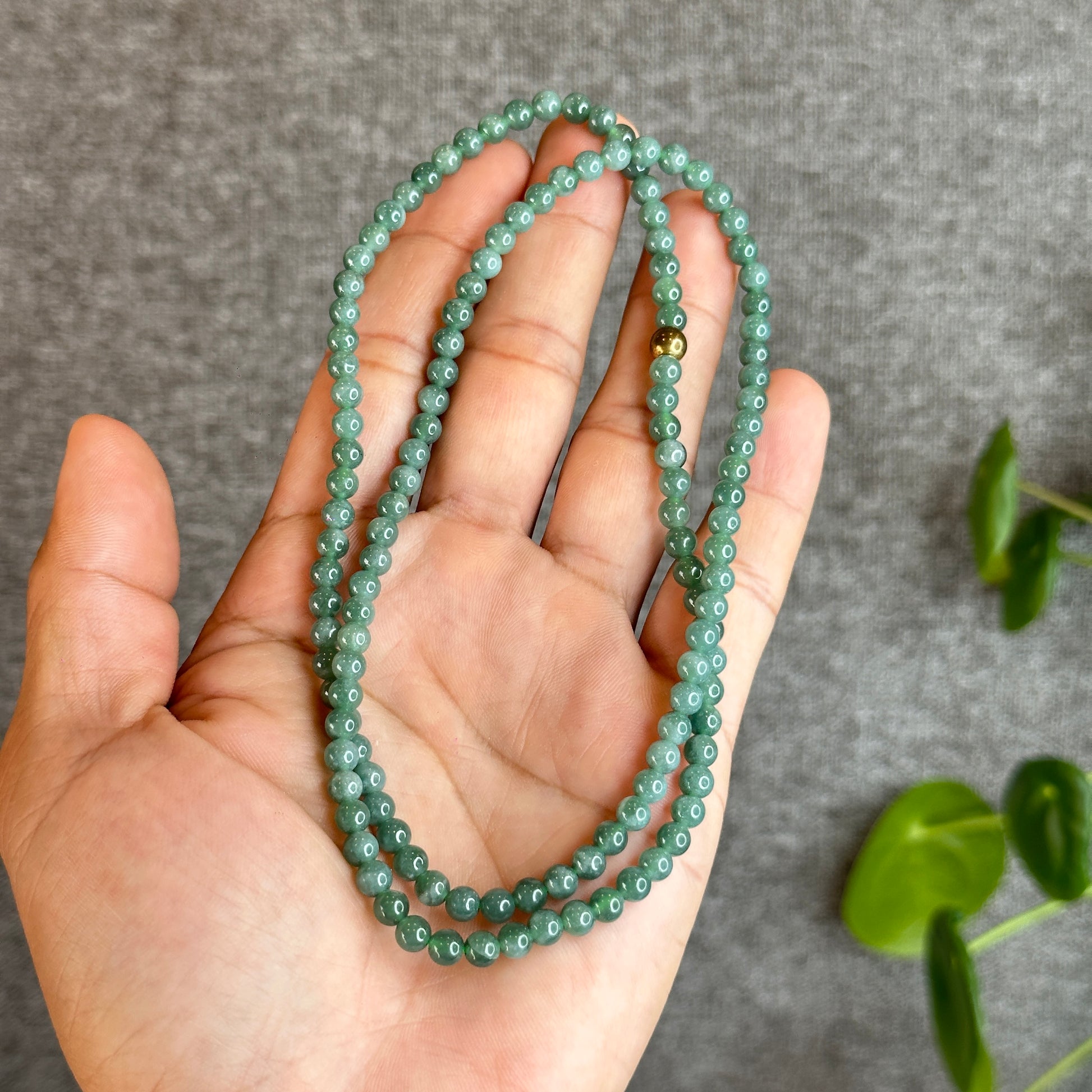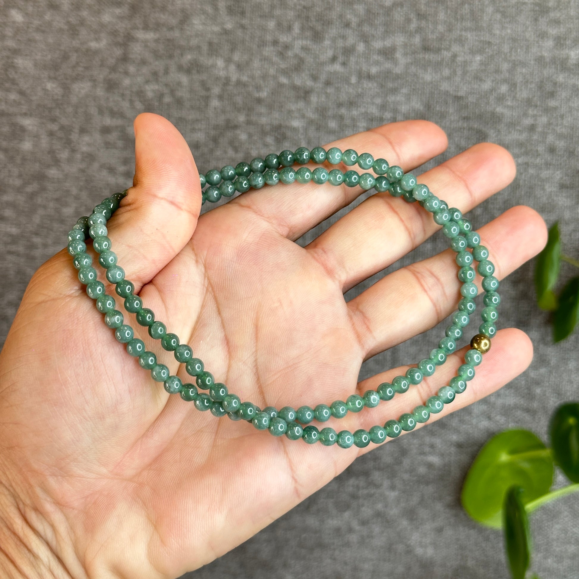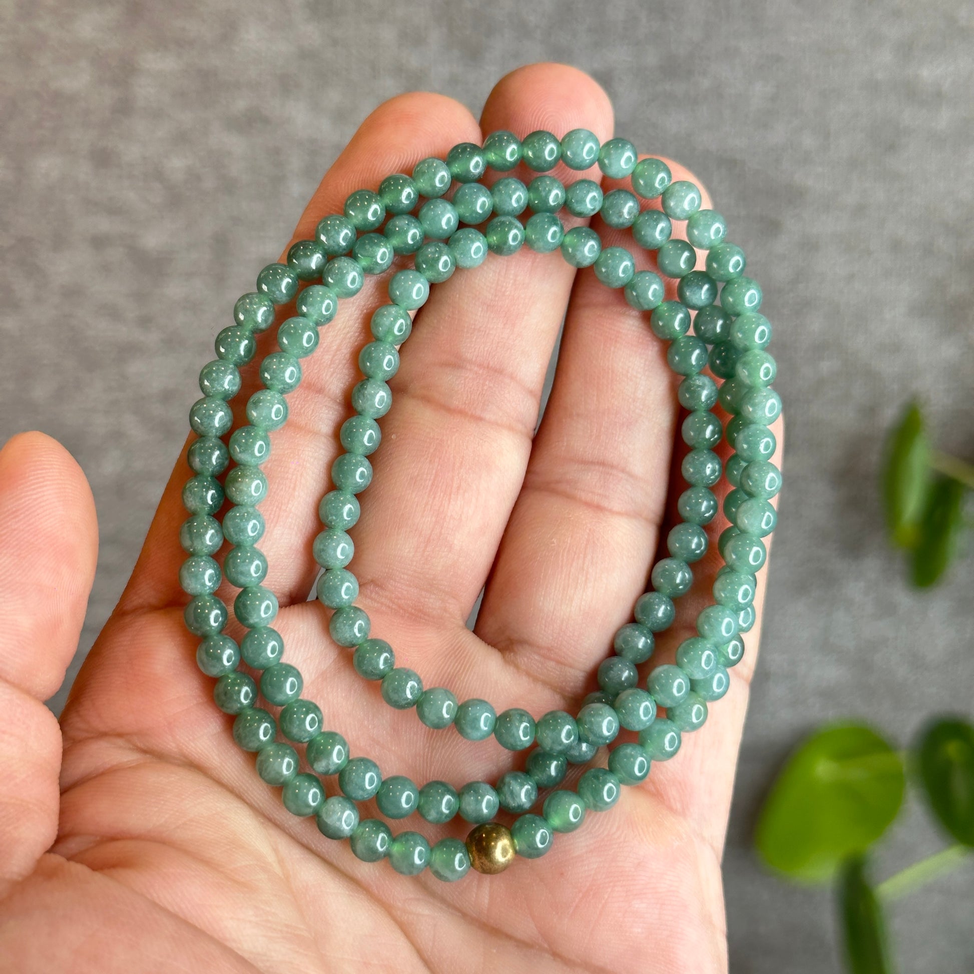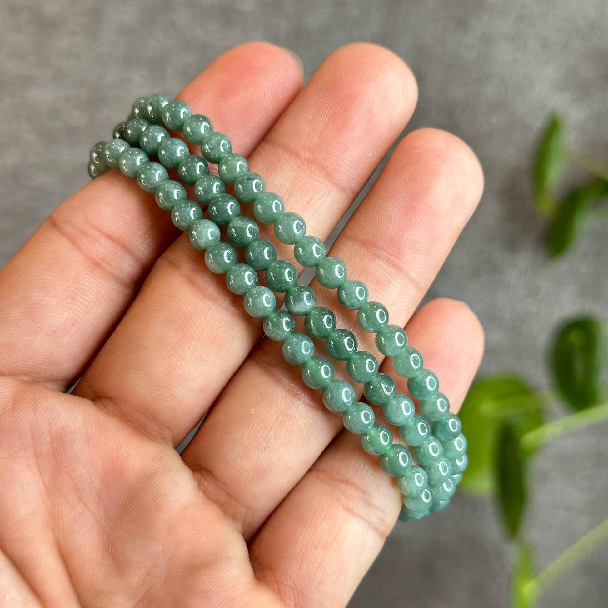 Light Water Green Natural Jadeite Jade Triple Wrap Bracelet Size 4.5mm