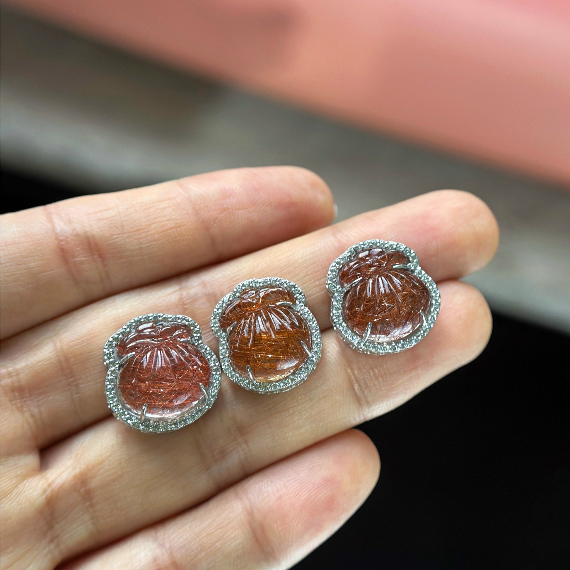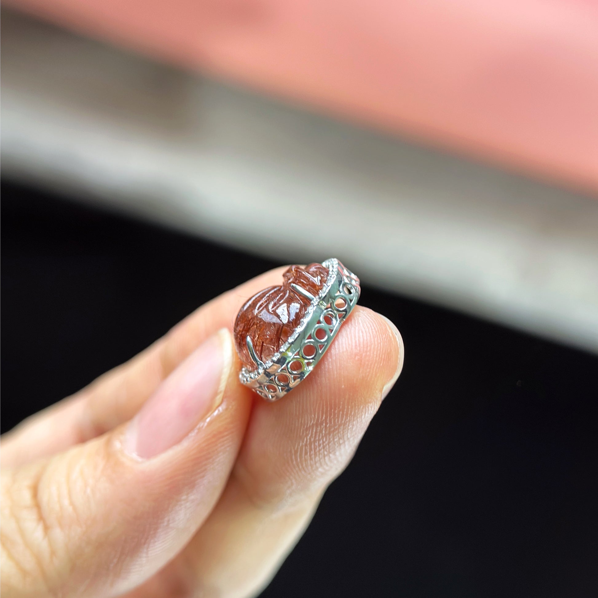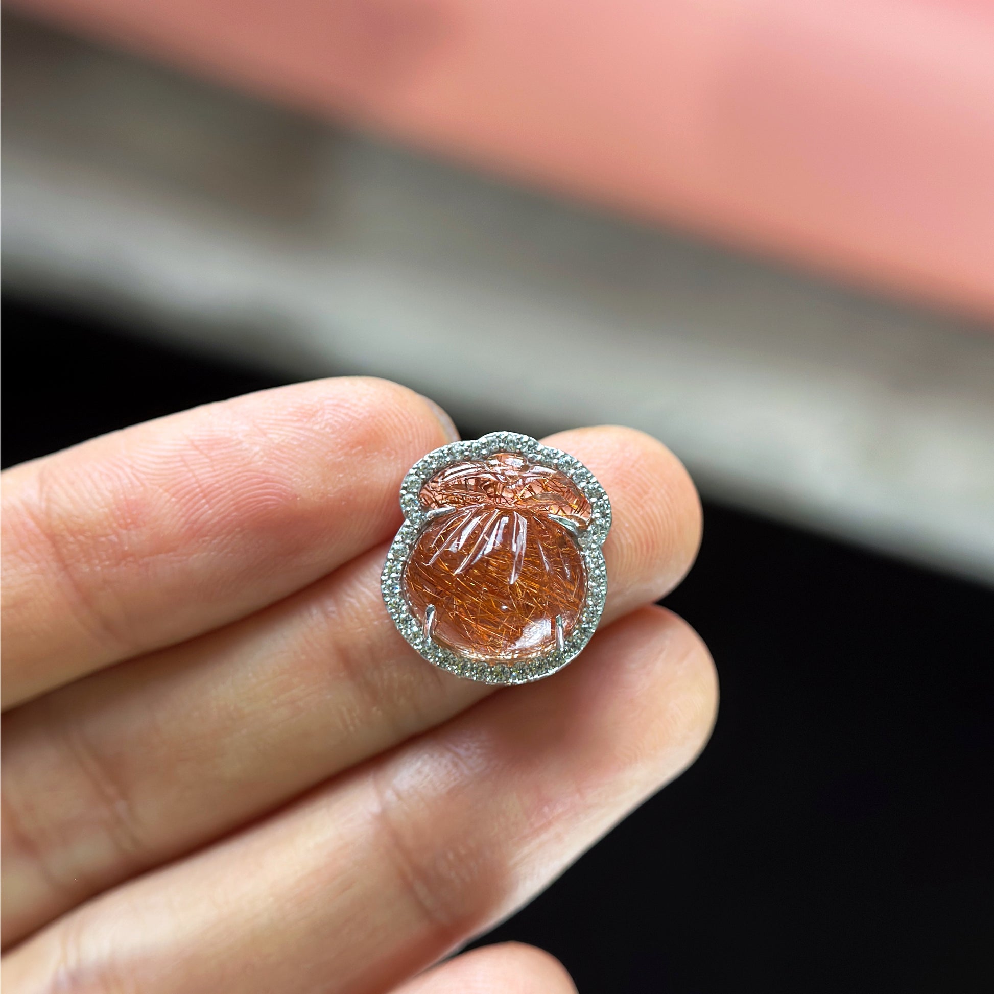 - Money Bag Natural Red Rutilated Quartz Charm in Silver Setting with White Stones