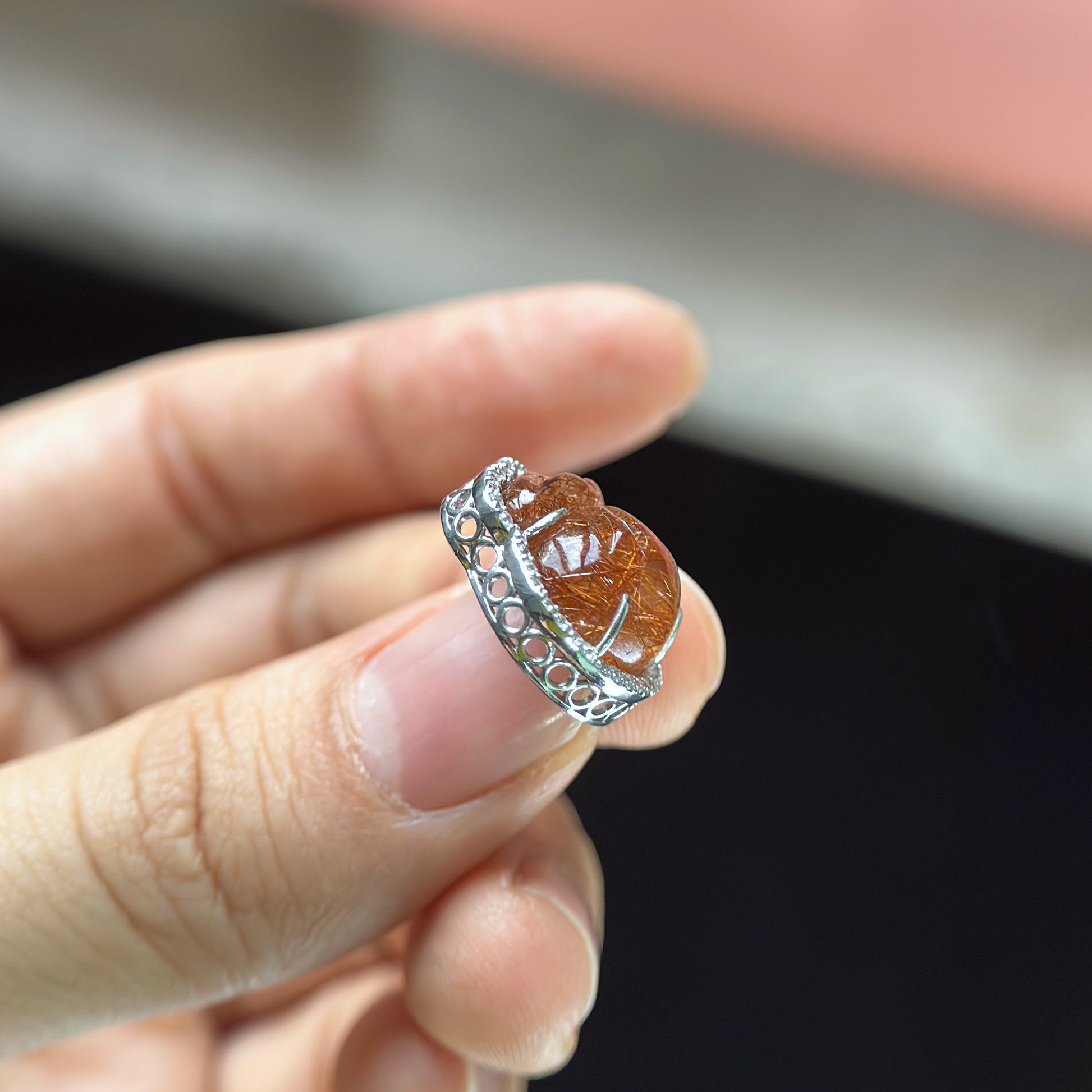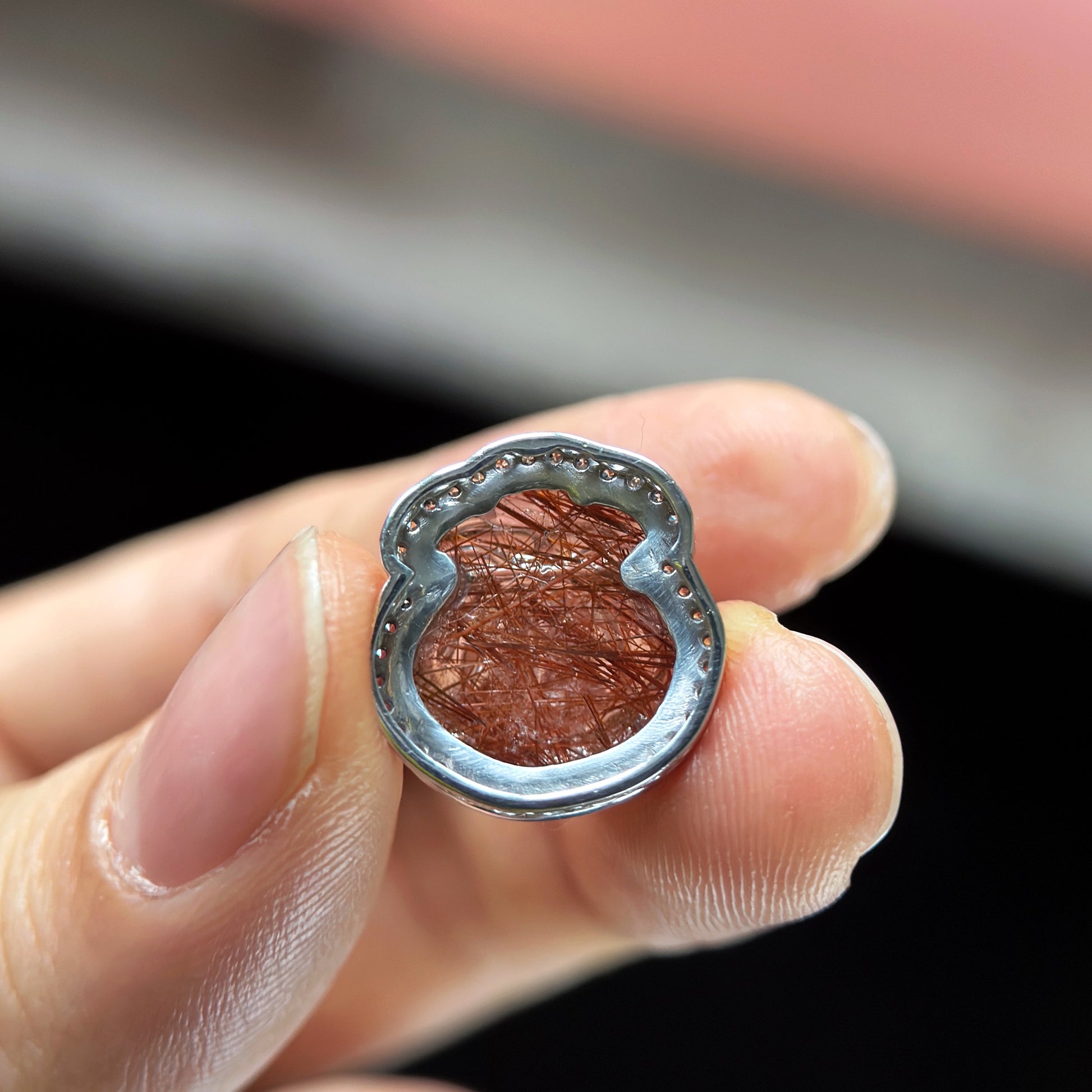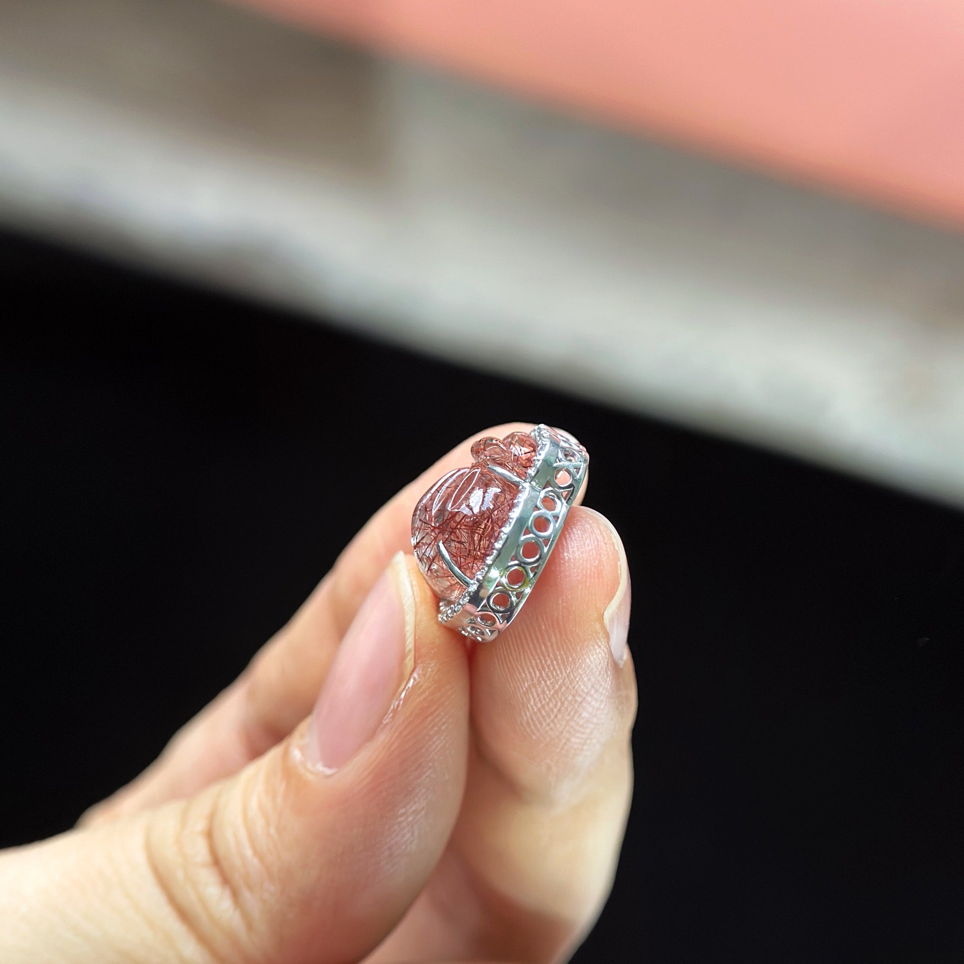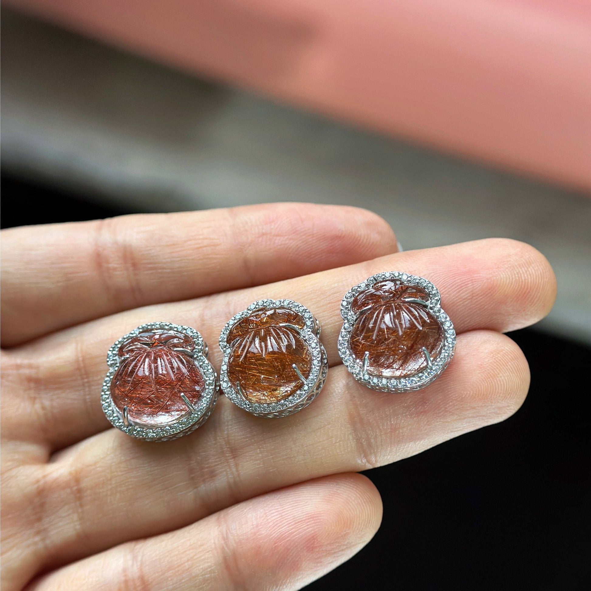 - Money Bag Natural Red Rutilated Quartz Charm in Silver Setting with White Stones