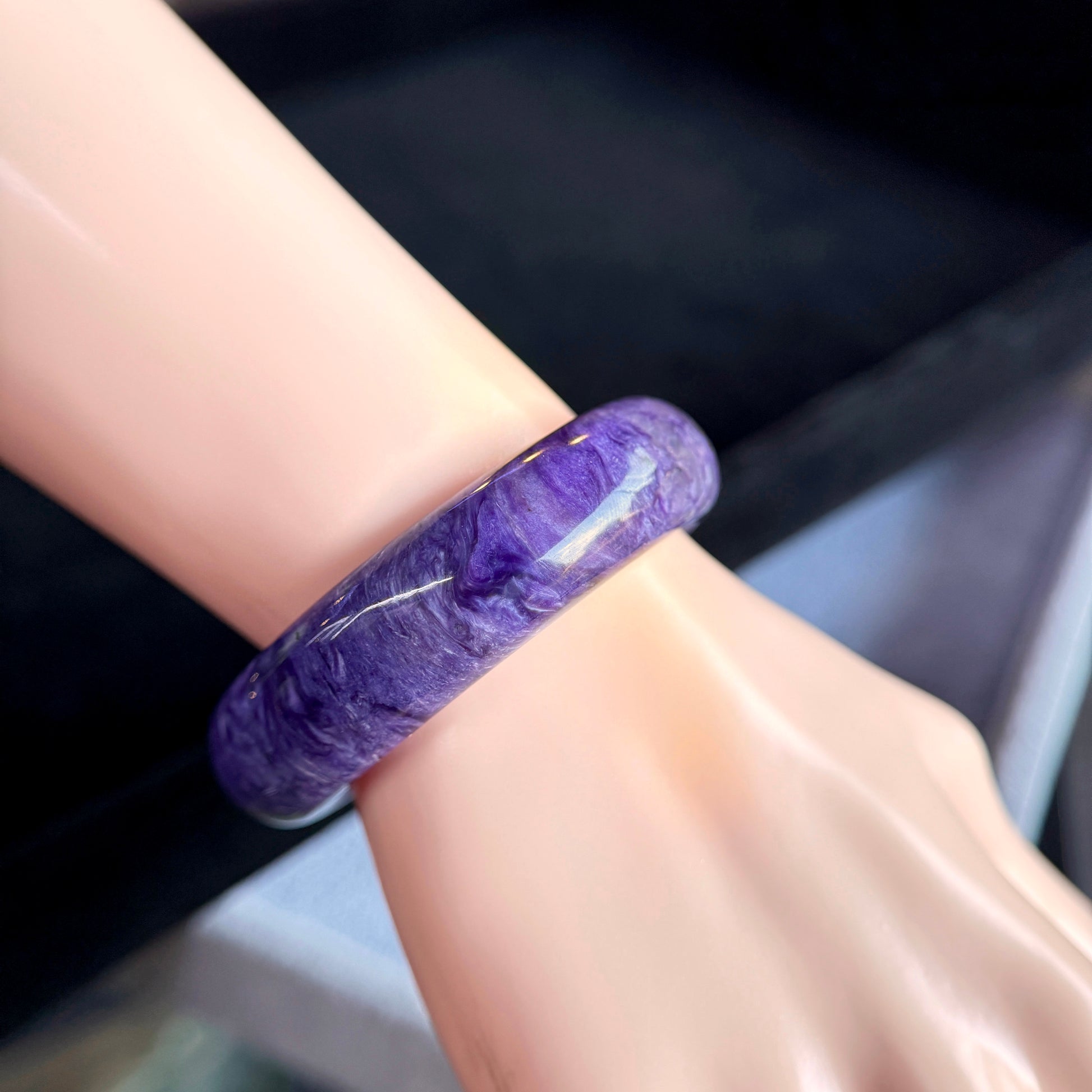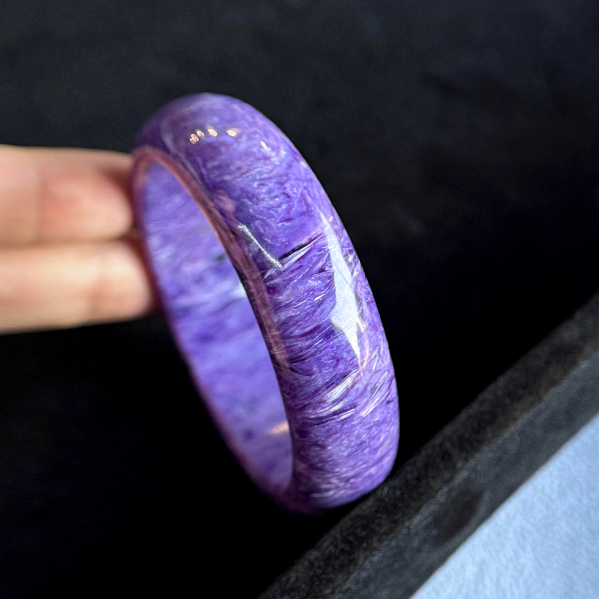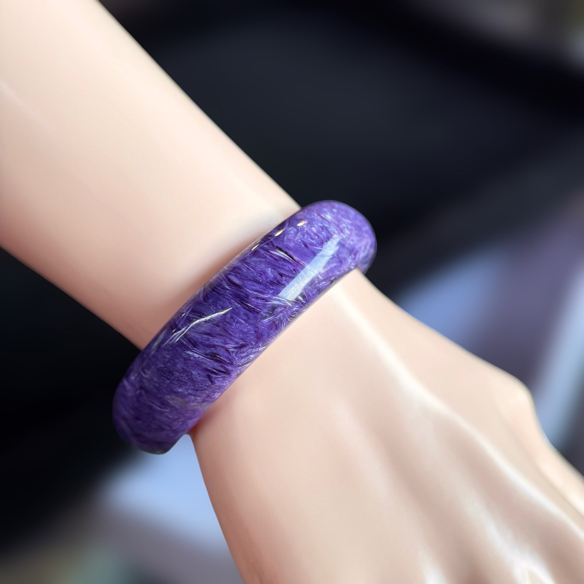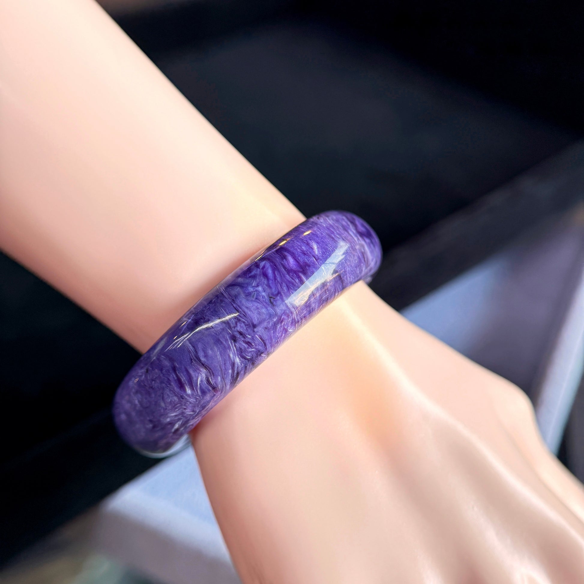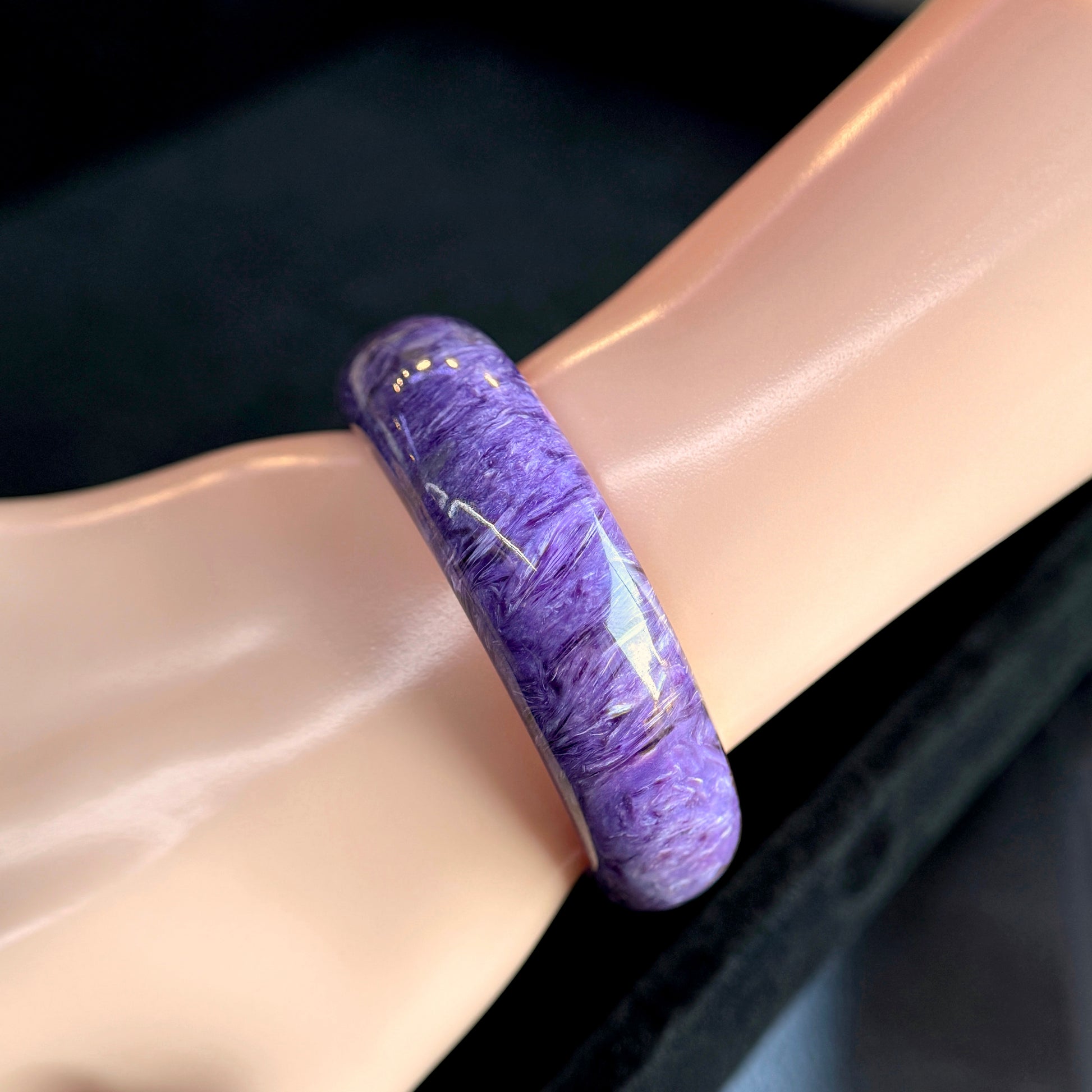 Natural Charoite Bangle Leaf Style Size 53 mm