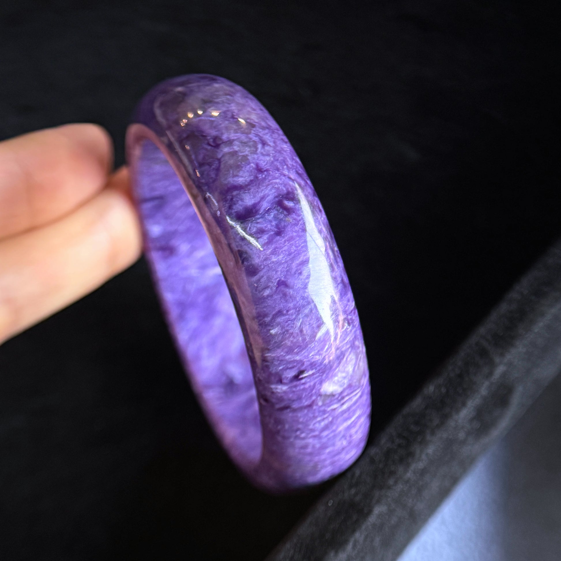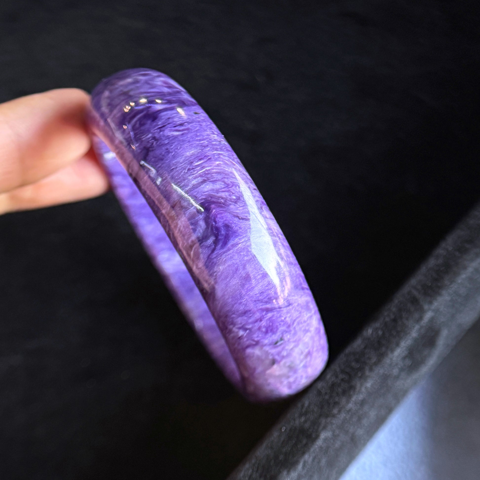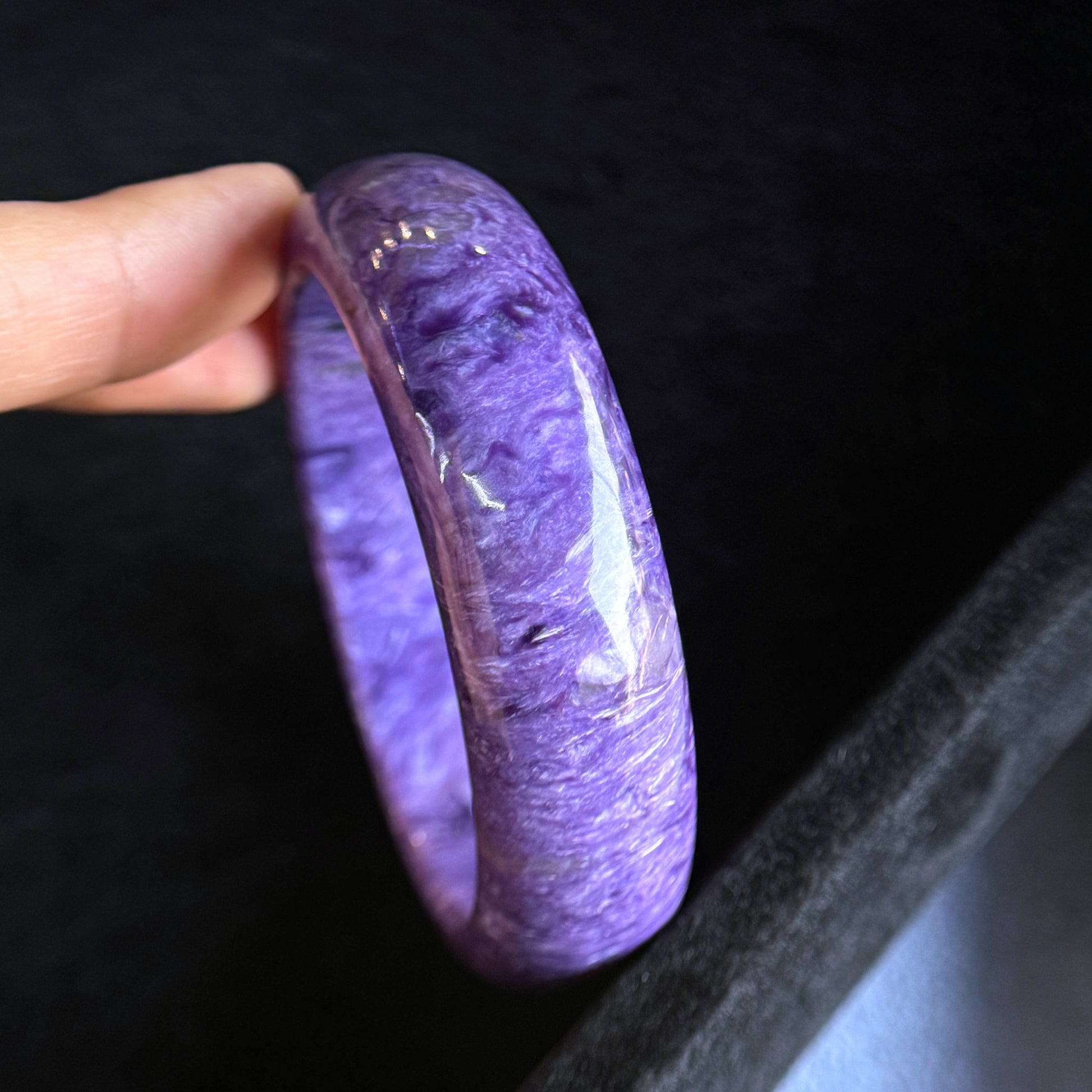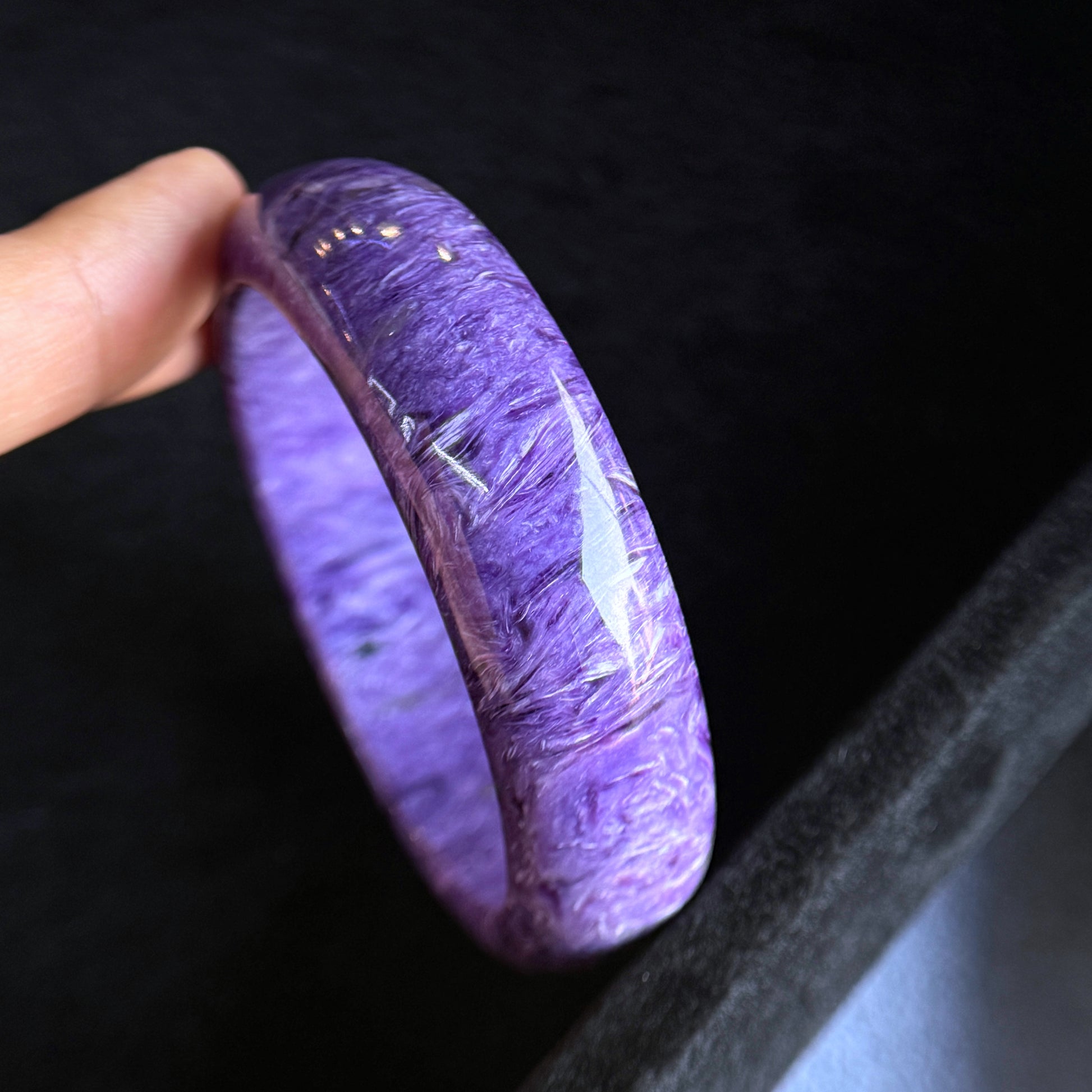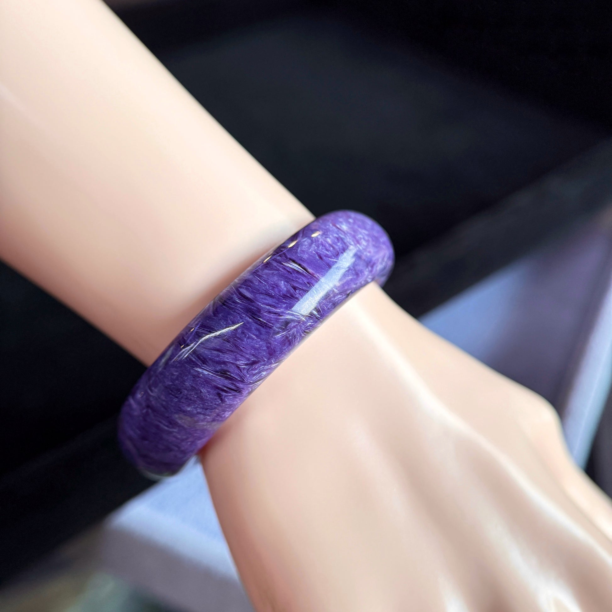 Natural Charoite Bangle Leaf Style Size 53 mm