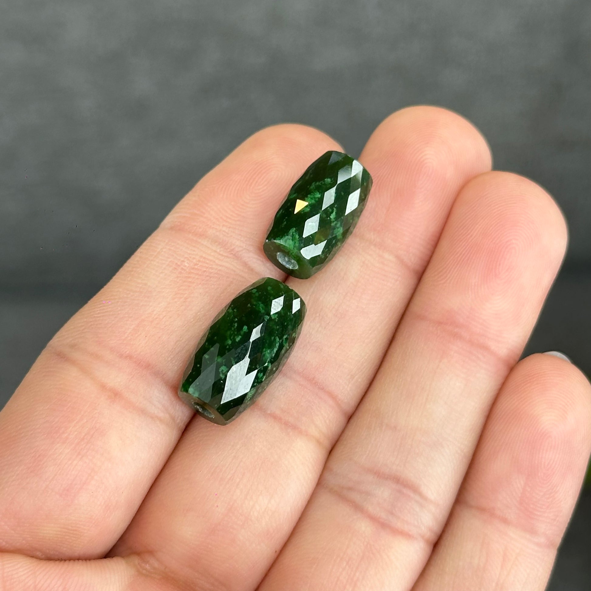 Natural Nephrite Jade Faceted Lu Thong Charm size 9.5 mm