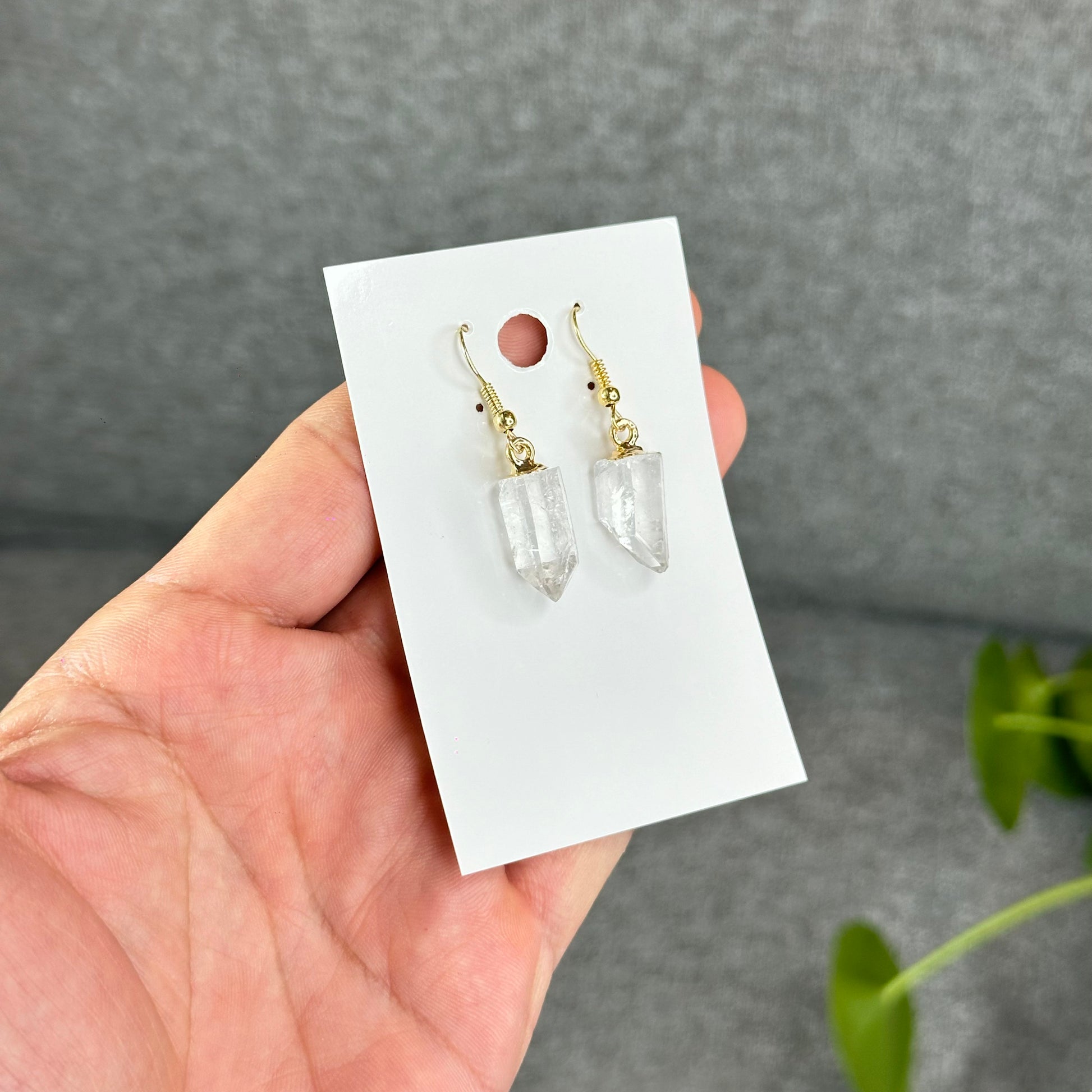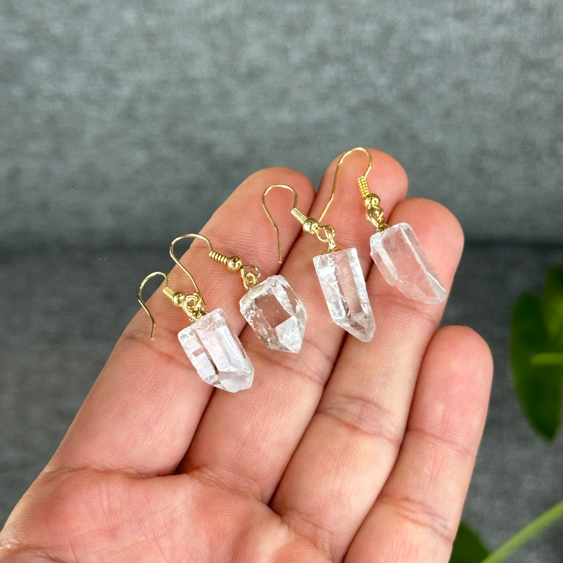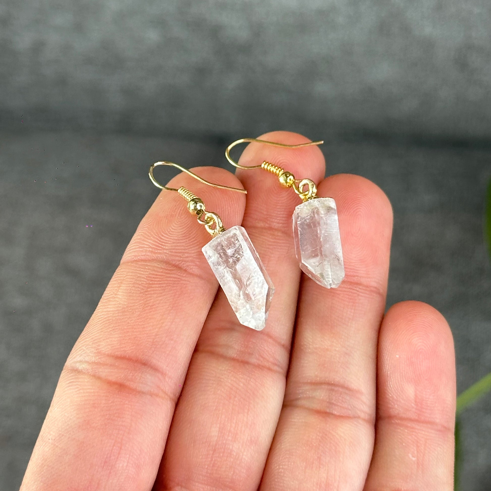 - Natural Clear Quartz Point Crystal Earrings Gold Platted