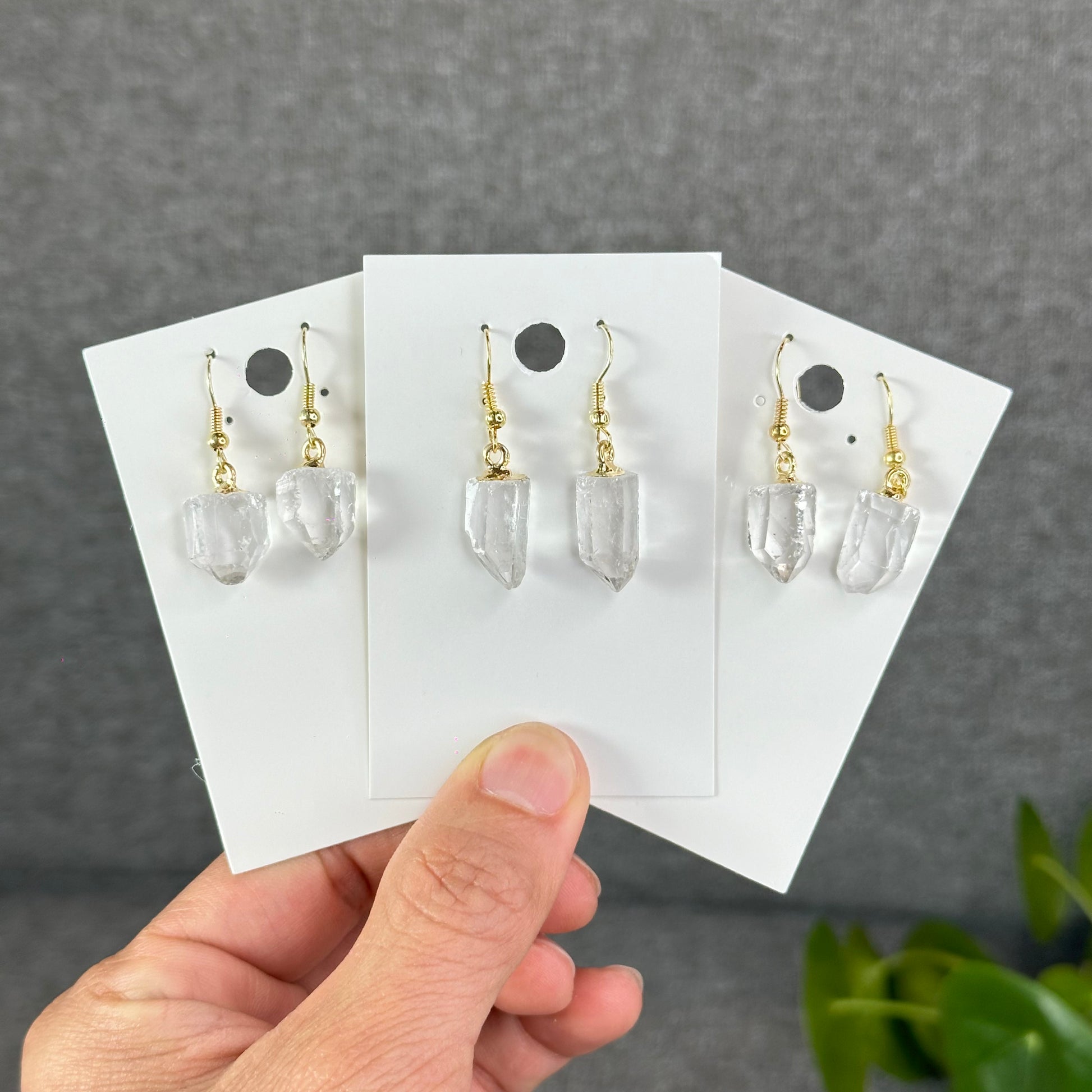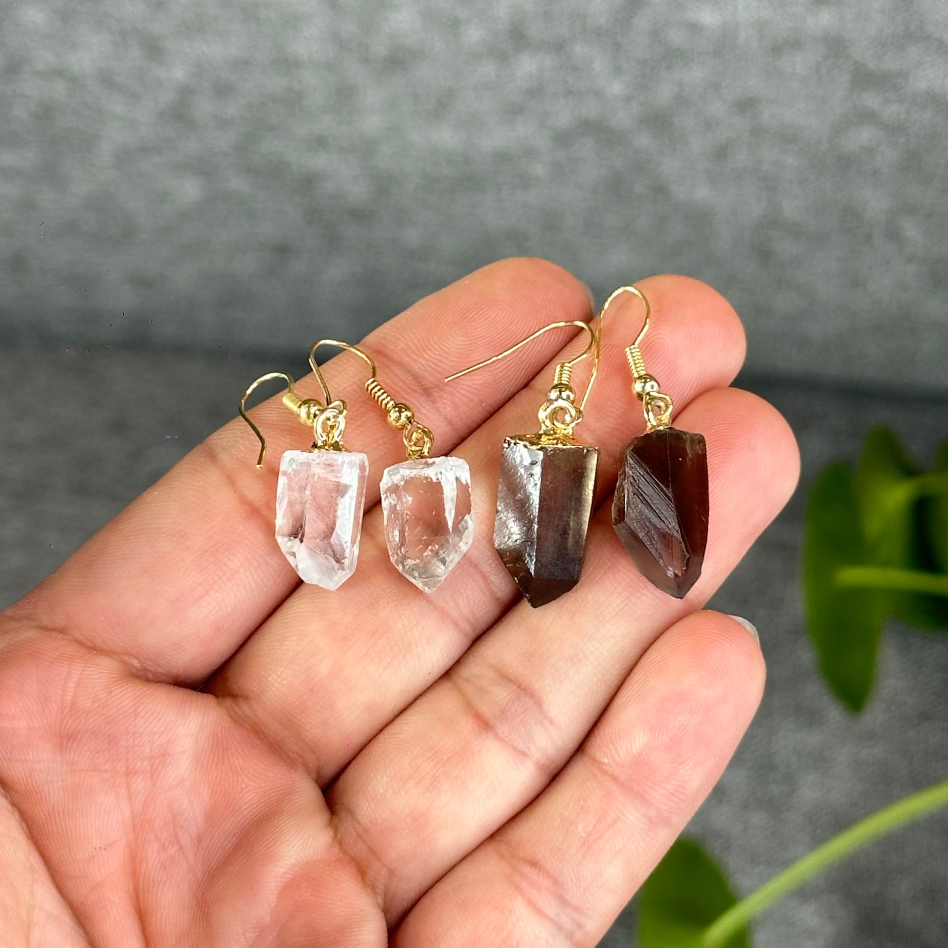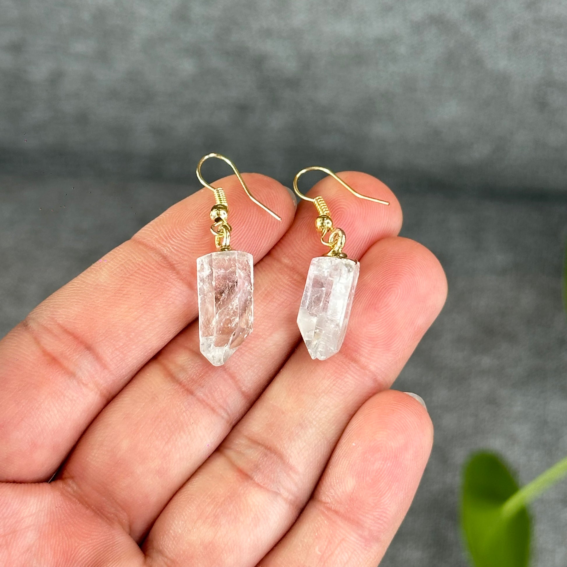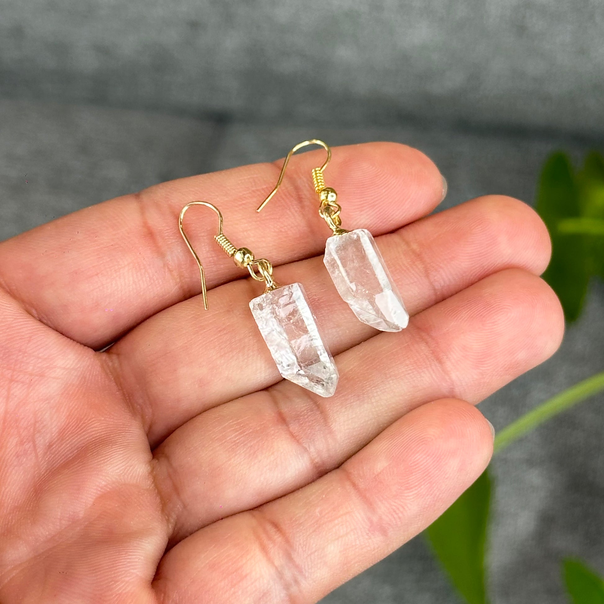 - Natural Clear Quartz Point Crystal Earrings Gold Platted