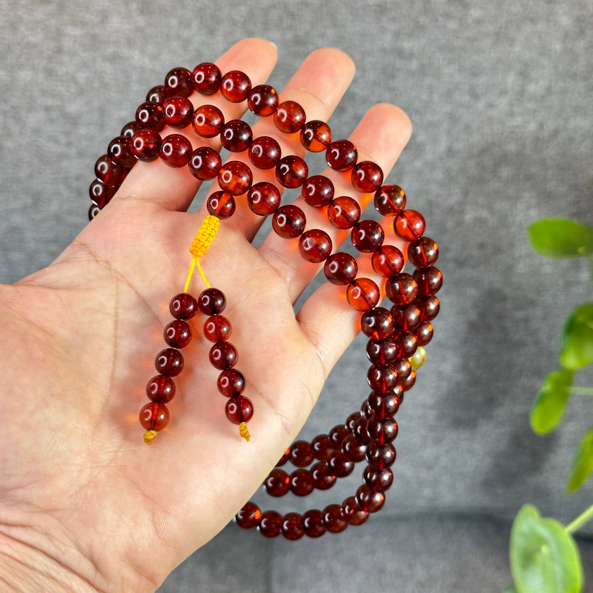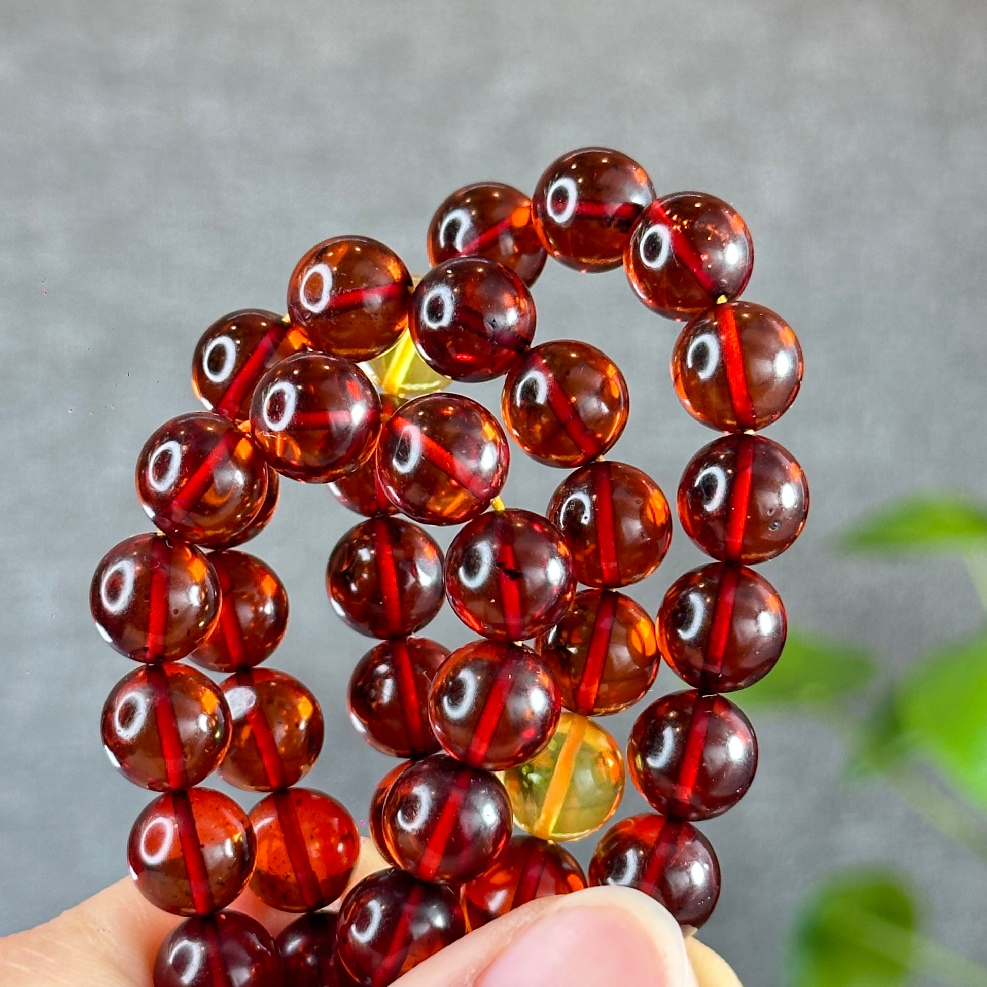 Natural Blood Amber Triple Wrap Bracelet Size 10 mm