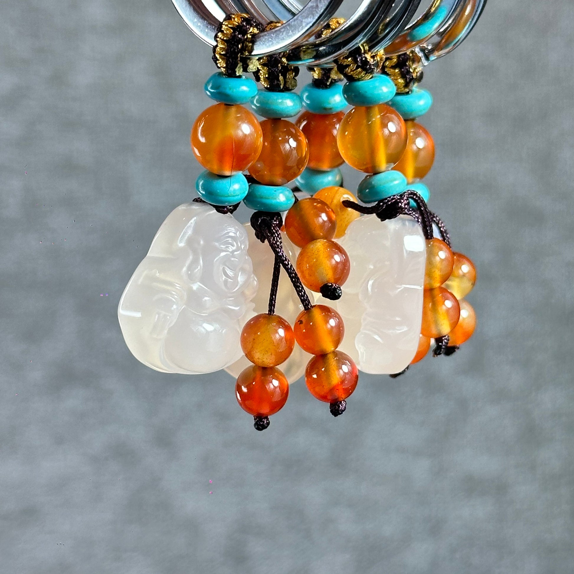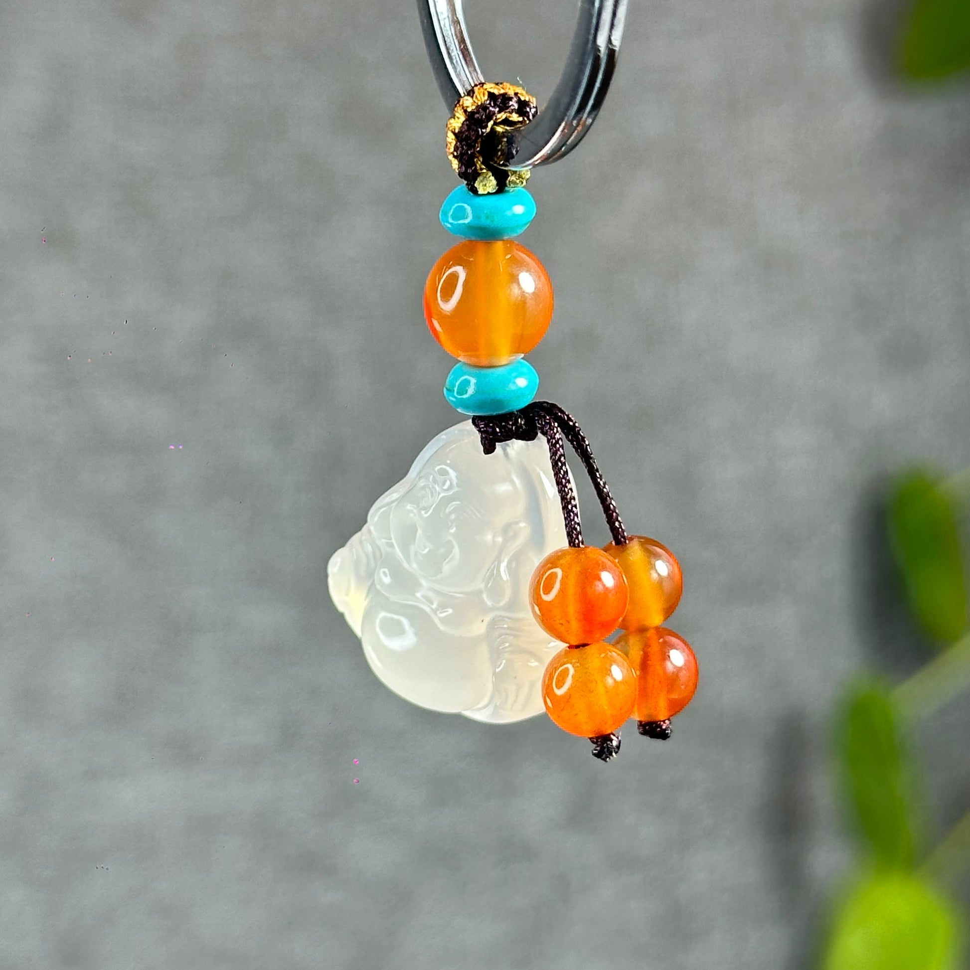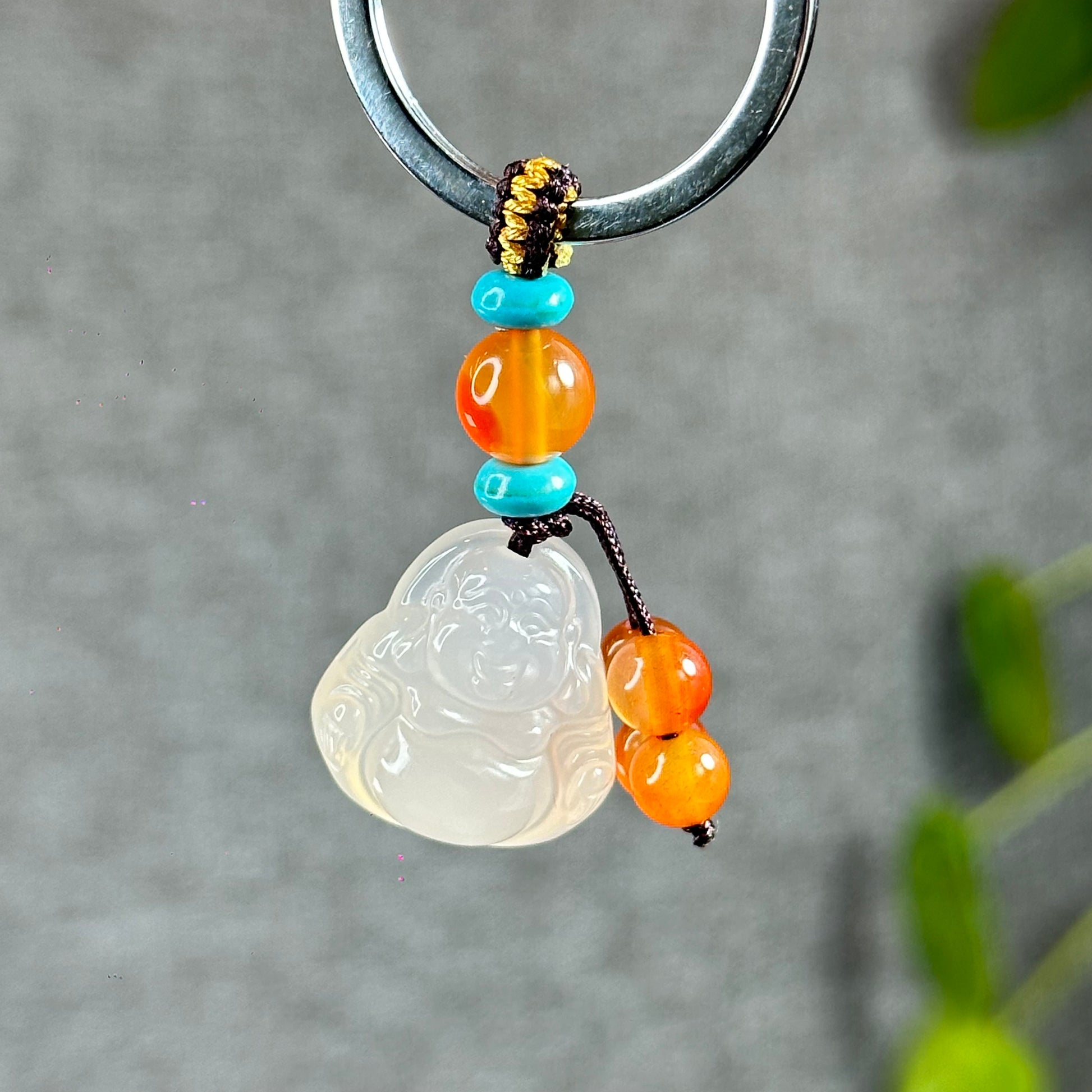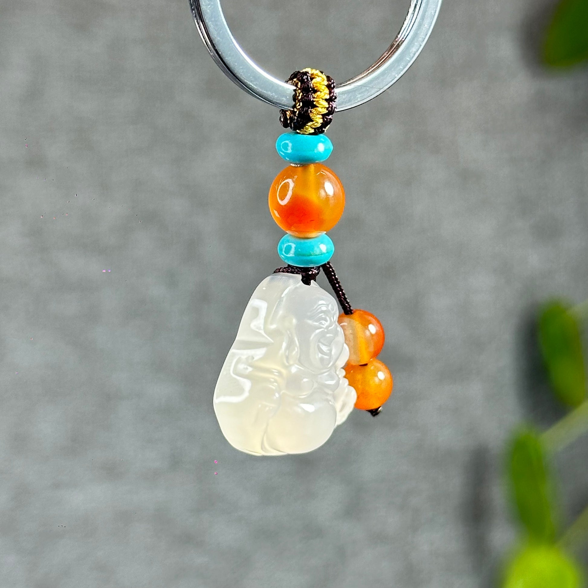 Mini Happy Buddha Natural White Agate Accessory with Metal Hoop