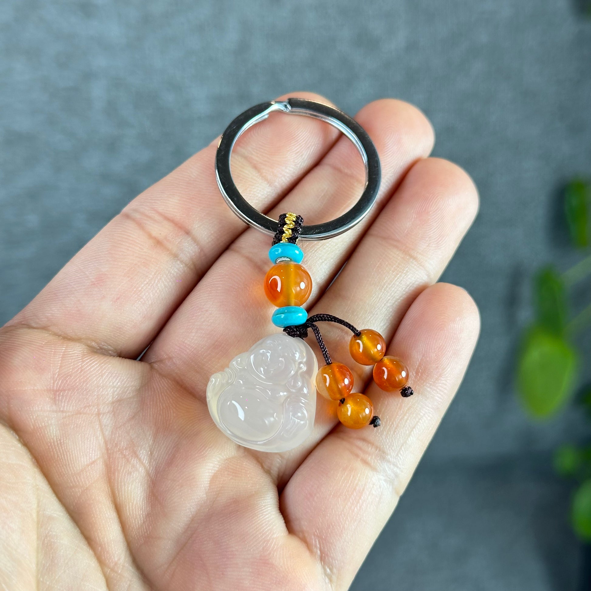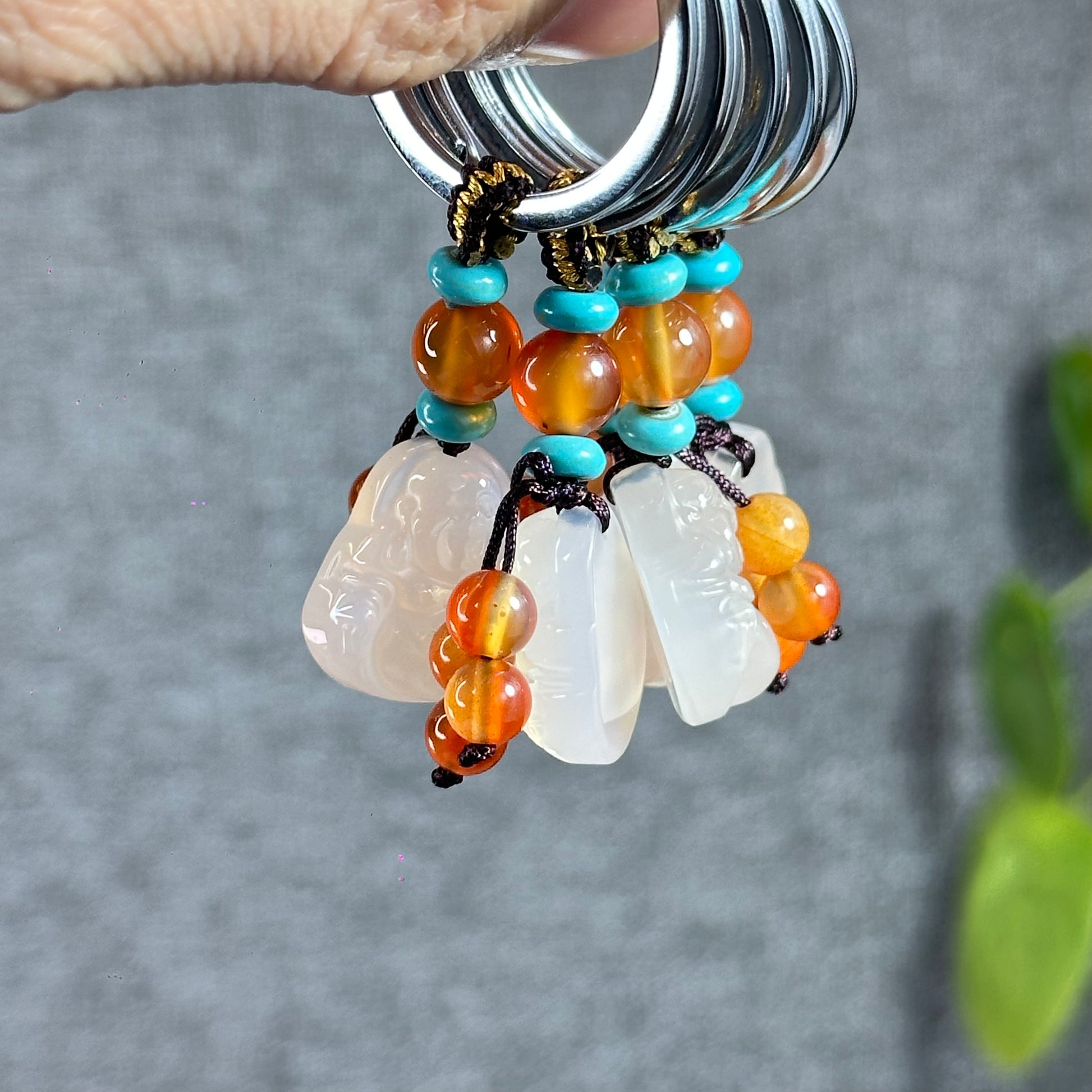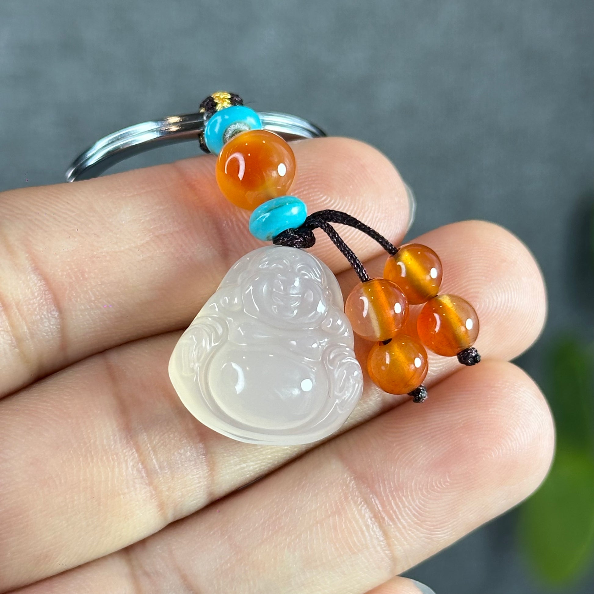 Mini Happy Buddha Natural White Agate Accessory with Metal Hoop