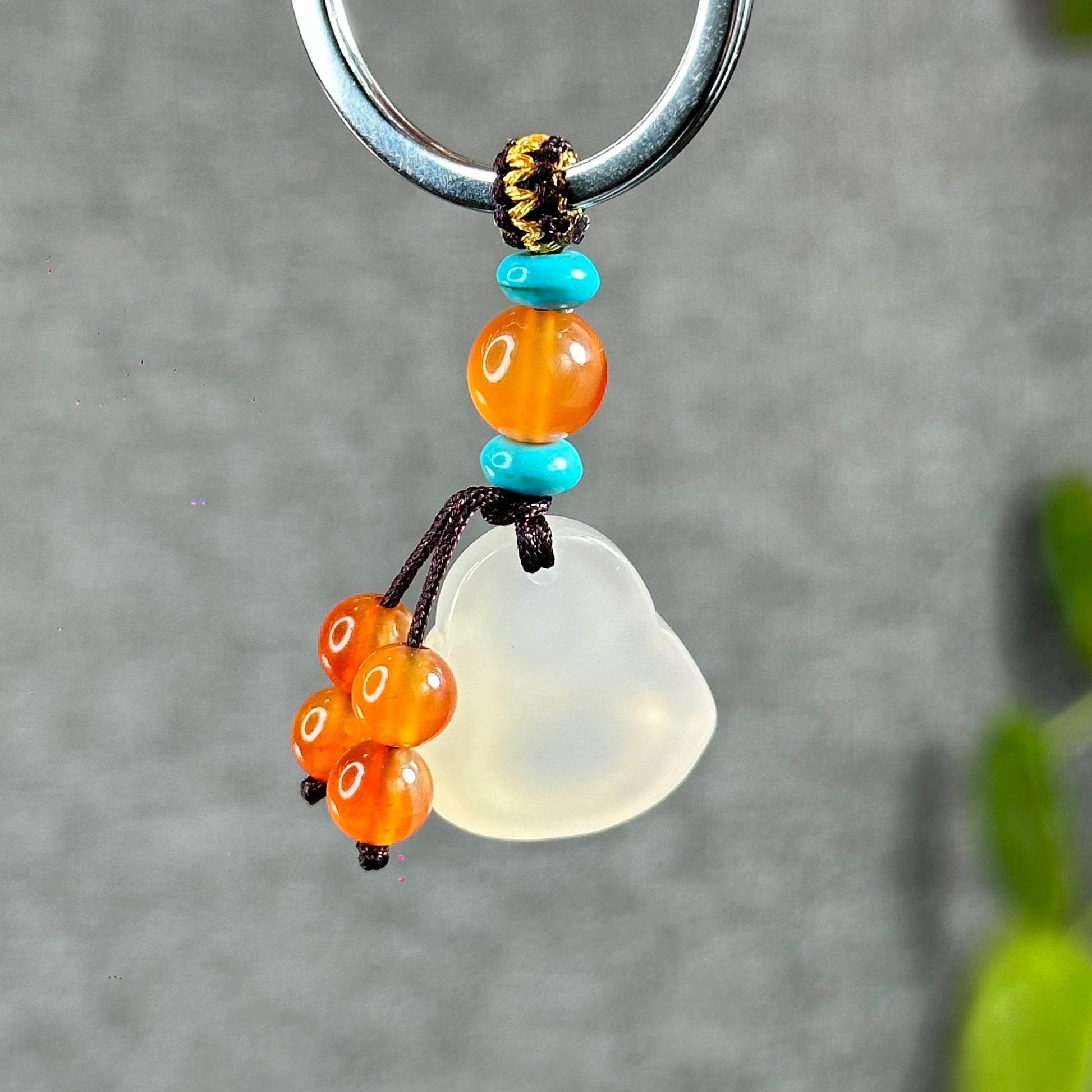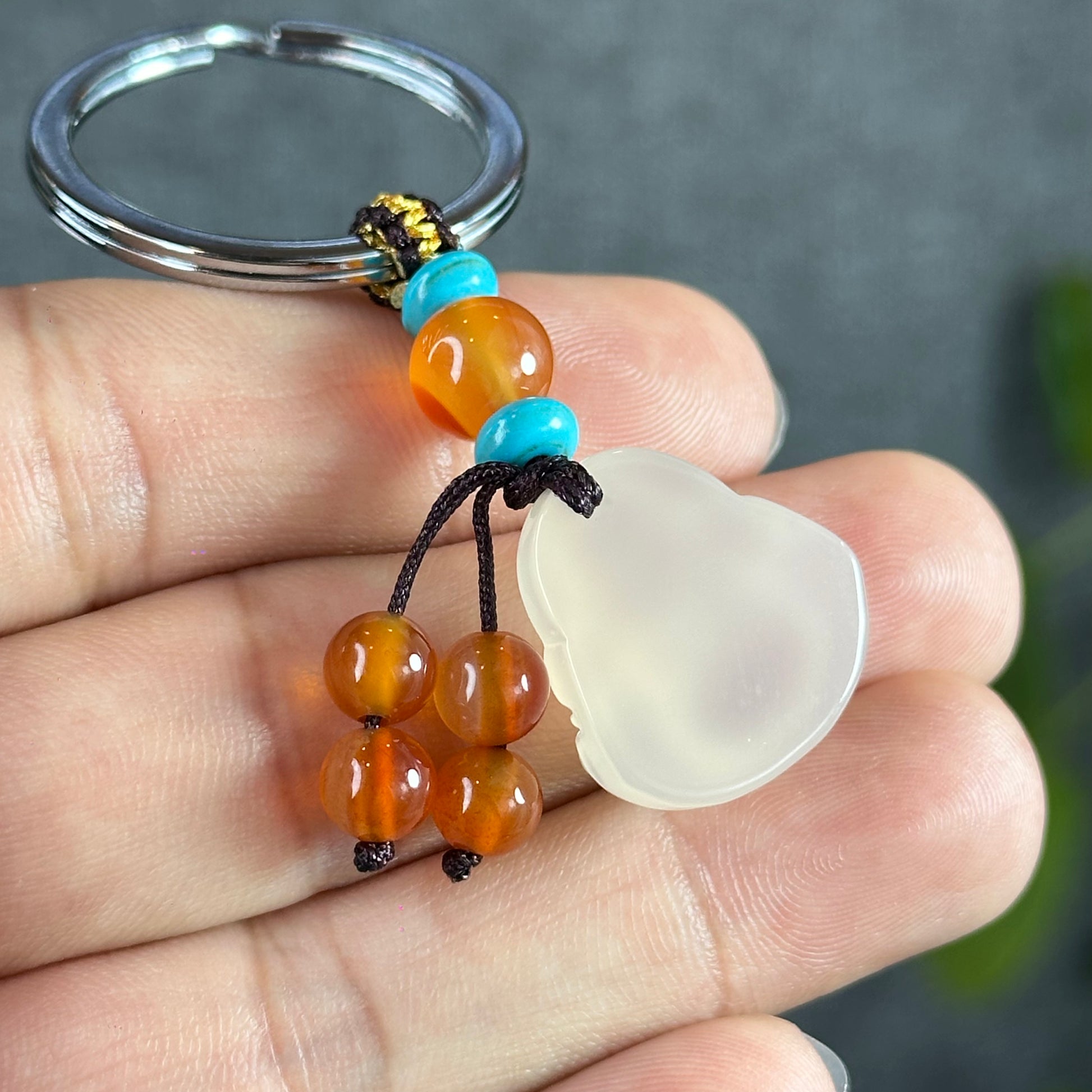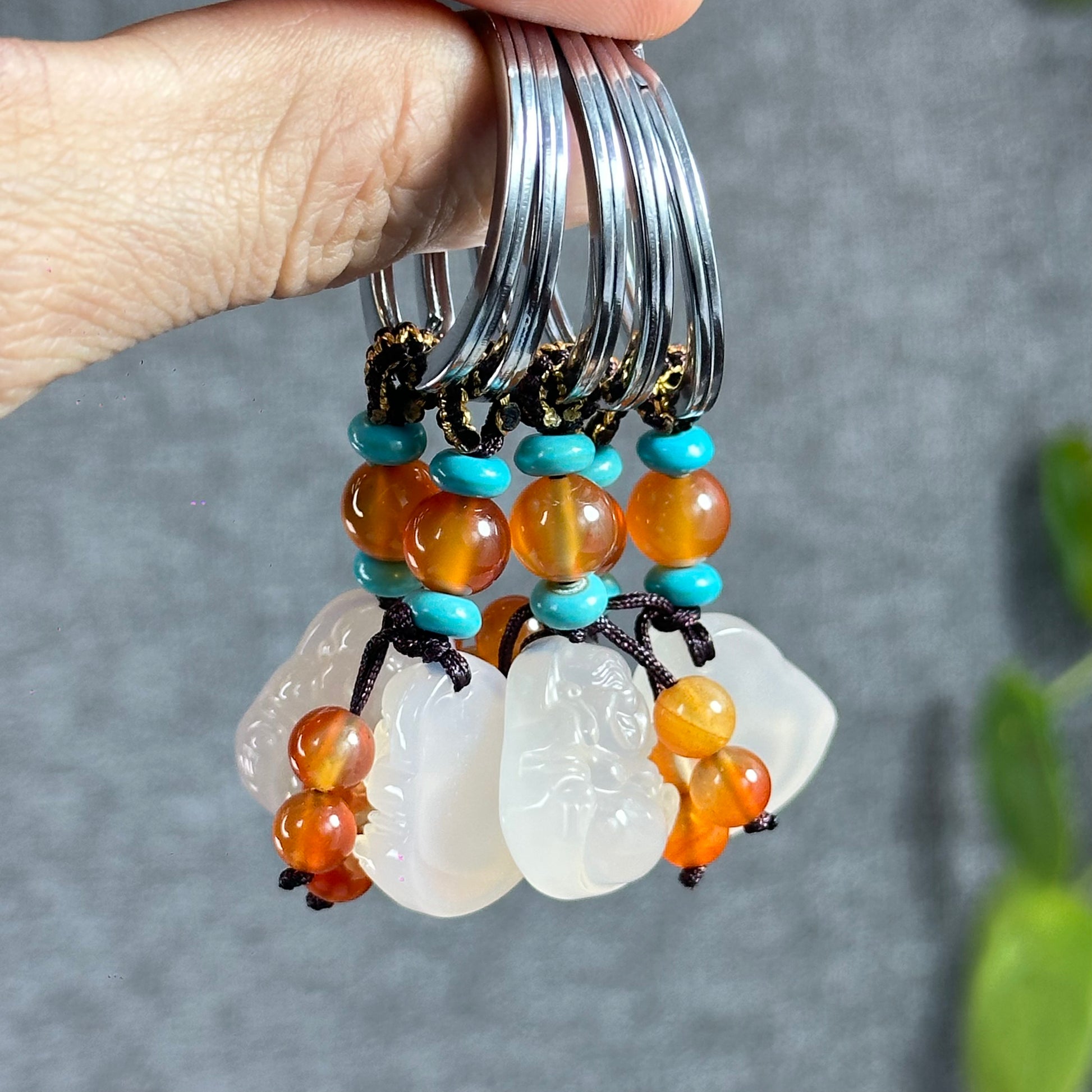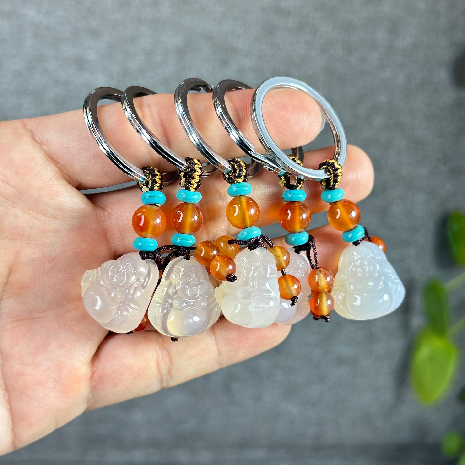 Mini Happy Buddha Natural White Agate Accessory with Metal Hoop