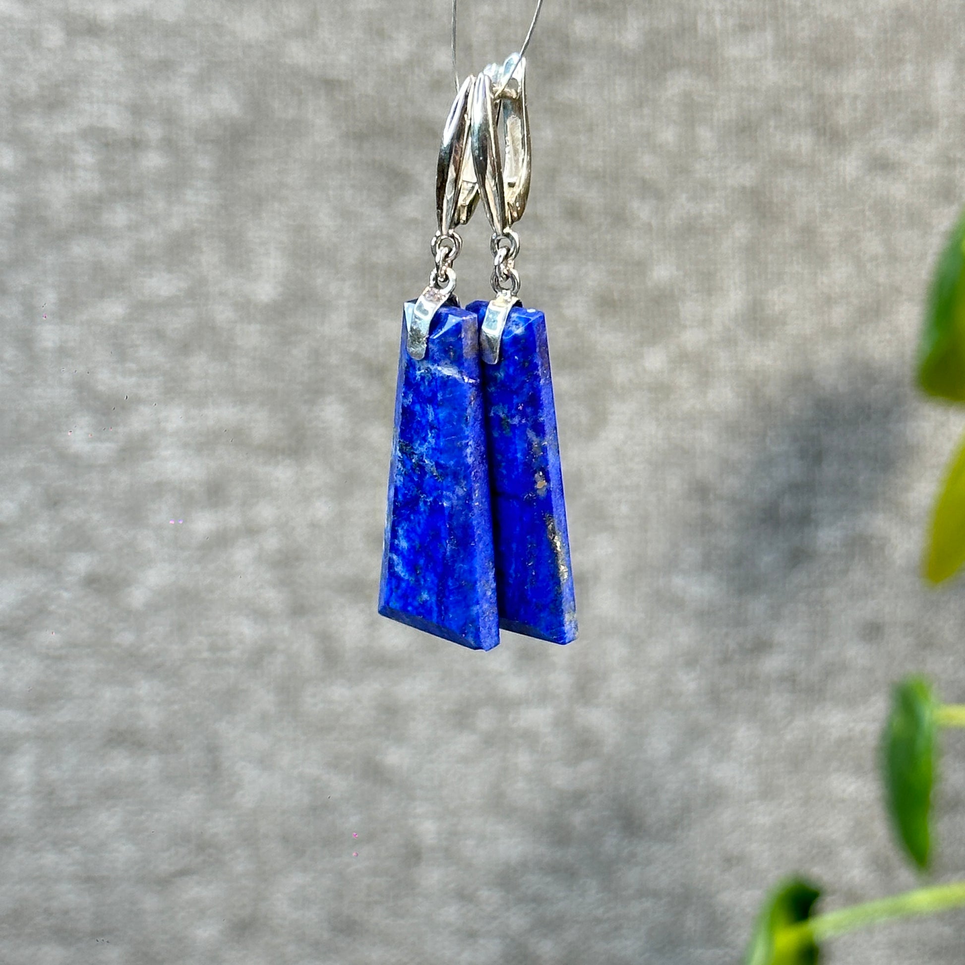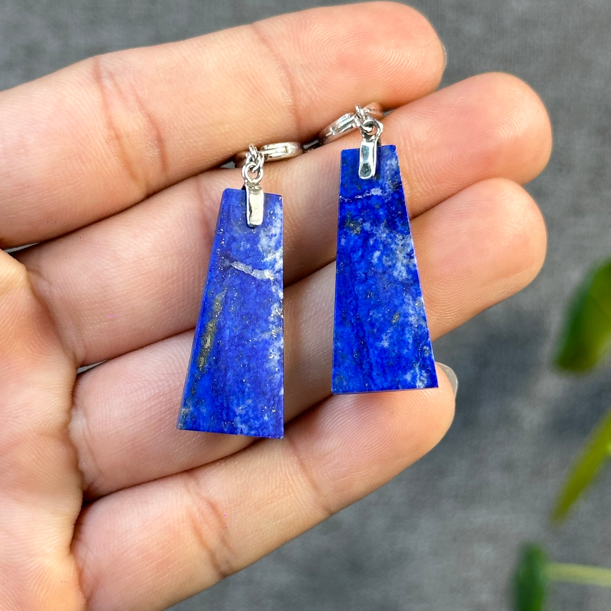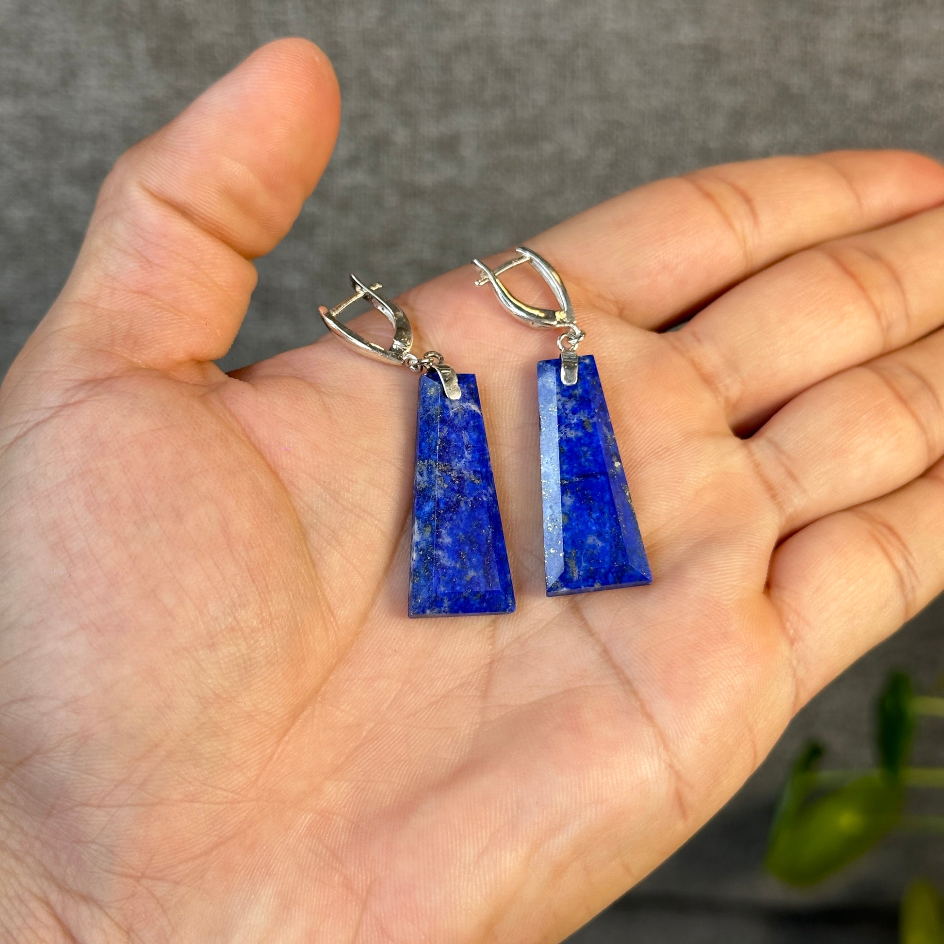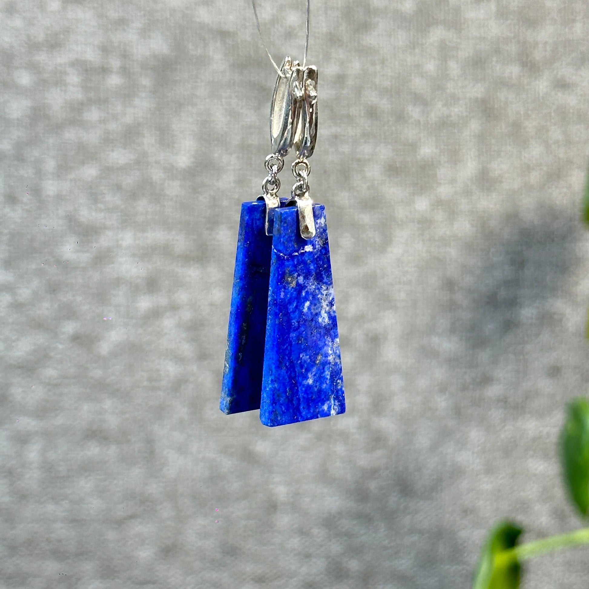 - Natural Lapis Lazuli Rectangle Earrings in Silver Setting
