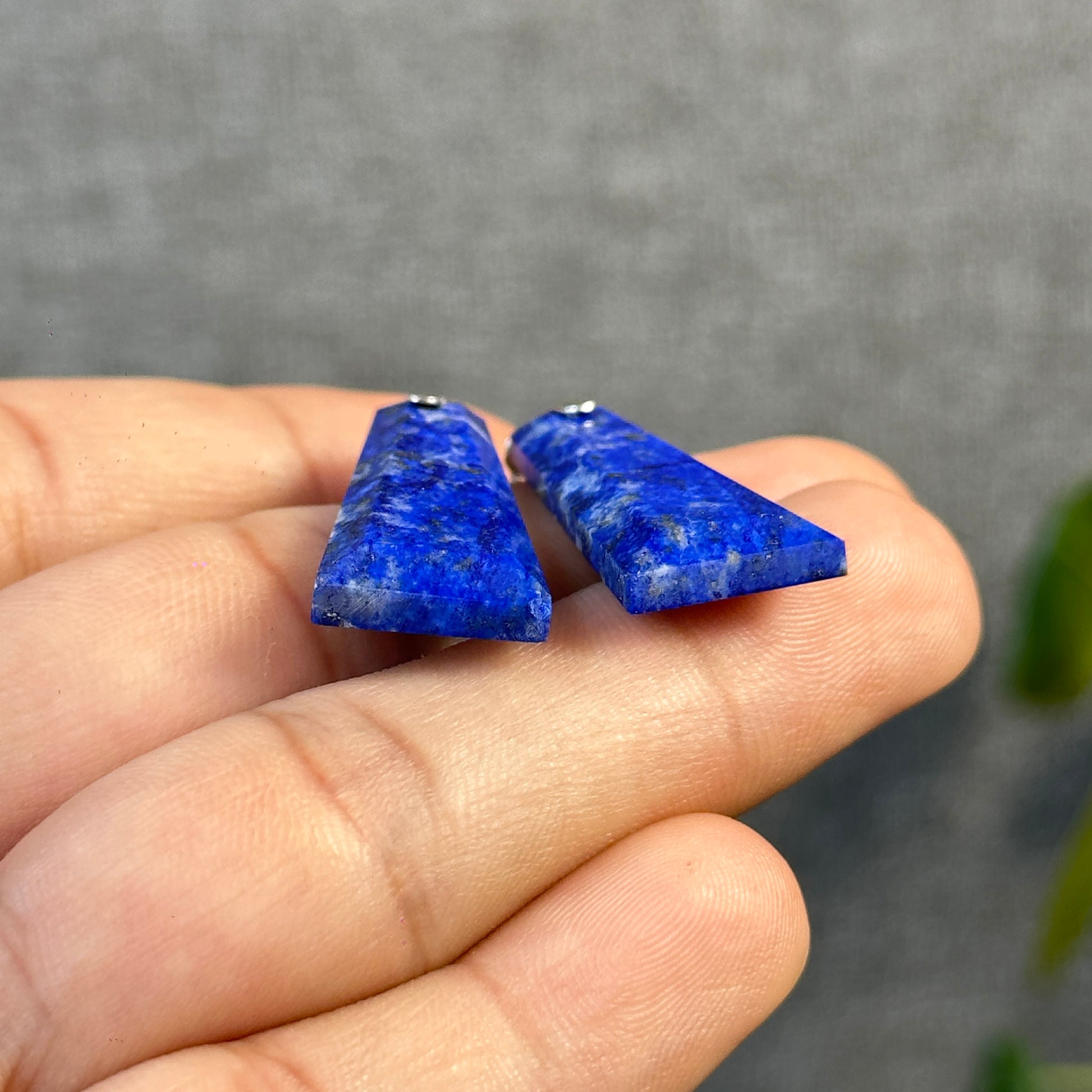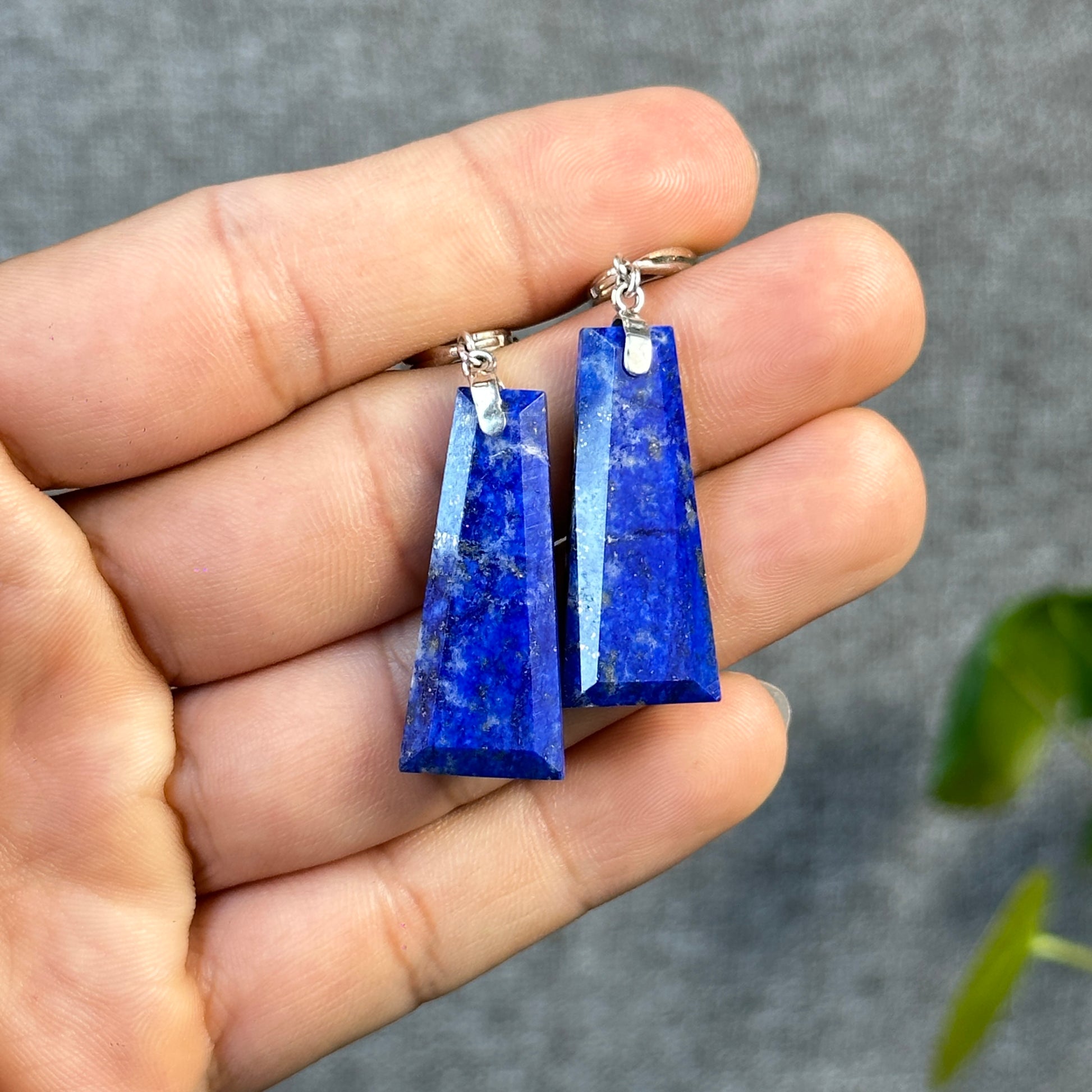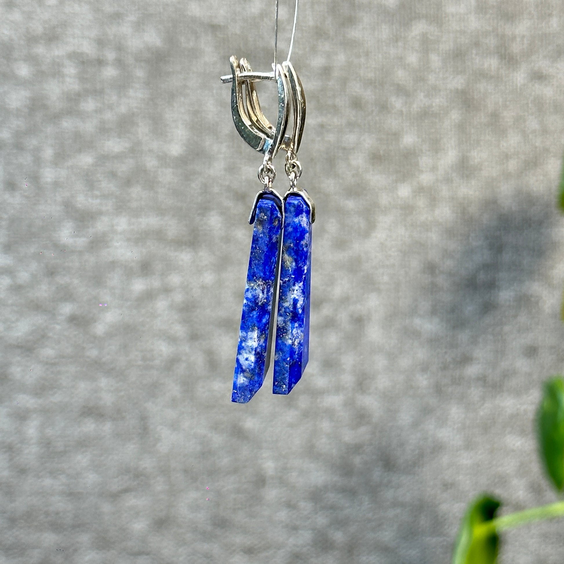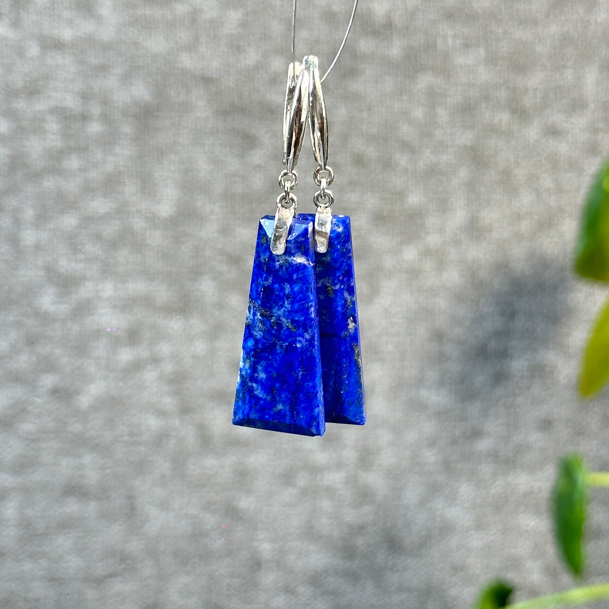 - Natural Lapis Lazuli Rectangle Earrings in Silver Setting