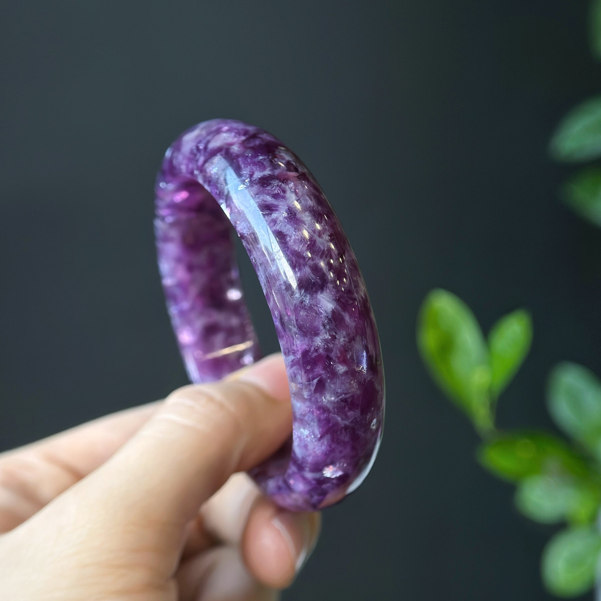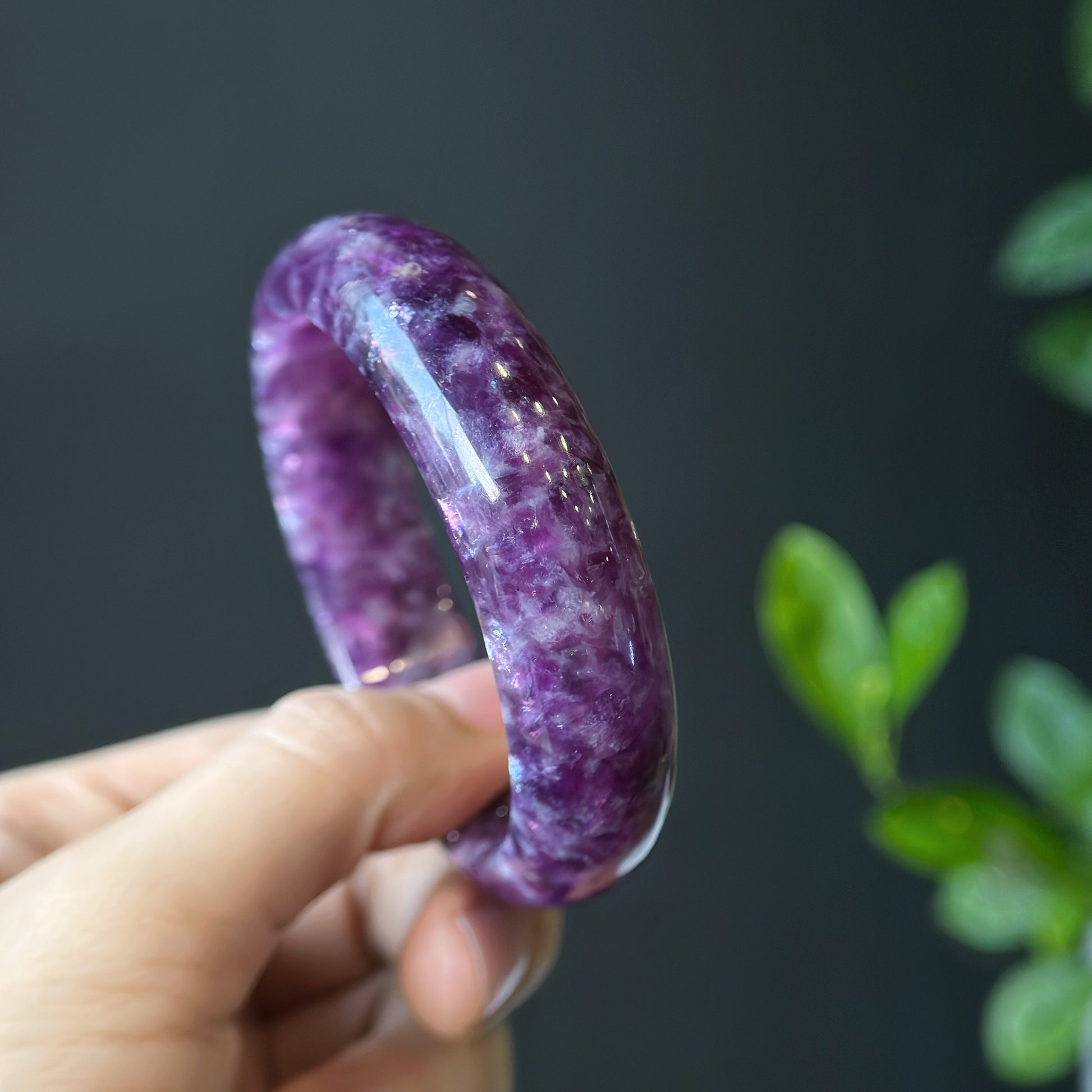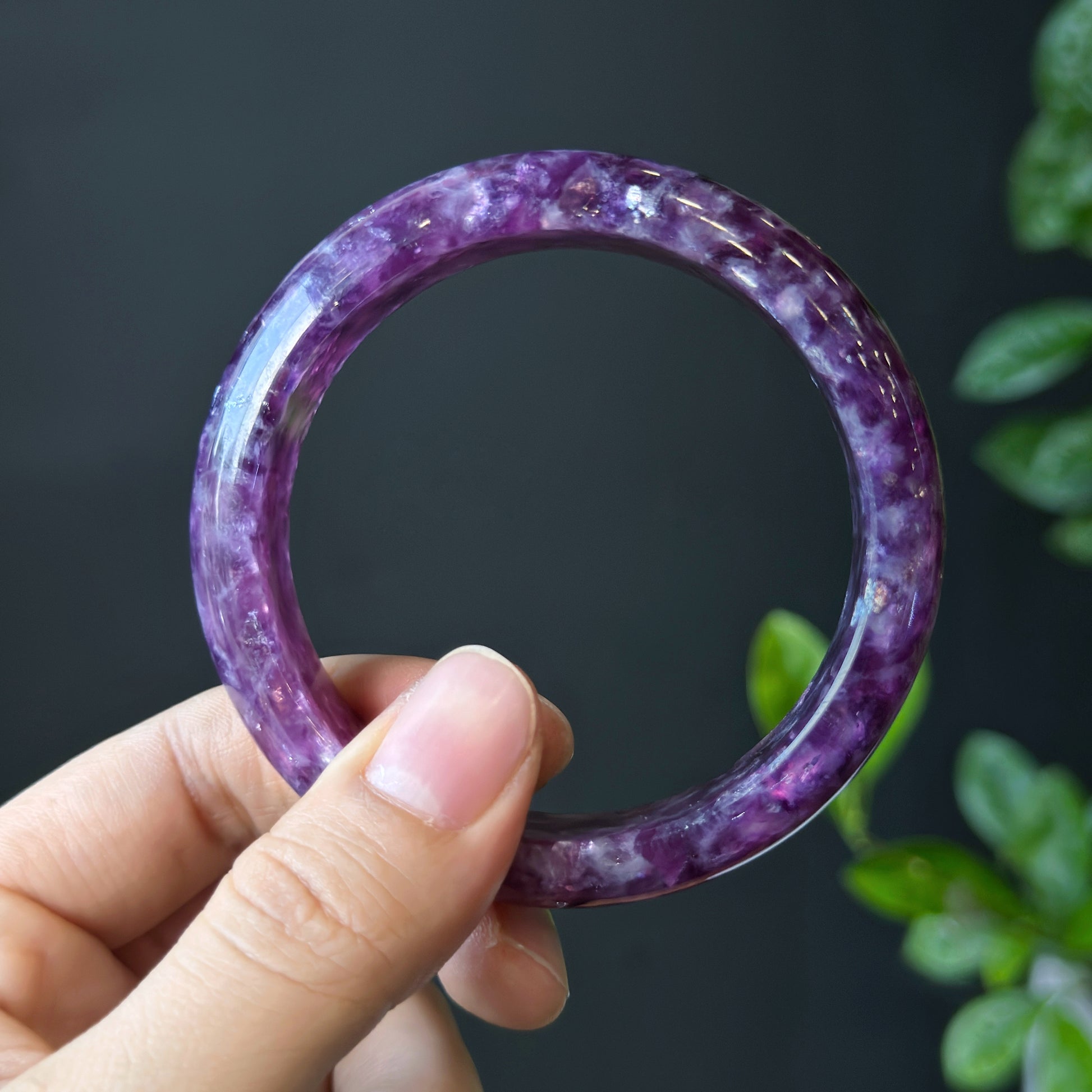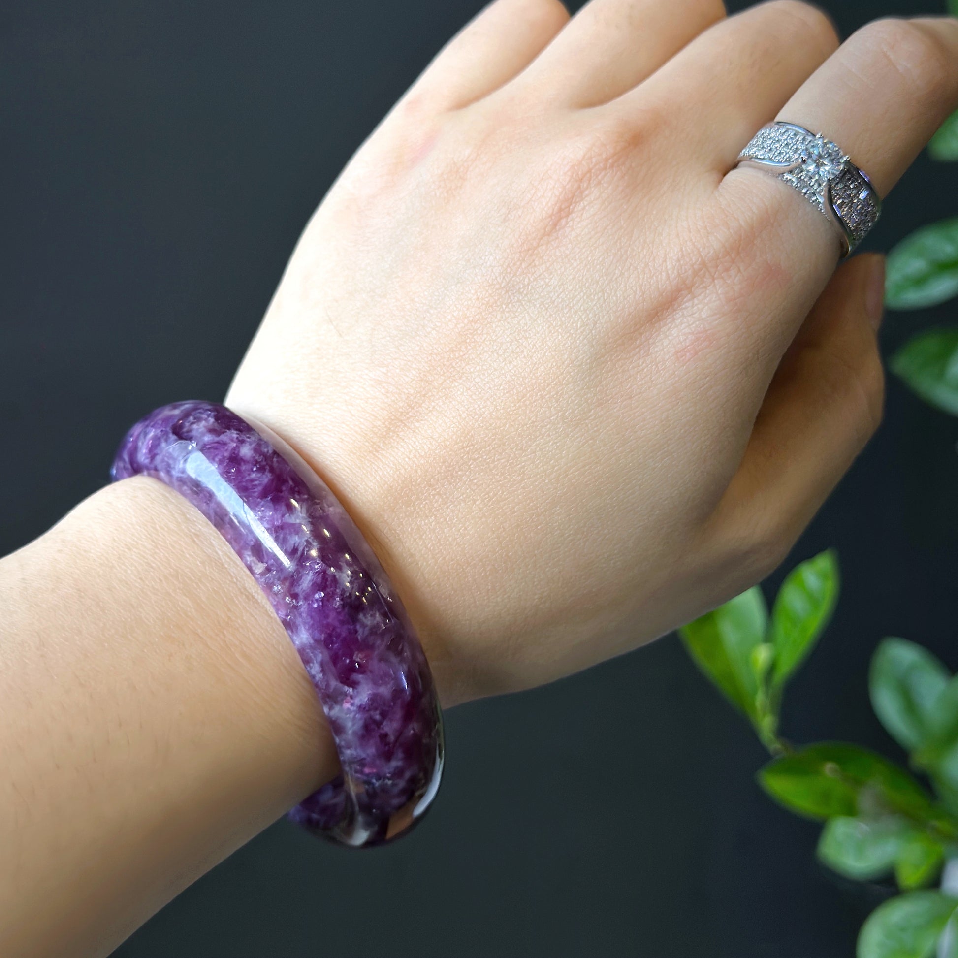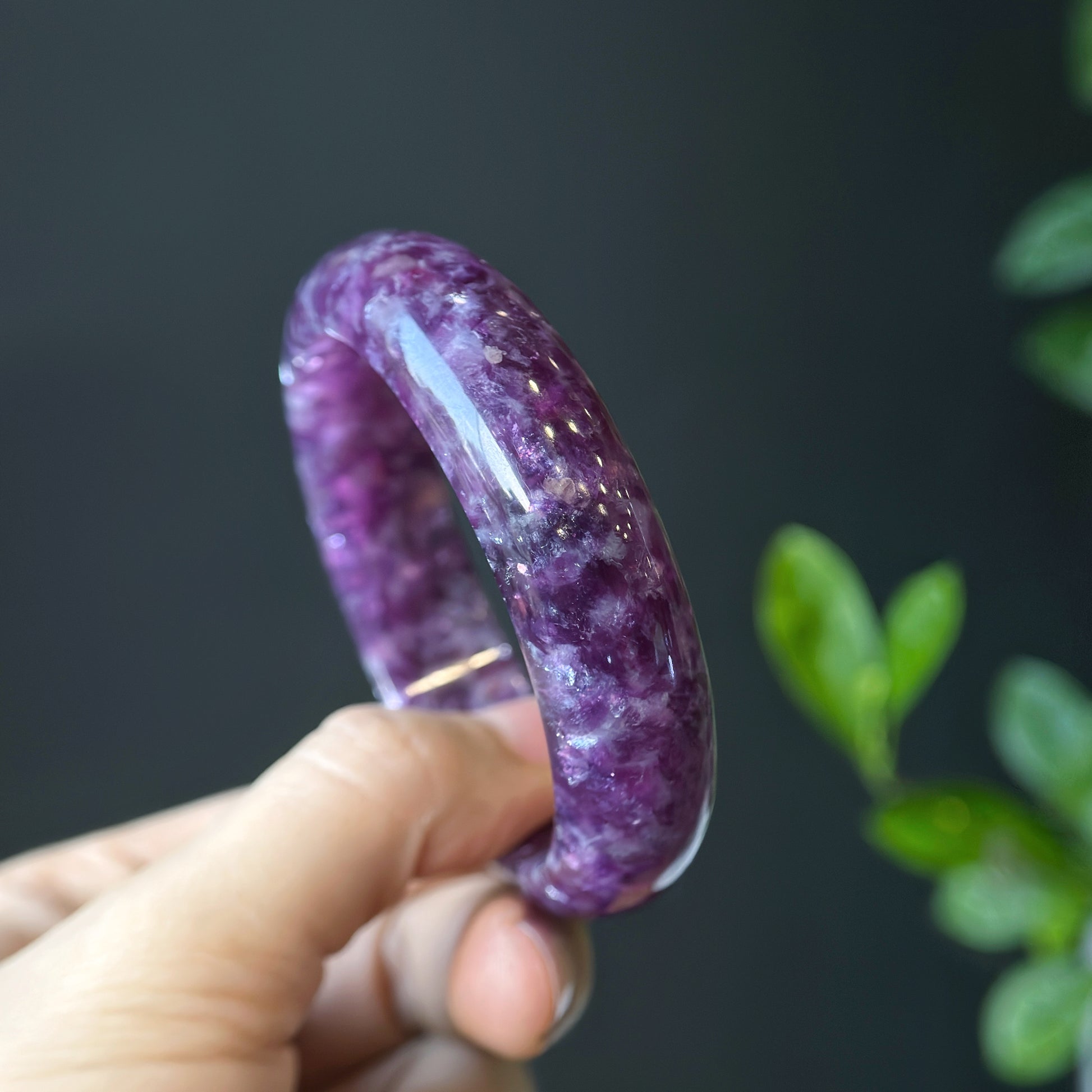 Natural Lepidolite Bangle Leaf Style Size 56 mm