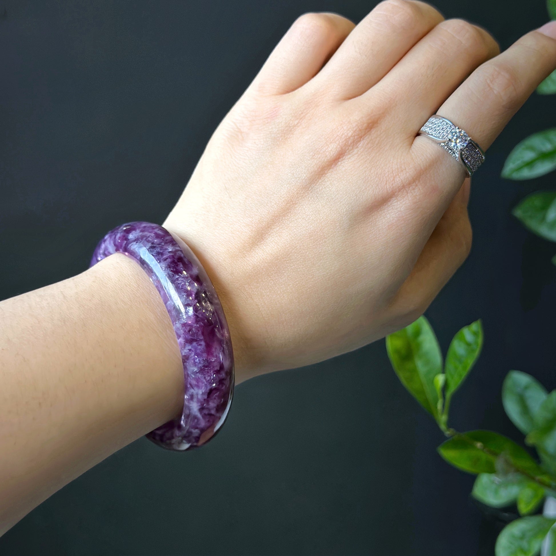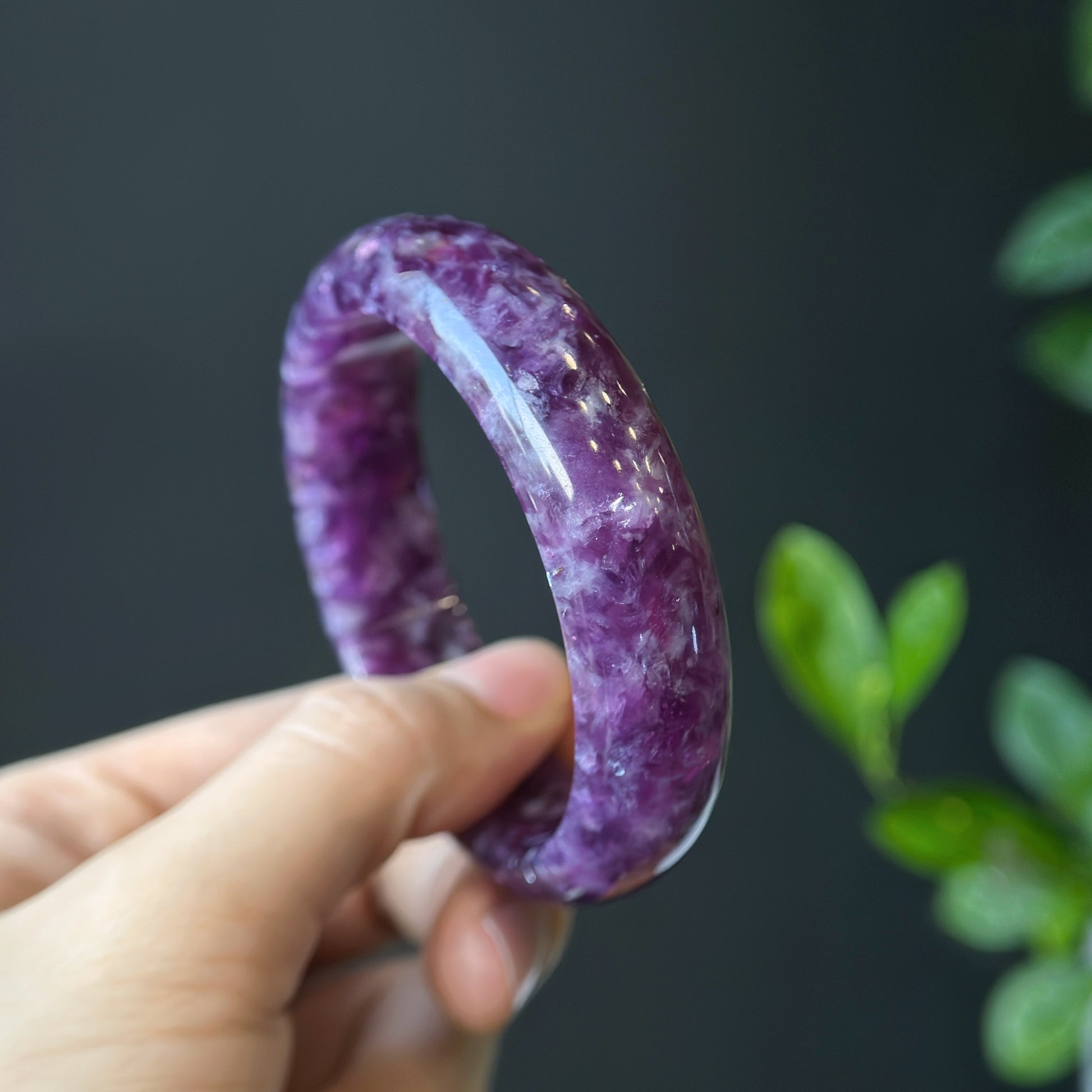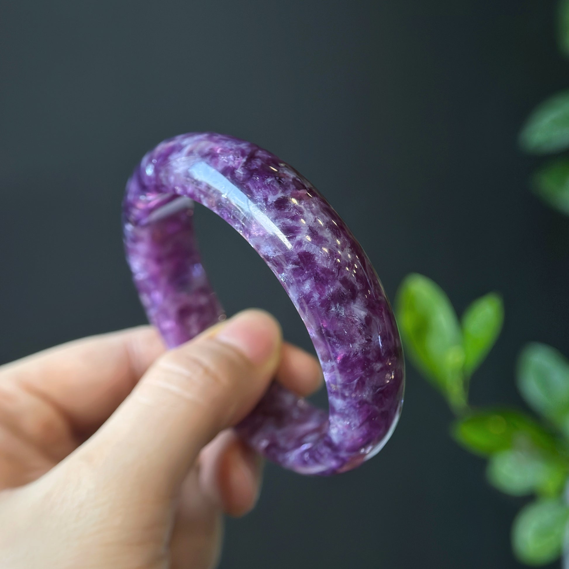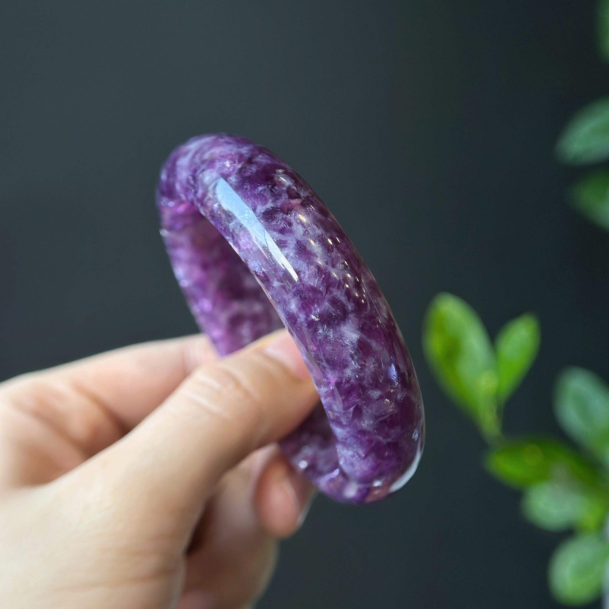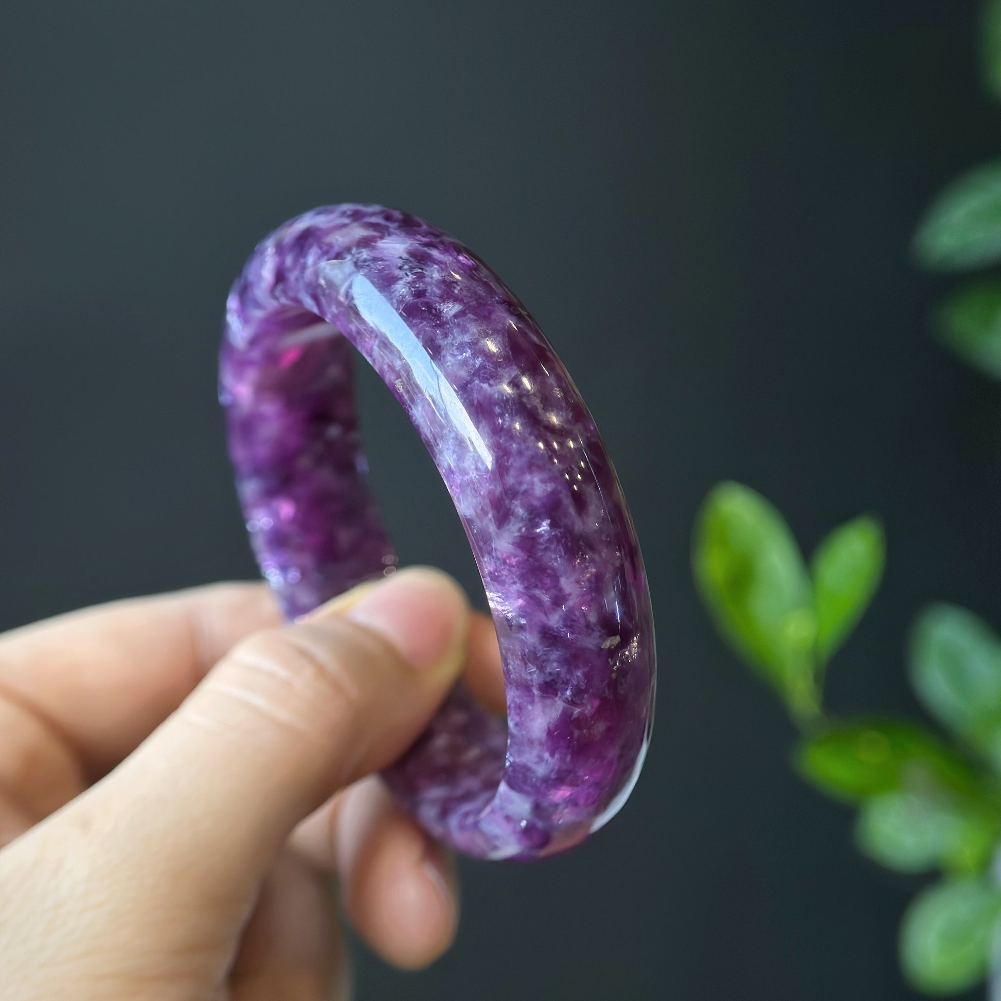 Natural Lepidolite Bangle Leaf Style Size 56 mm