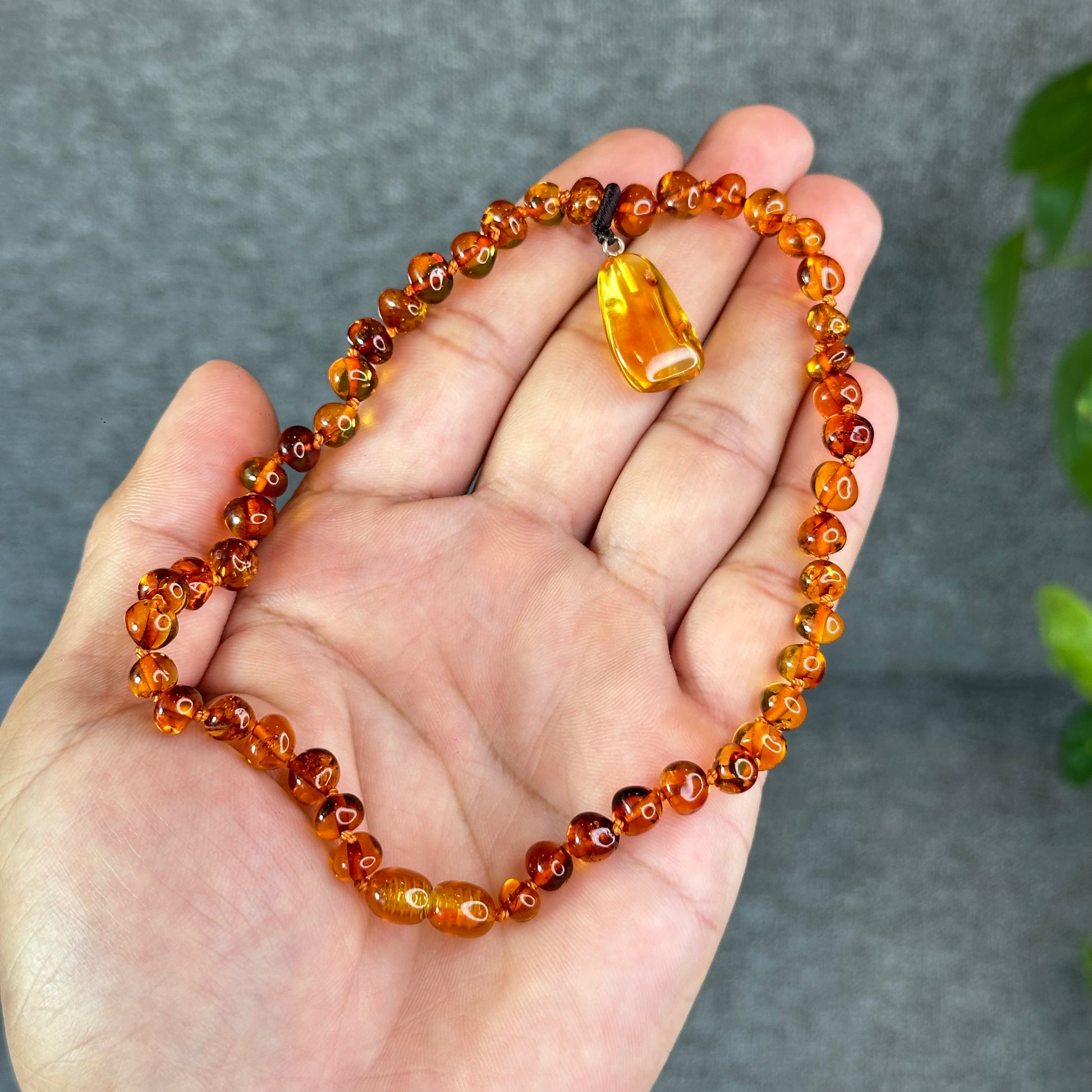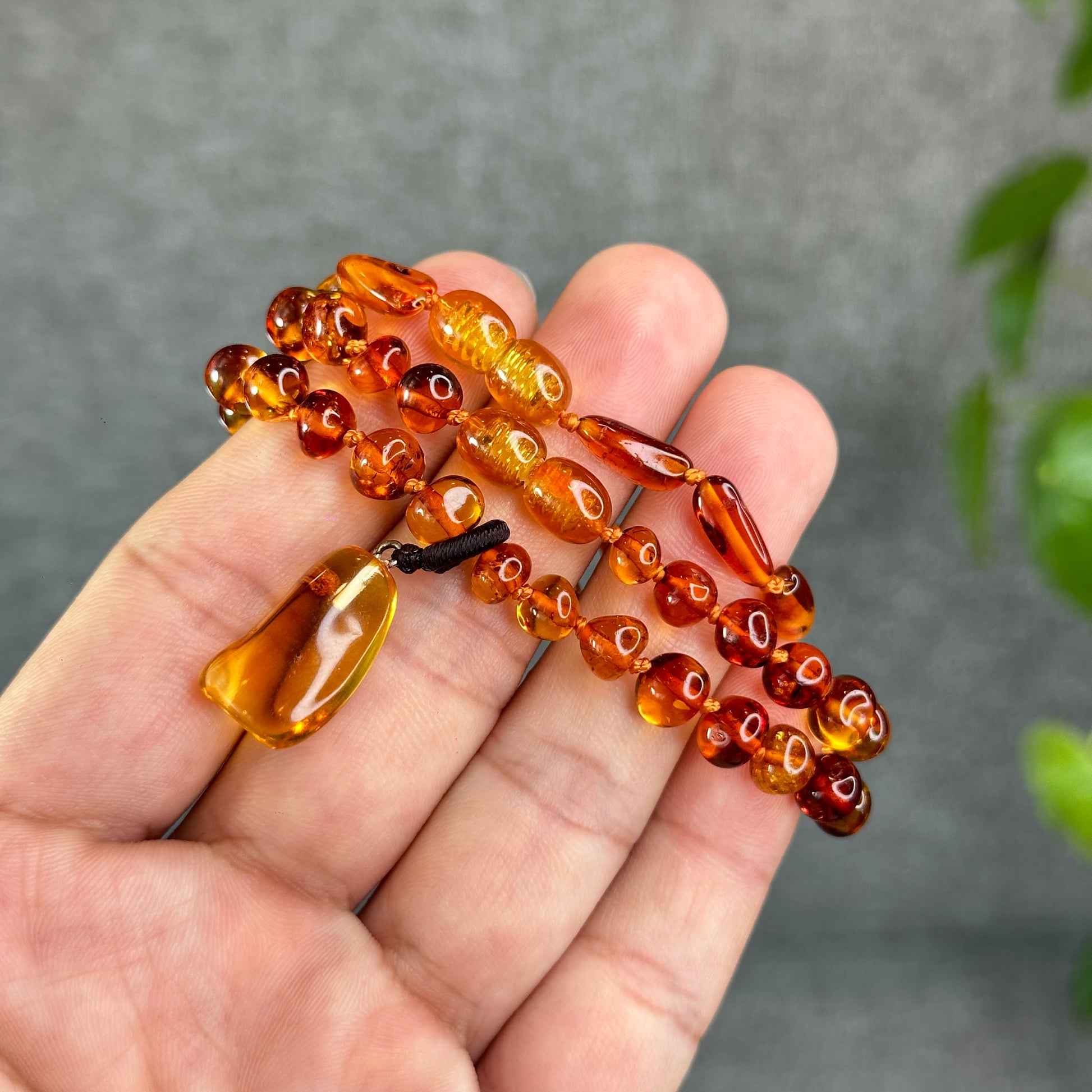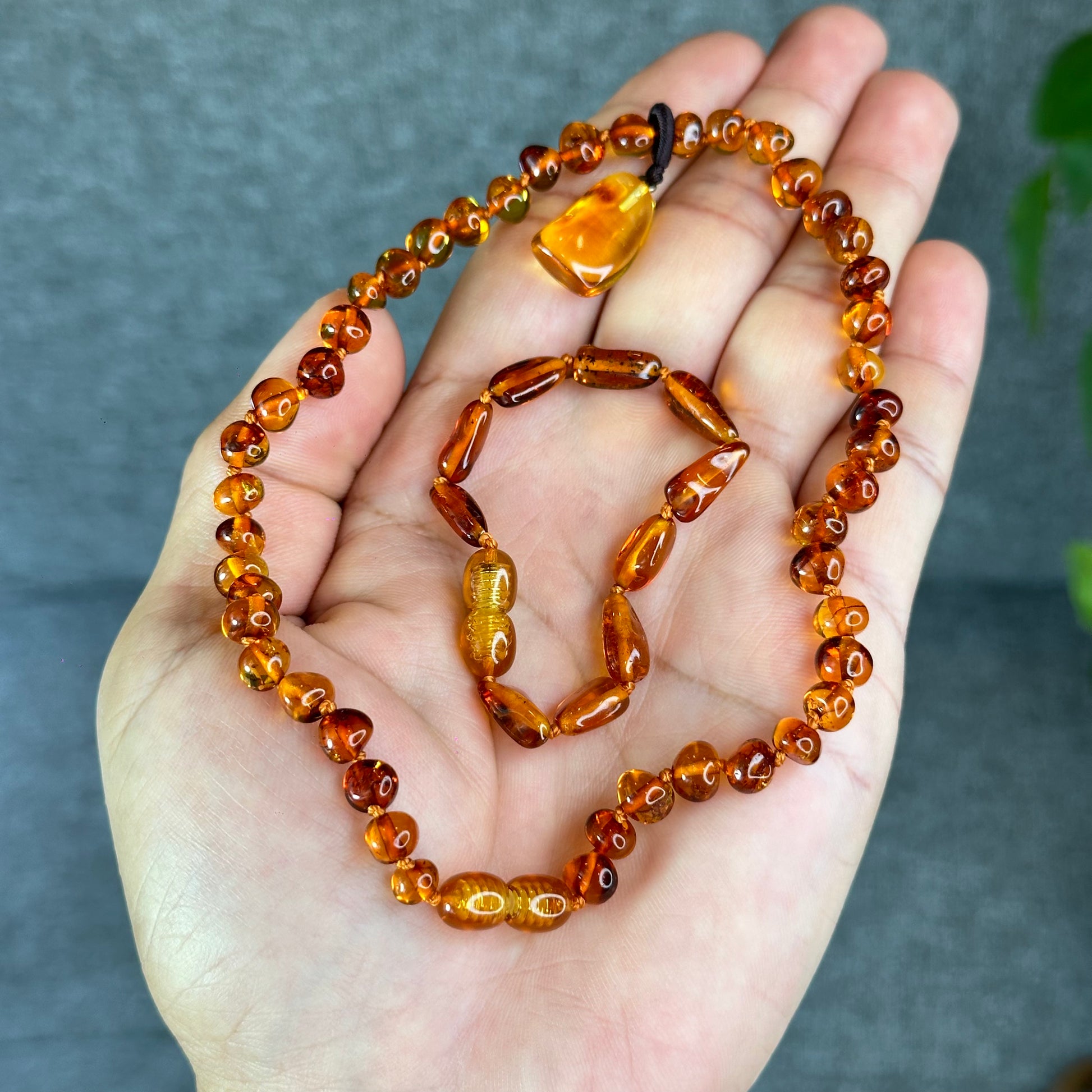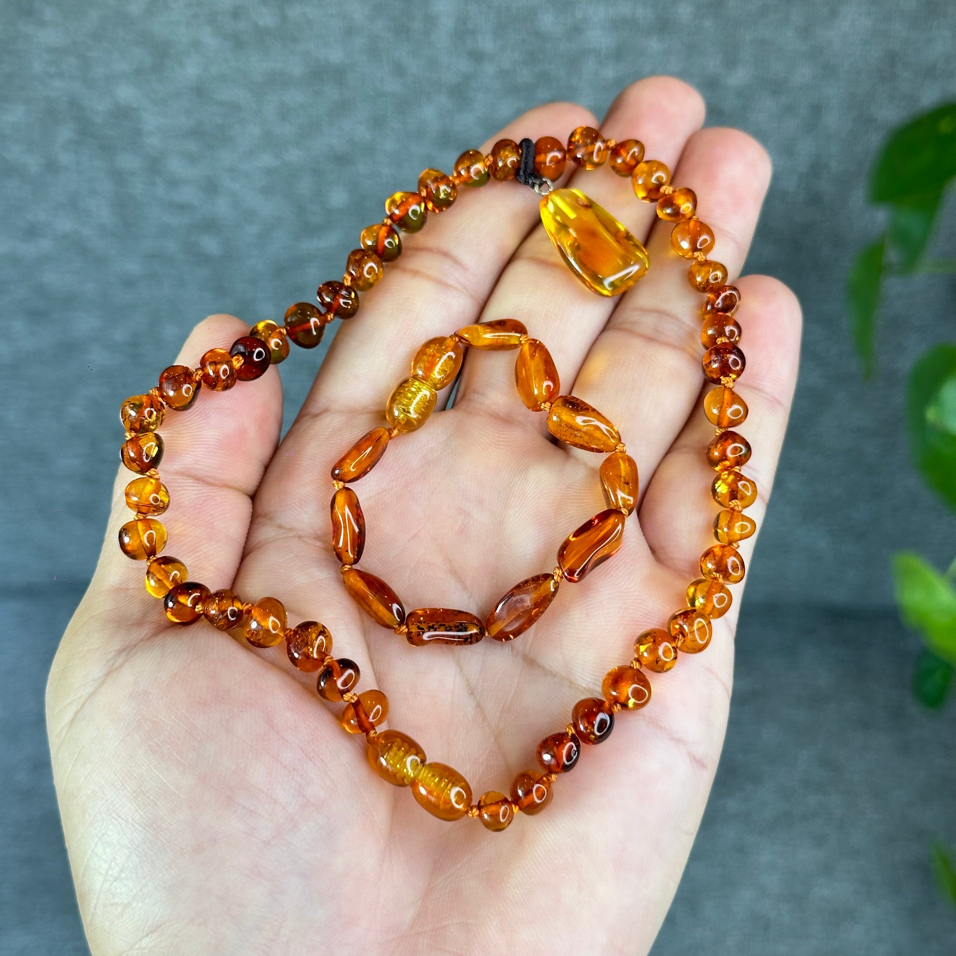 - Natural Amber Necklace and Bracelet with Pendant for Kids