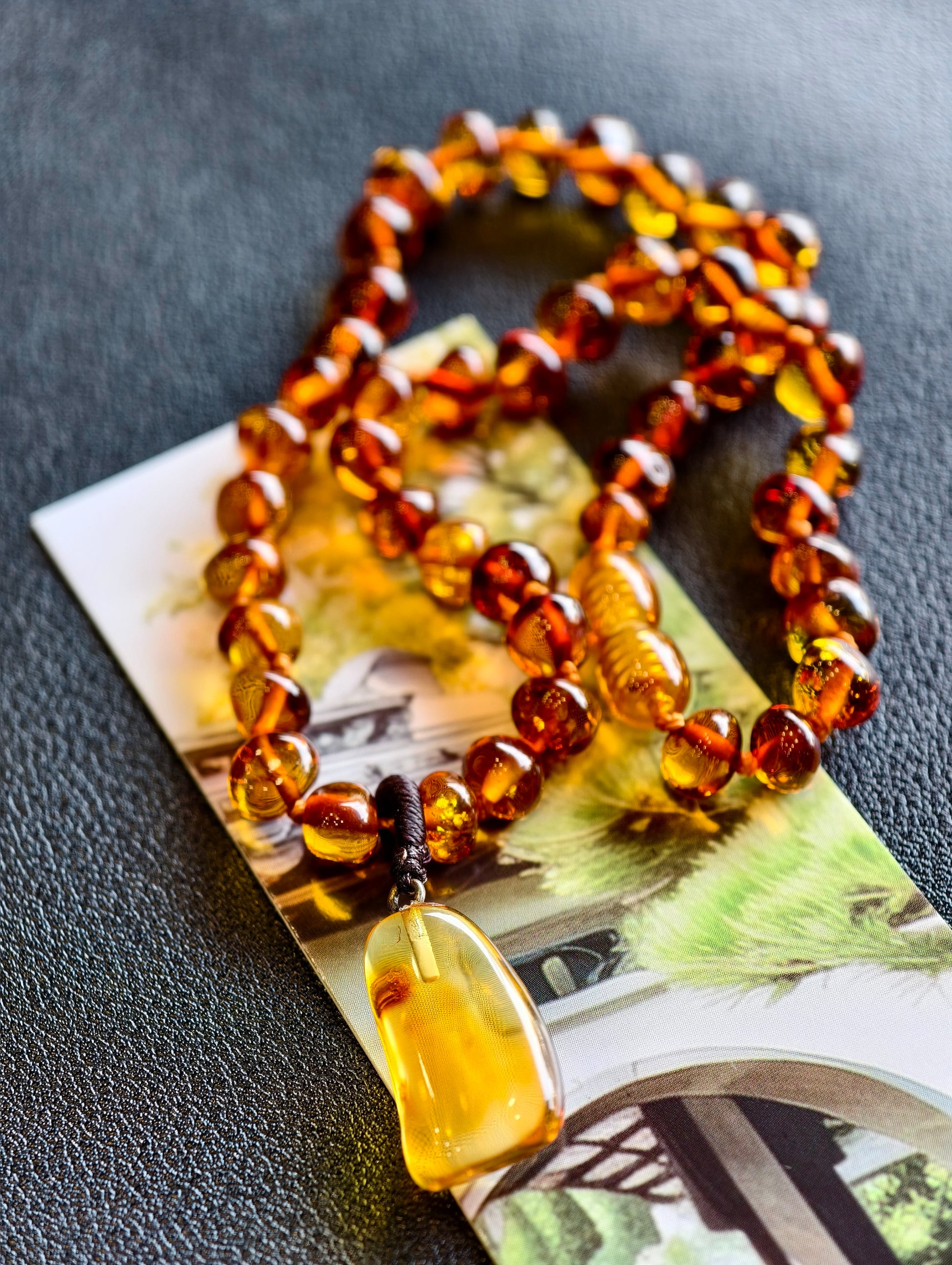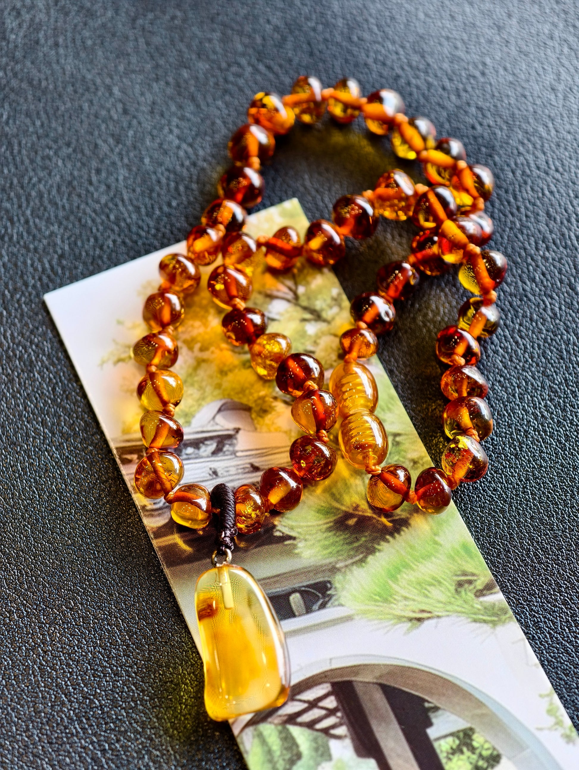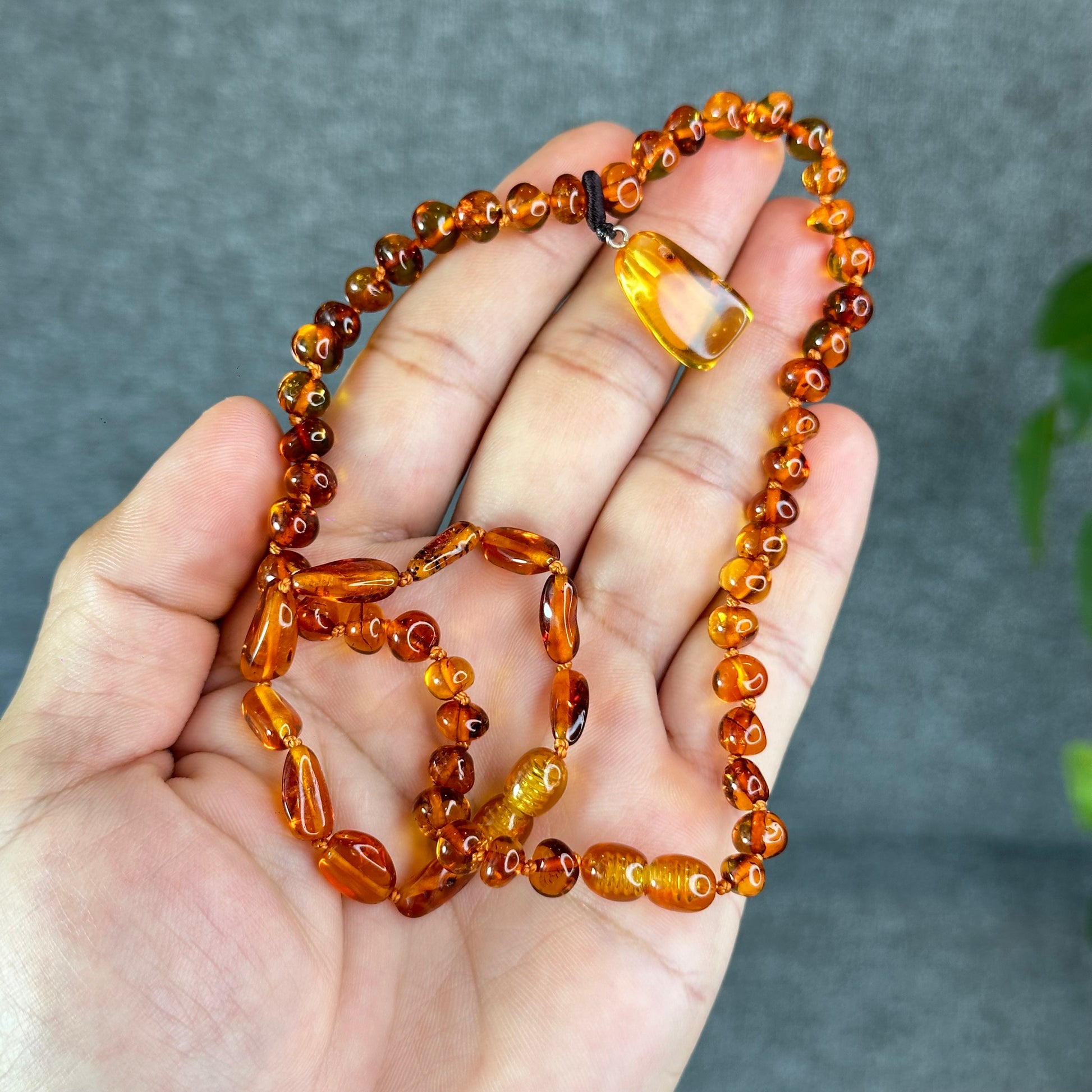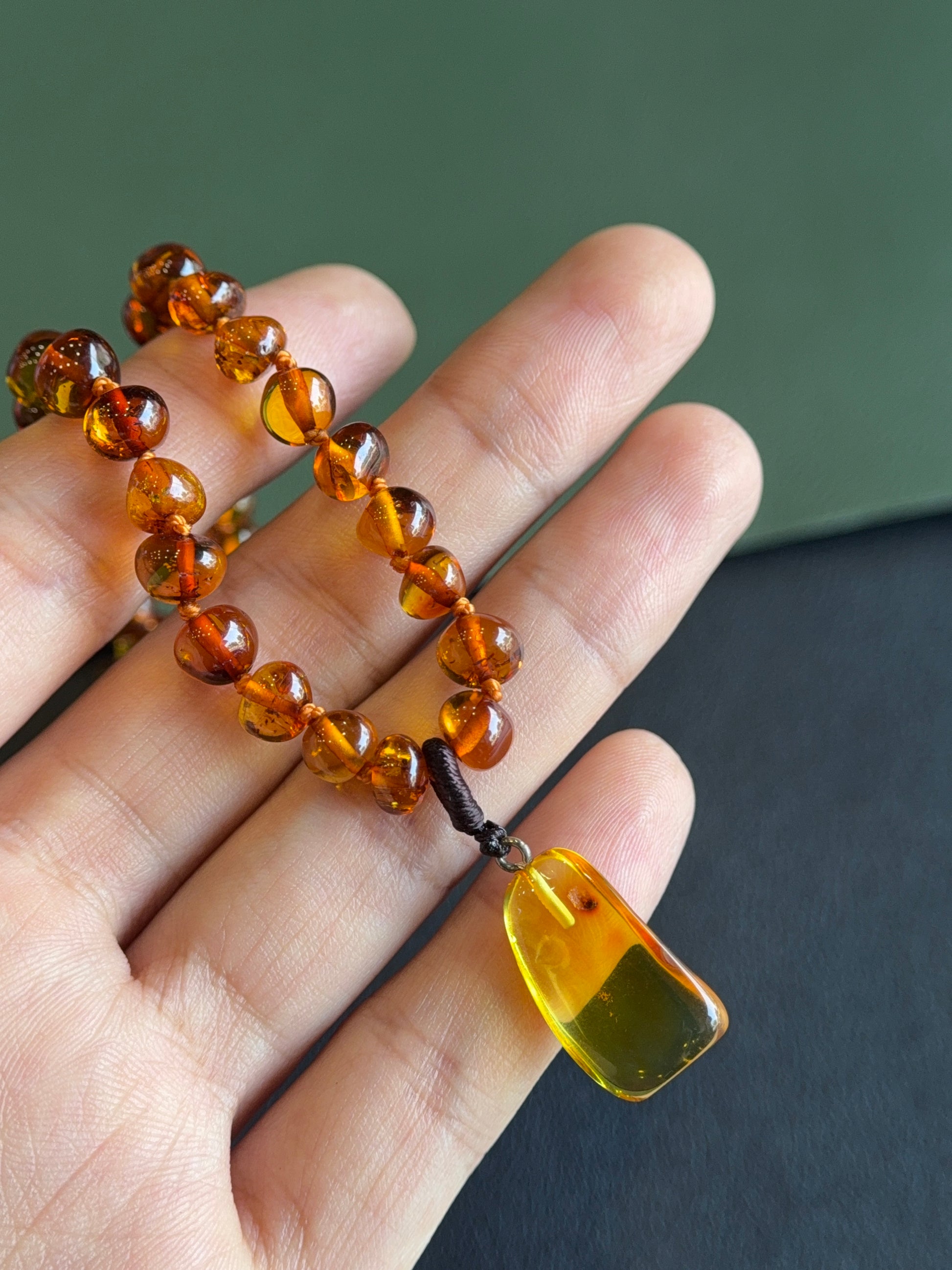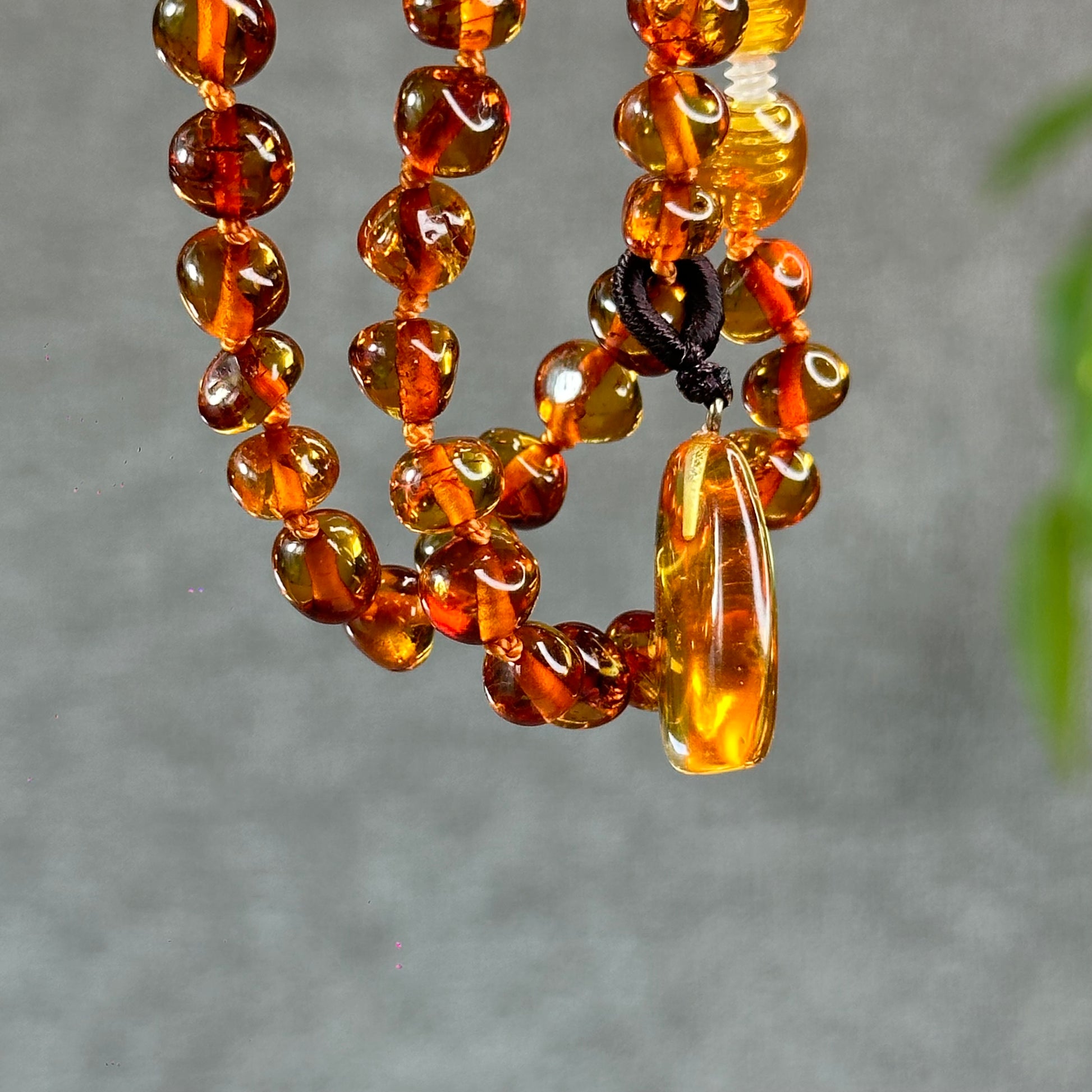 - Natural Amber Necklace and Bracelet with Pendant for Kids