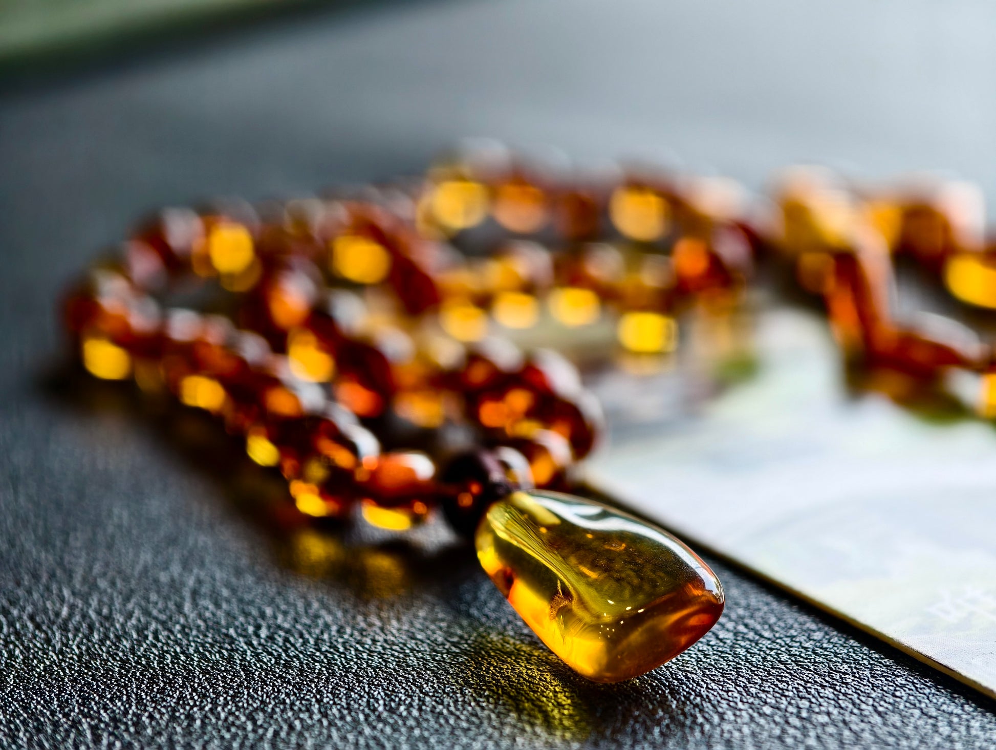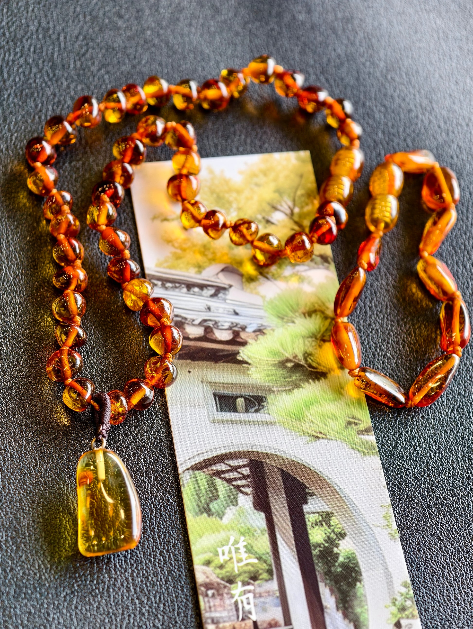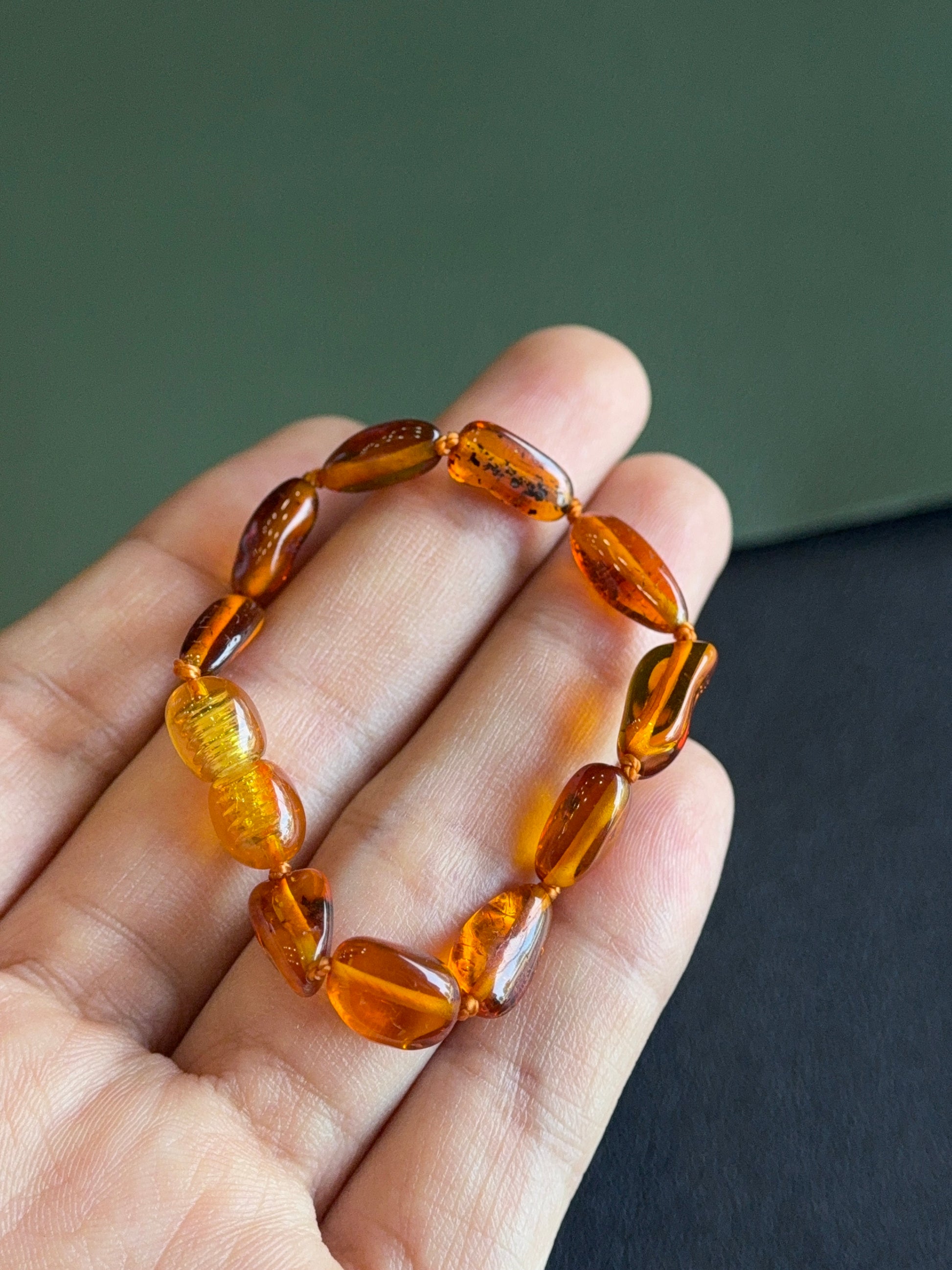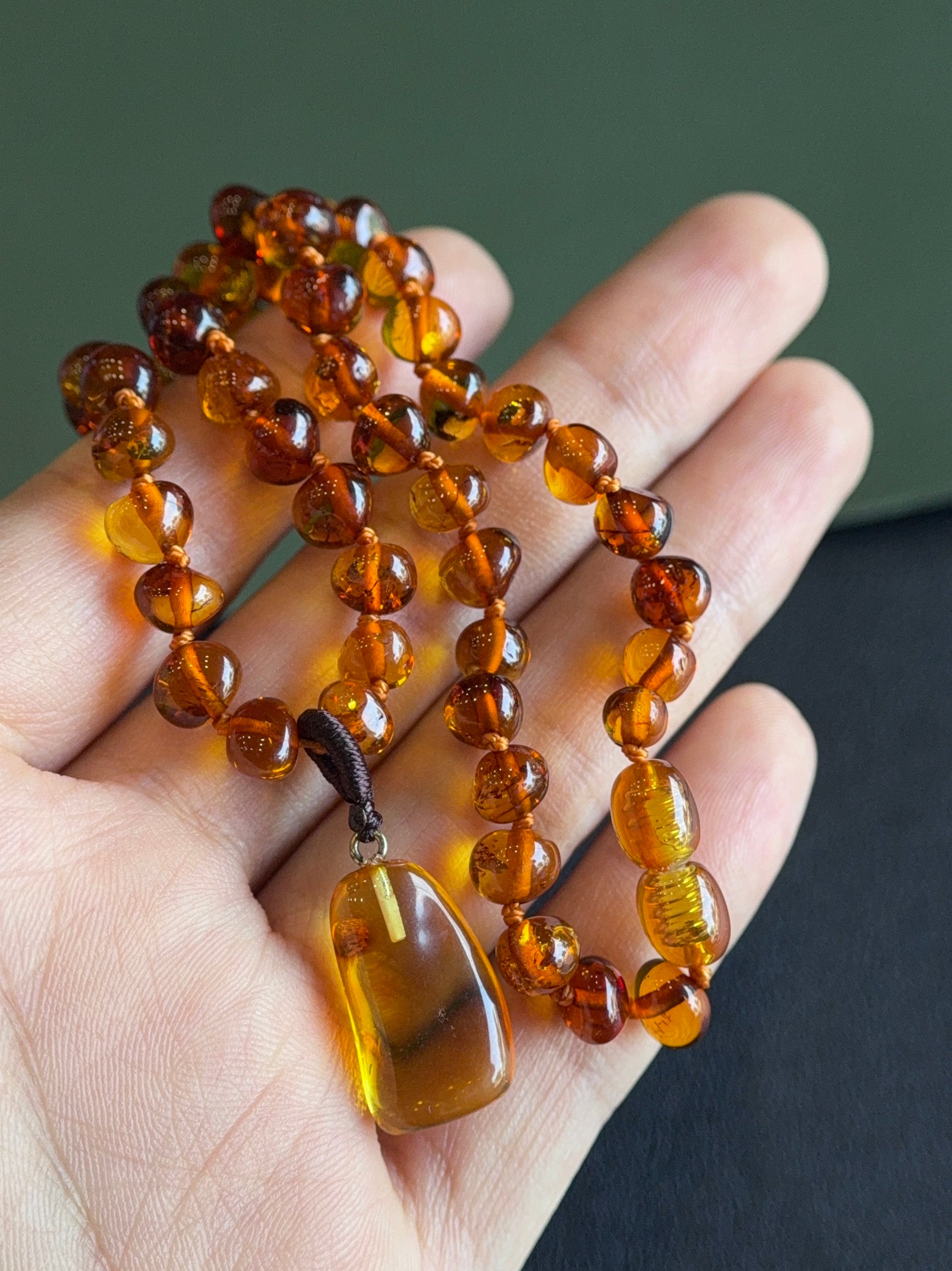 - Natural Amber Necklace and Bracelet with Pendant for Kids