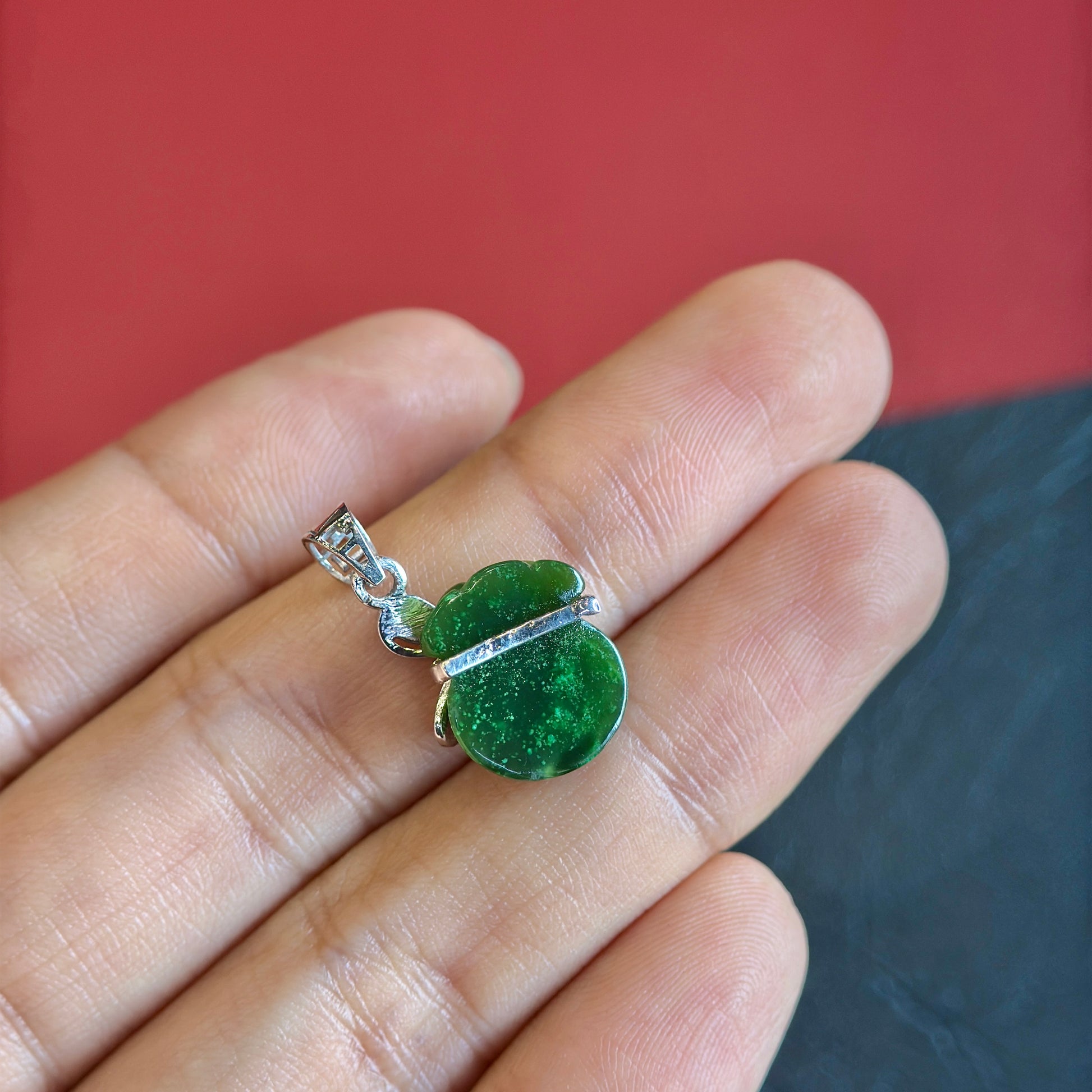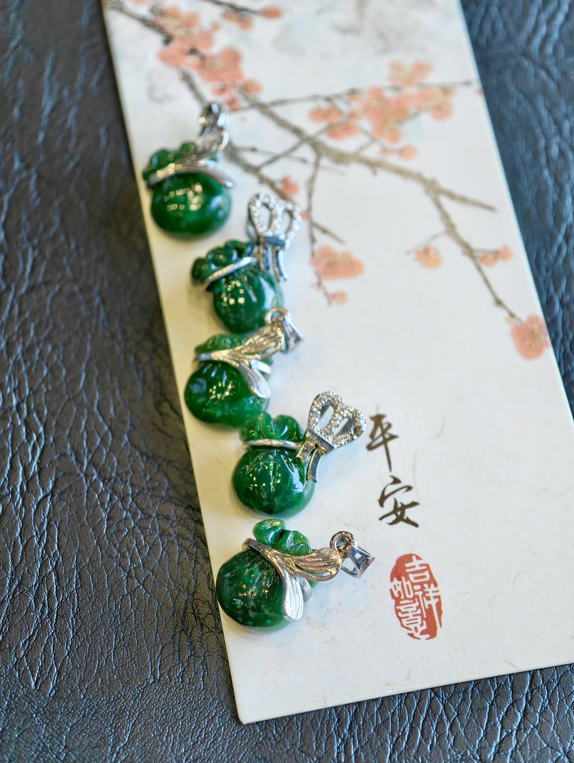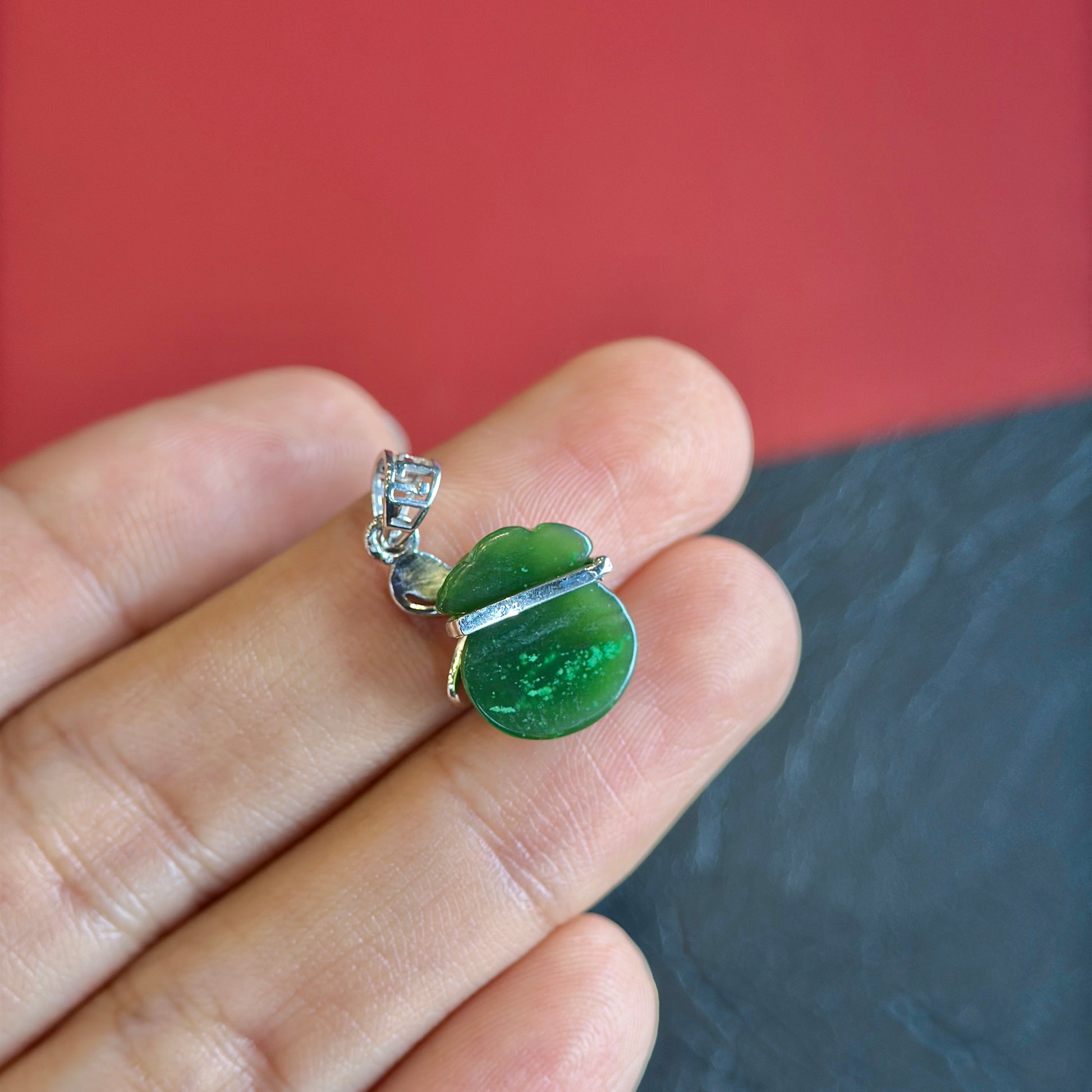 Prosperous Bag Natural Nephrite Jade Pendant with Gold Plated Silver Hook