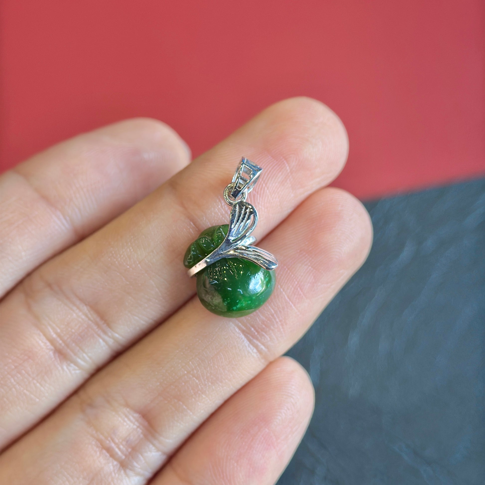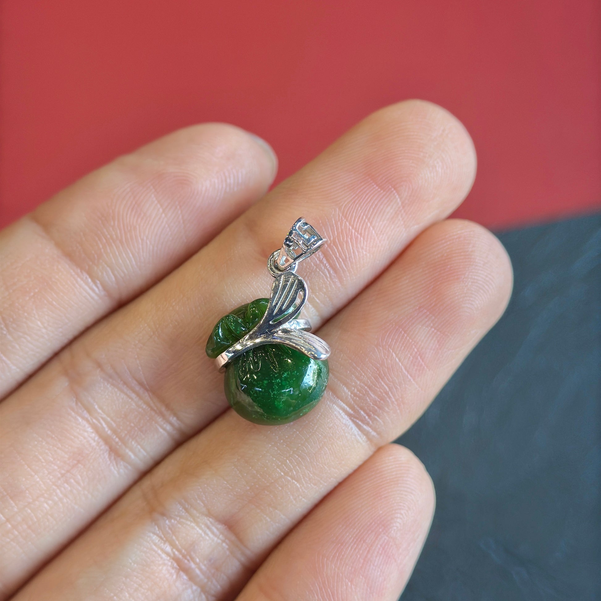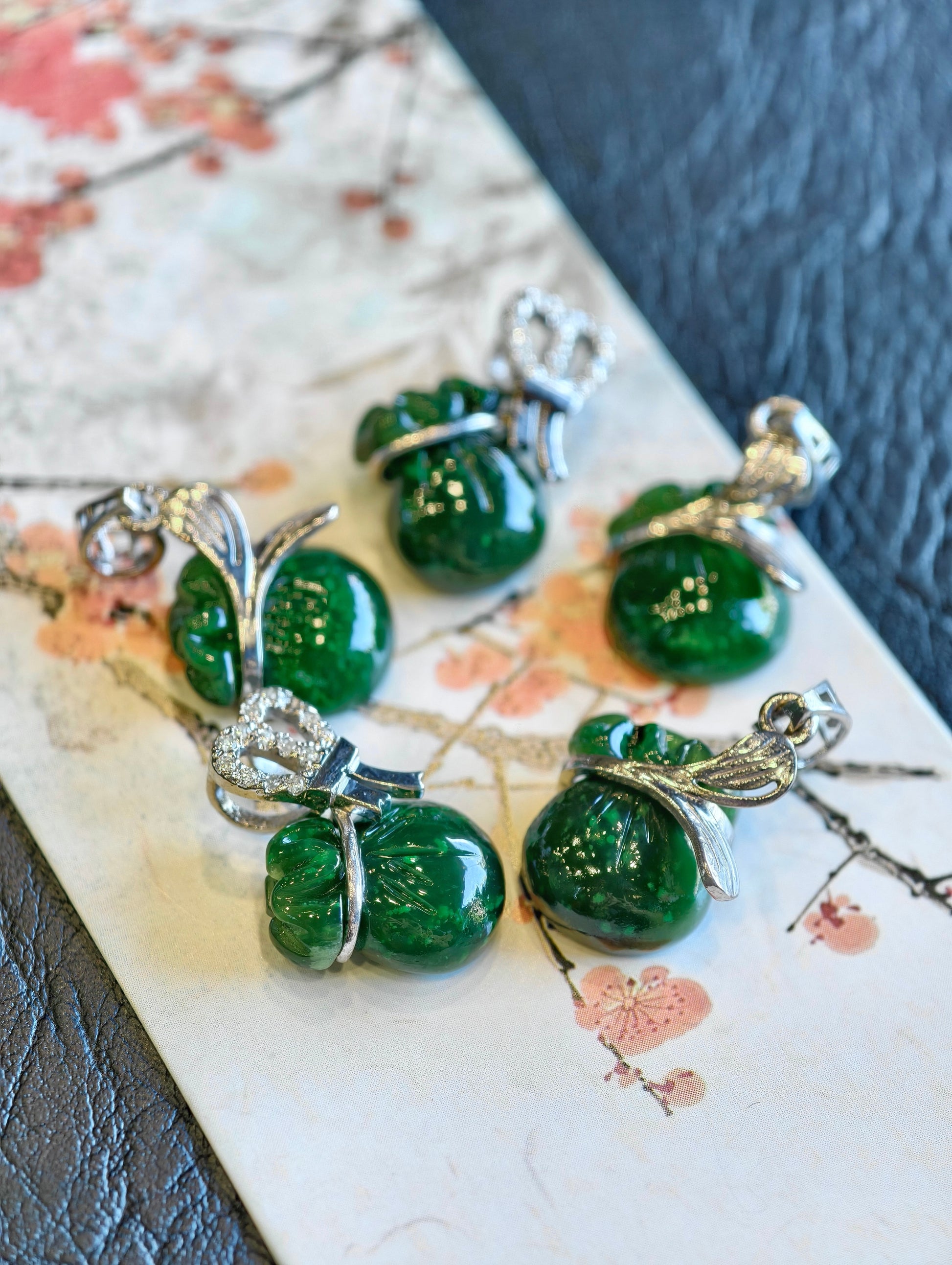 Prosperous Bag Natural Nephrite Jade Pendant with Gold Plated Silver Hook