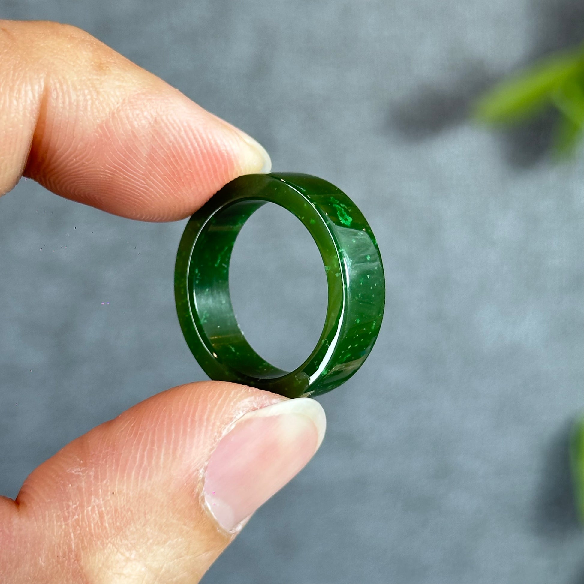 - Natural Nephrite Jade Ring Square Style Size 1.75 by 16 mm by 15 mm