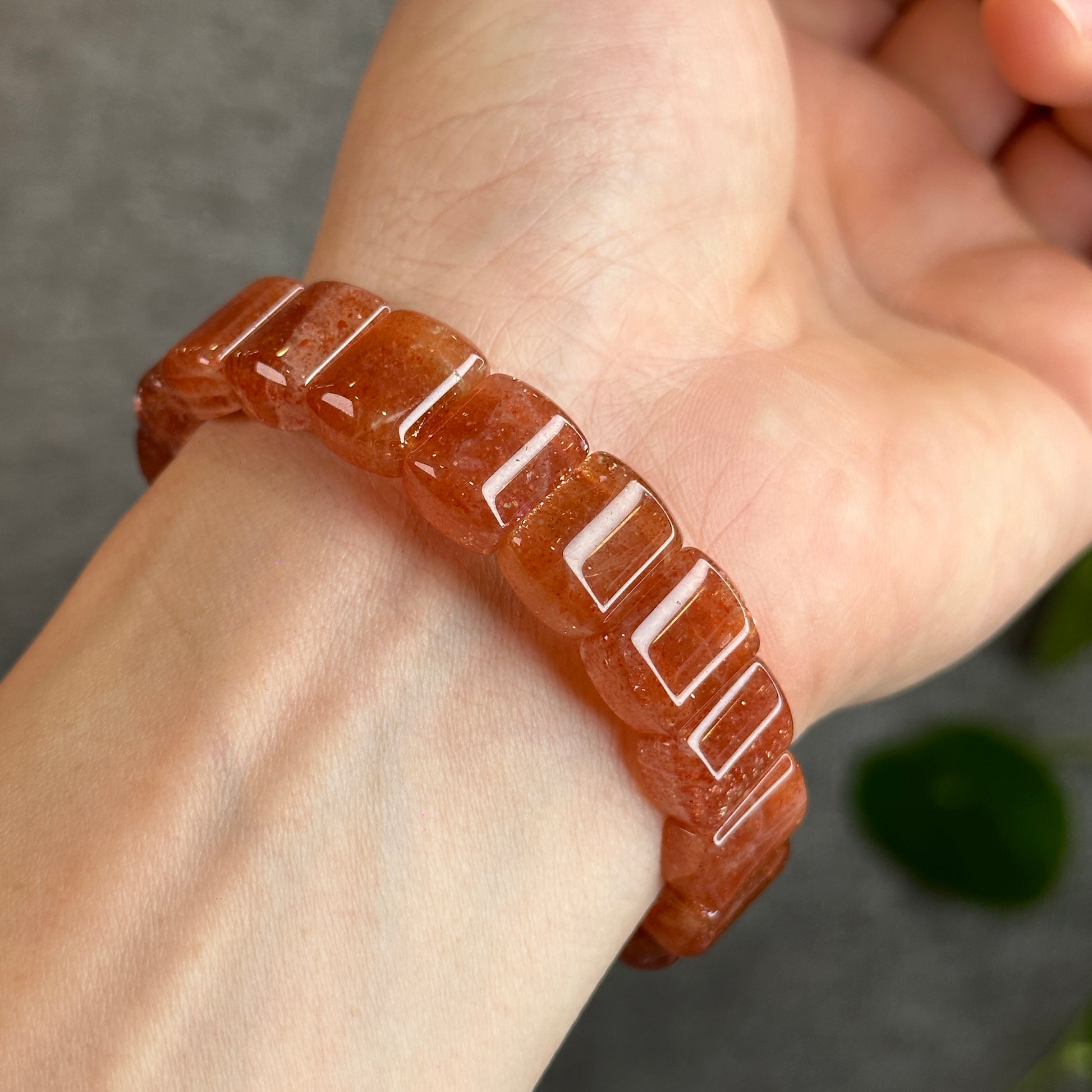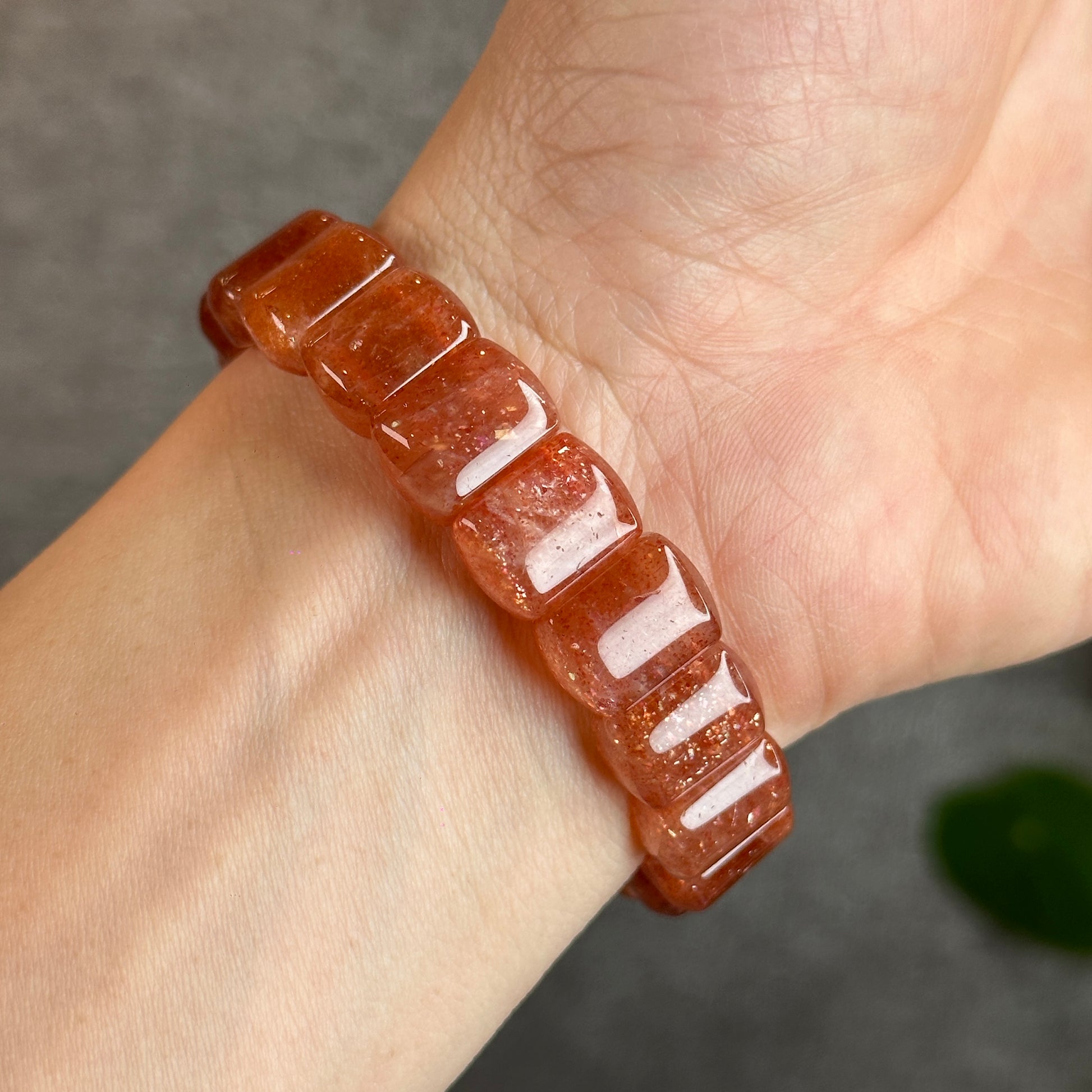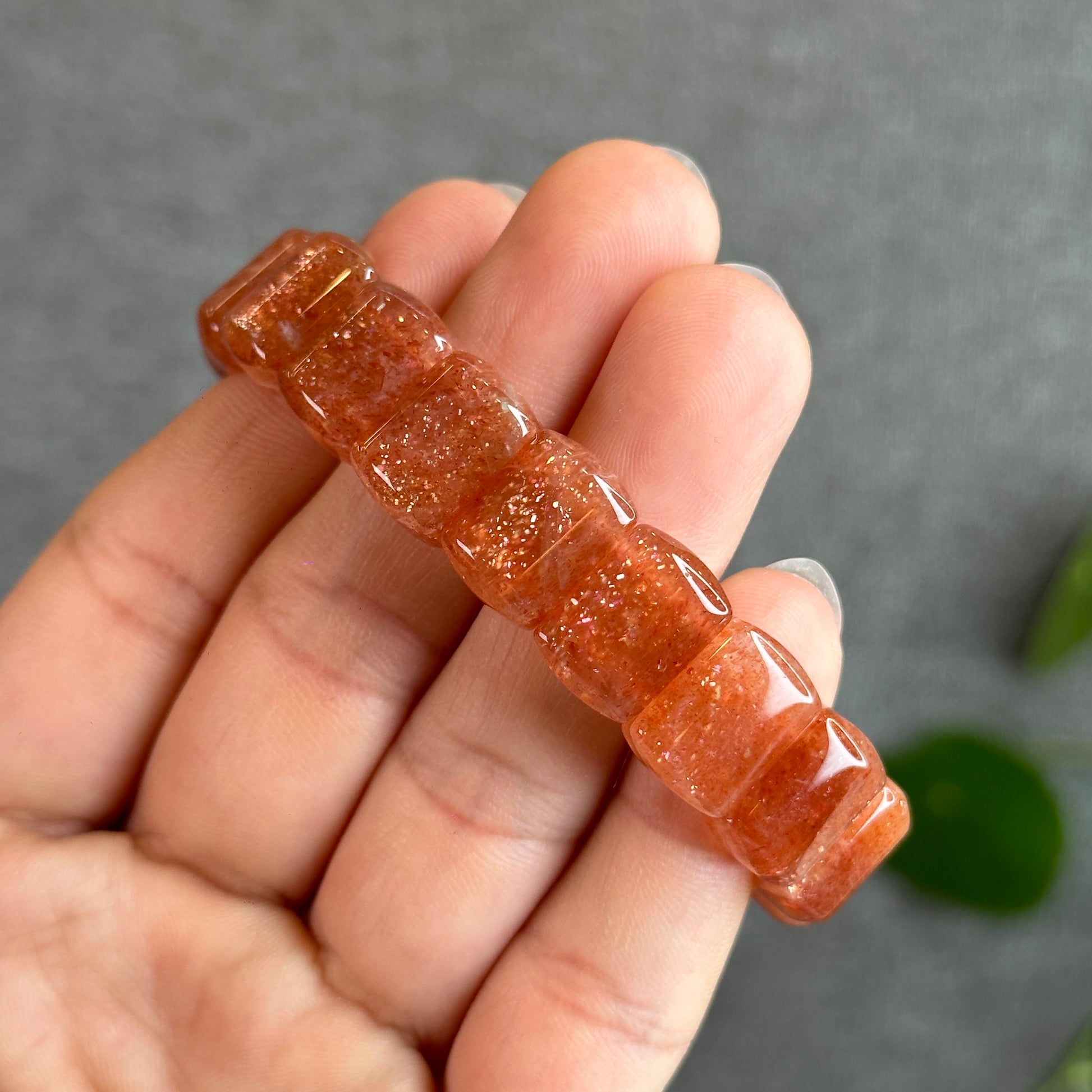 Natural Golden Sunstone Flat Bracelet Size 14 mm