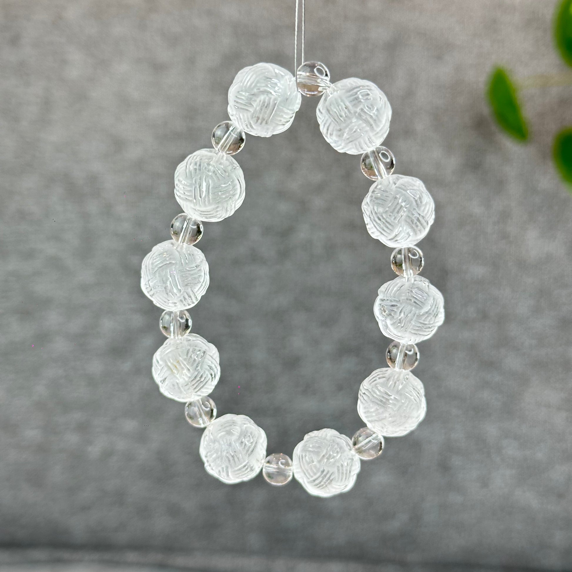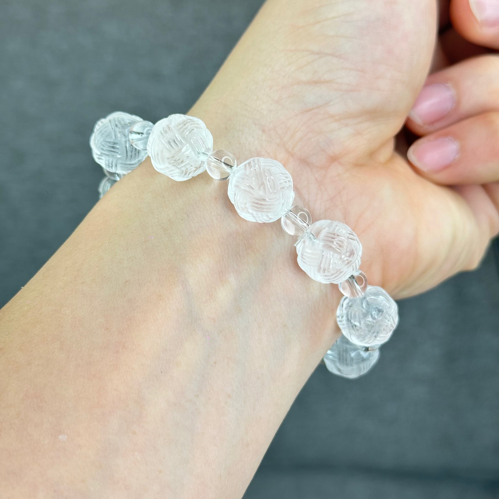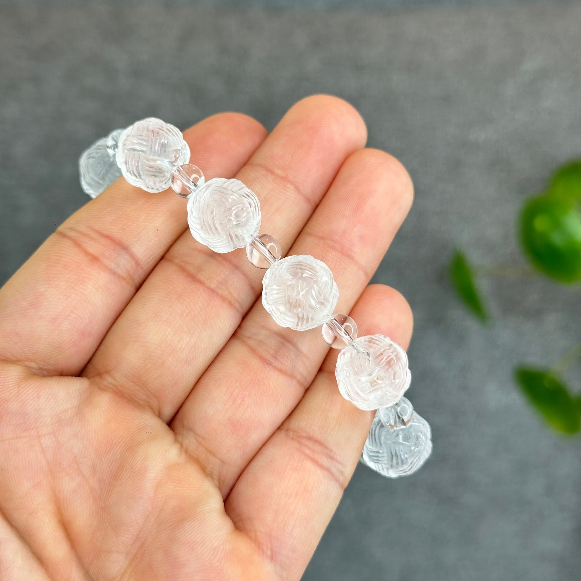 Natural Clear Quartz Carved Mixed Bead Bracelet Size 12.5 mm
