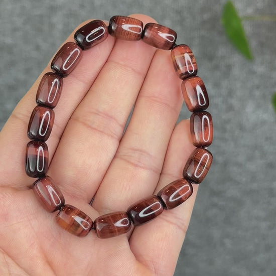 Natural Red Tiger Eye Barrel Bracelet Size 8 mm