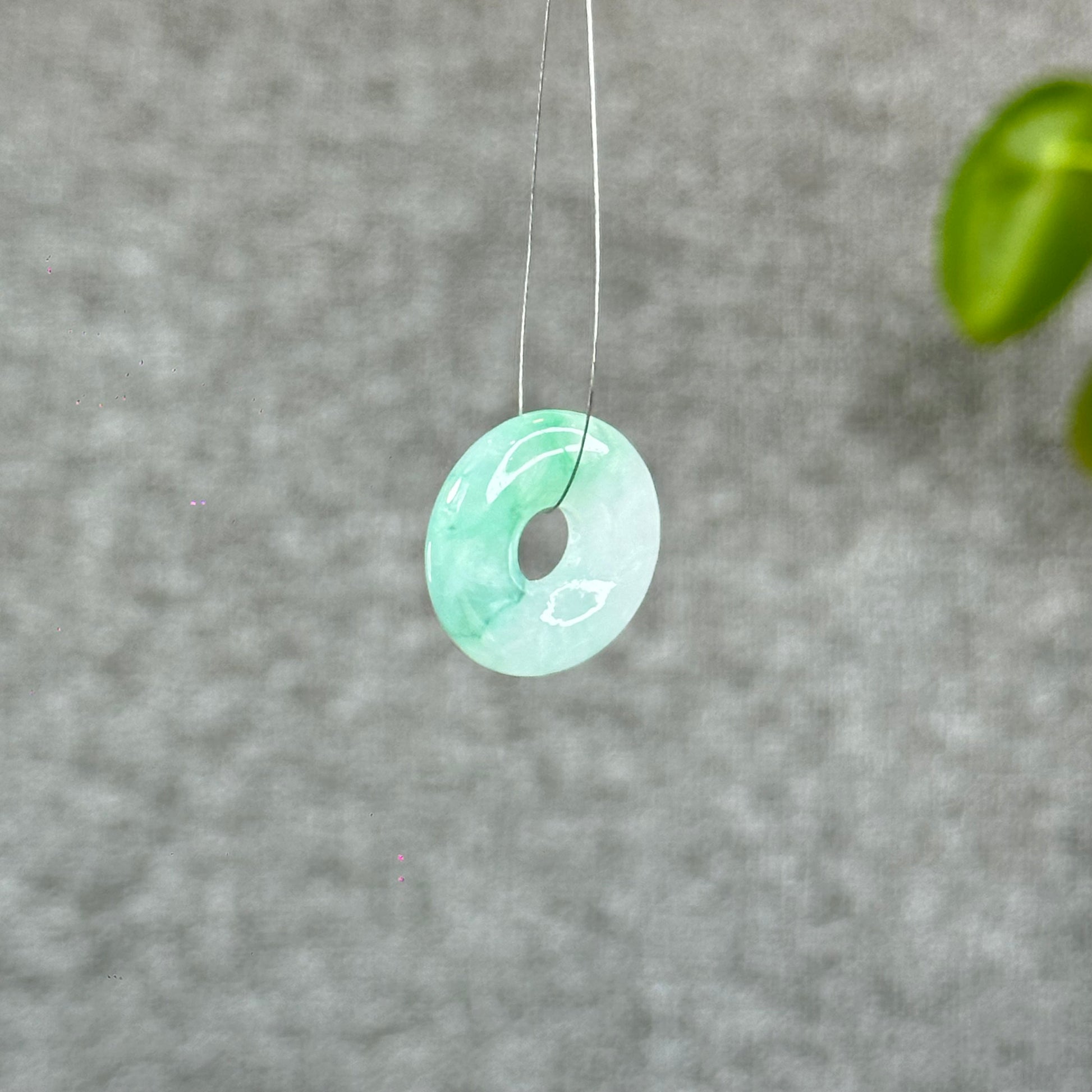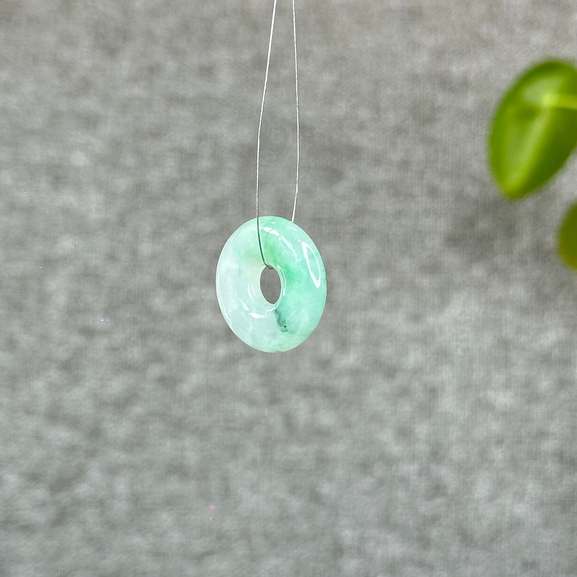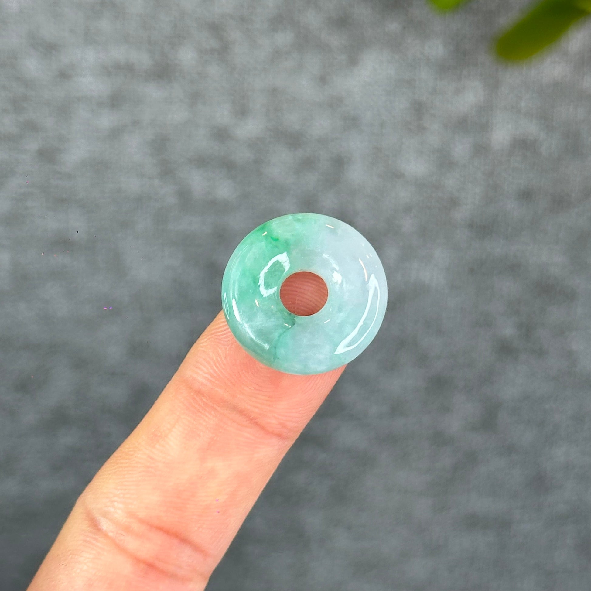 - Natural Semi-Translucent Apple Green Donut Jadeite Jade Charm
