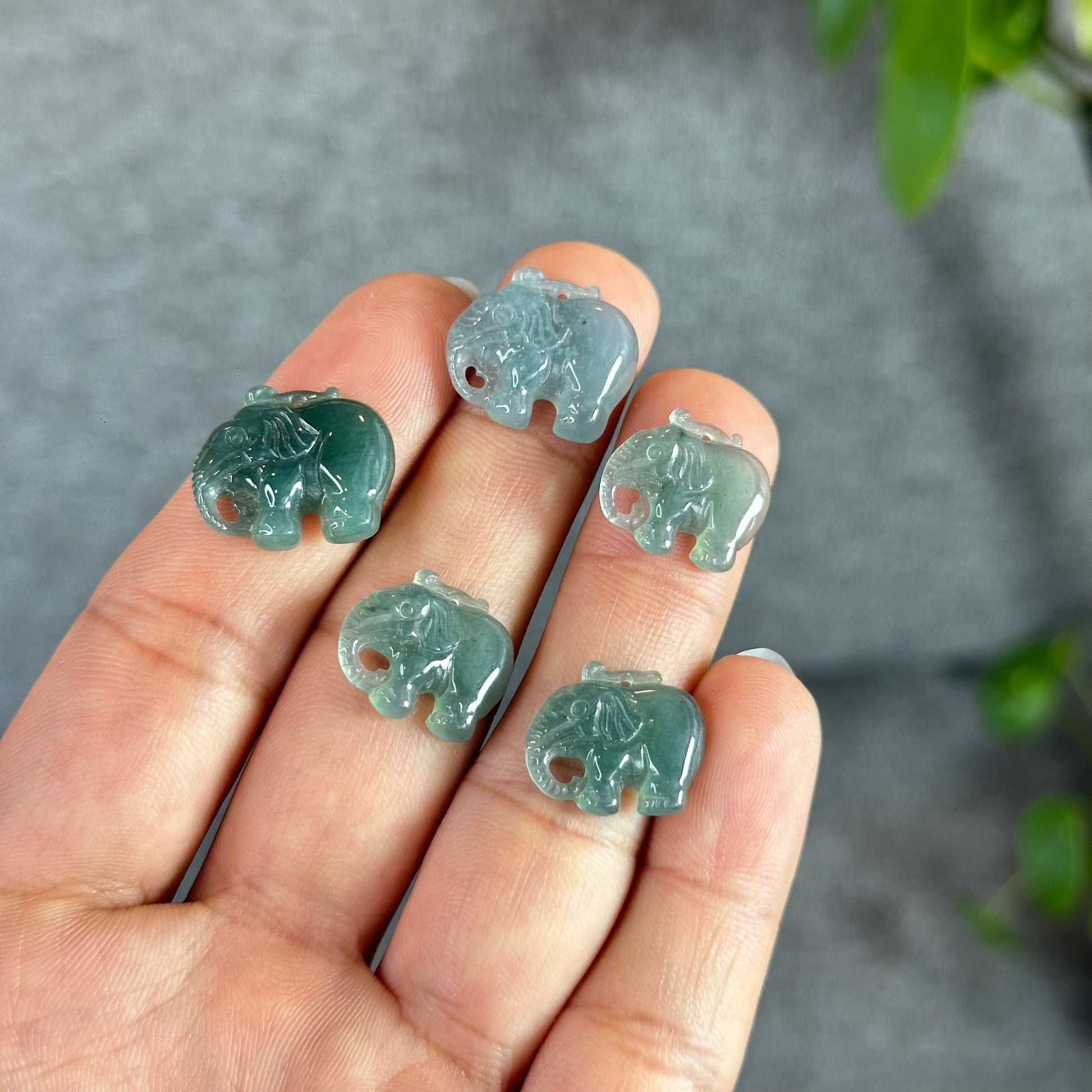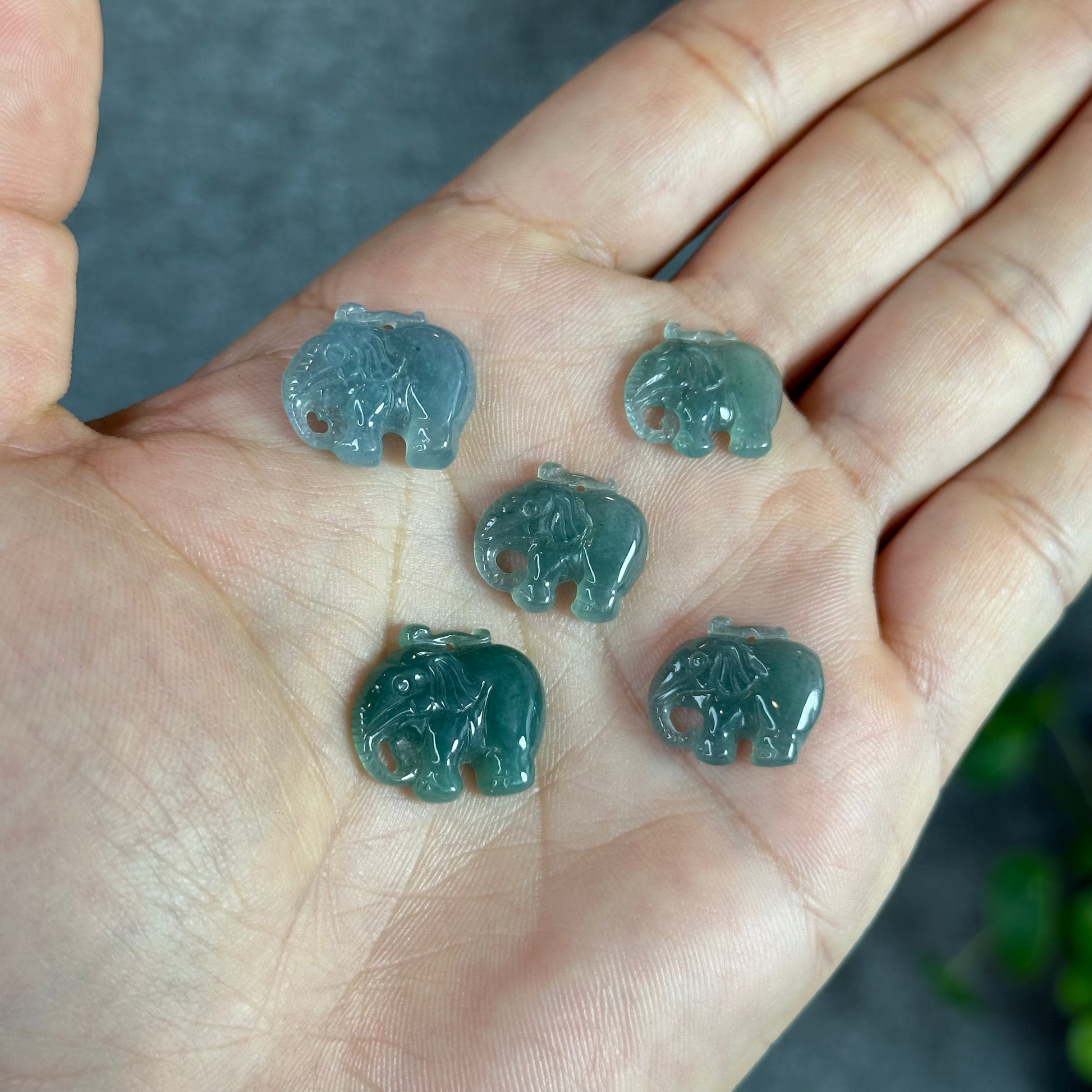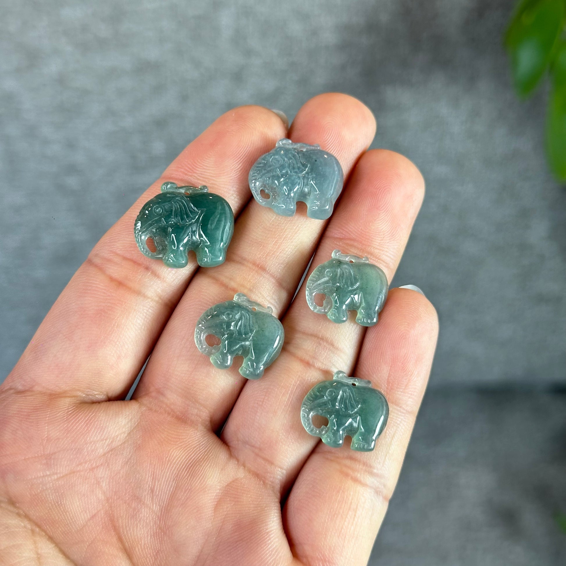 - Natural Blue Water Jadeite Jade Elephant Charm