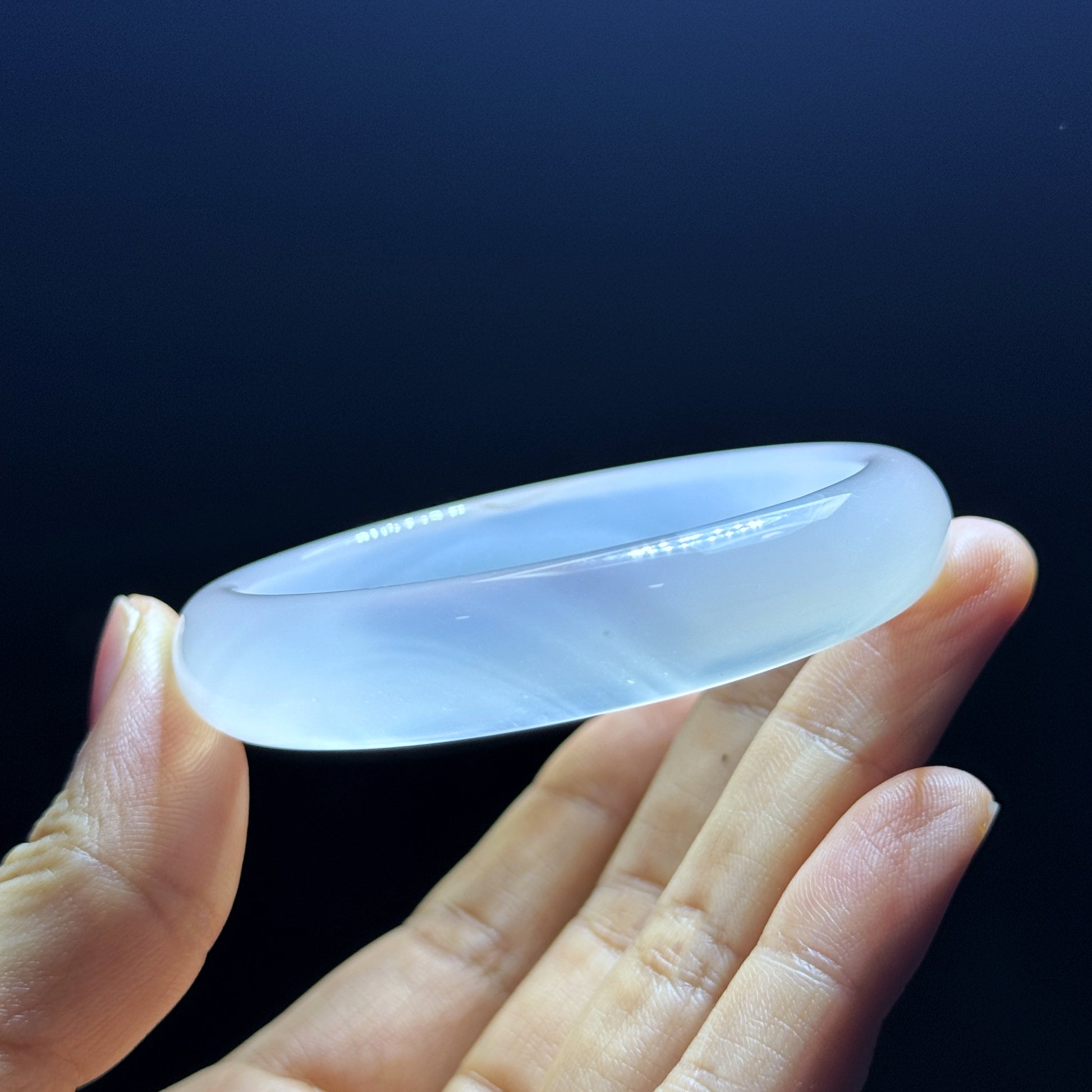 Natural White Agate Bangle Leaf Style Size 54 mm