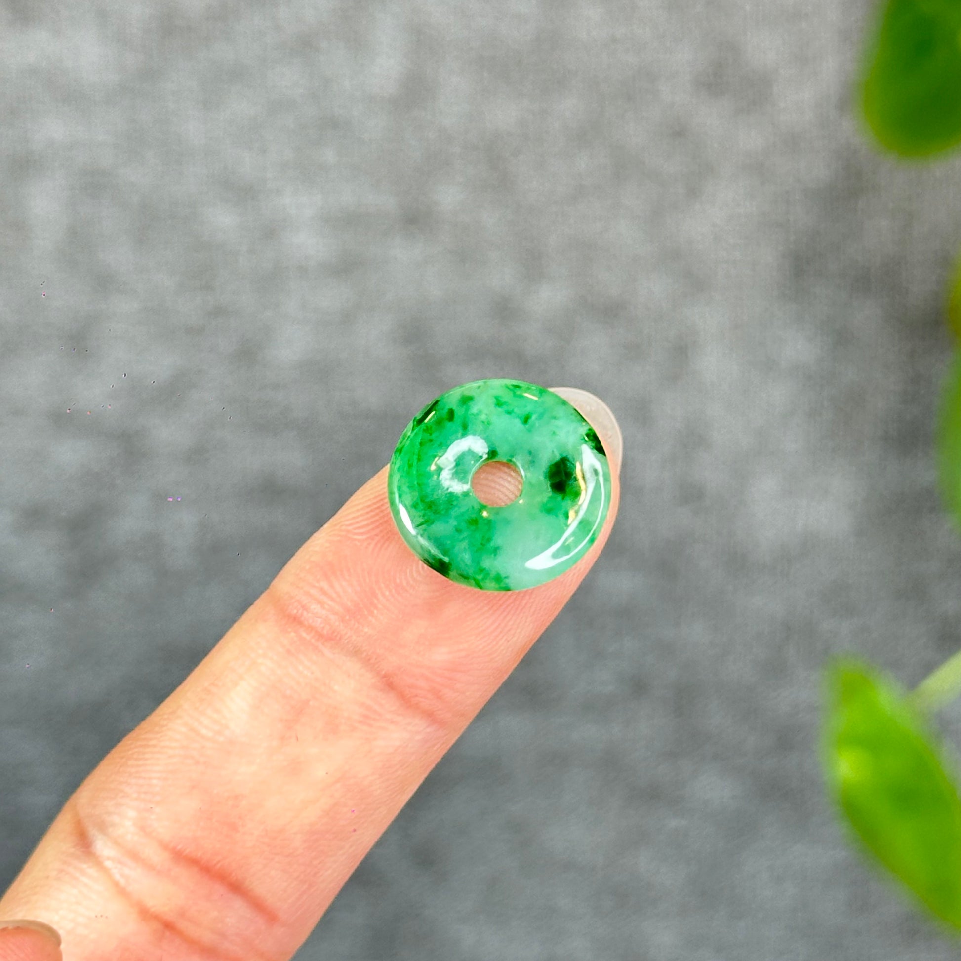 - Natural Dong Dieu Donut Bright Apple Green Semi-Translucent Jadeite Jade Charm 15-16 mm