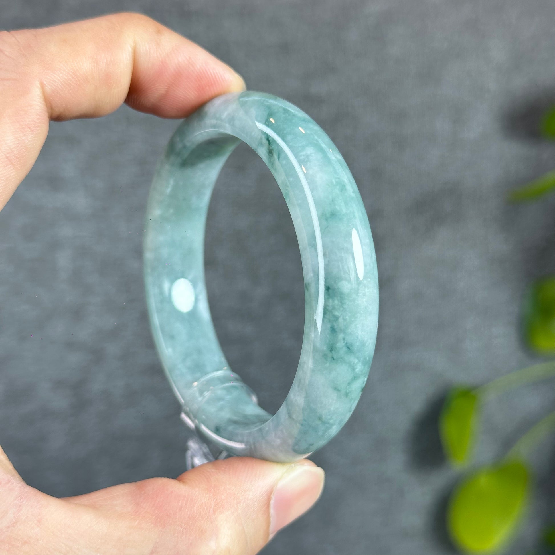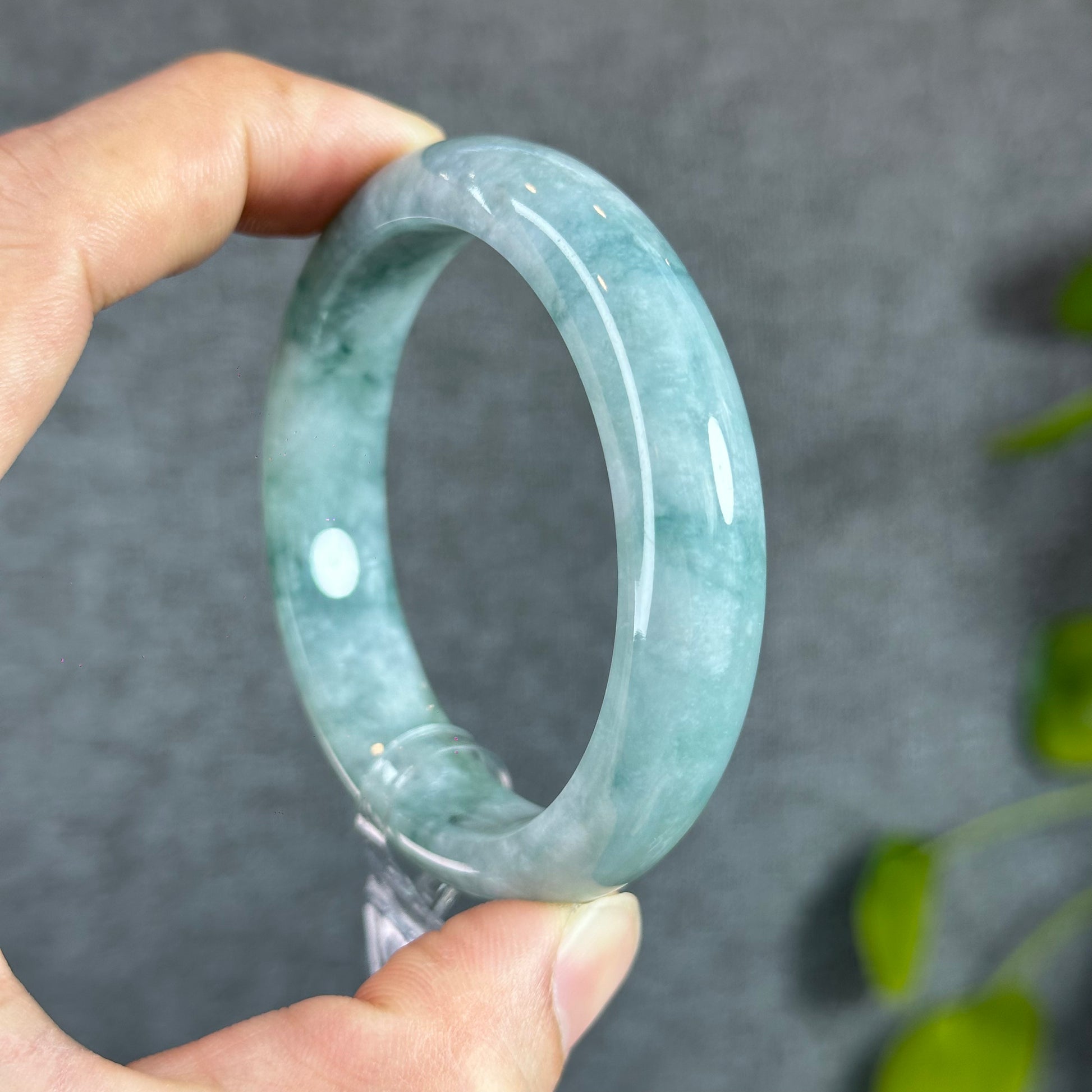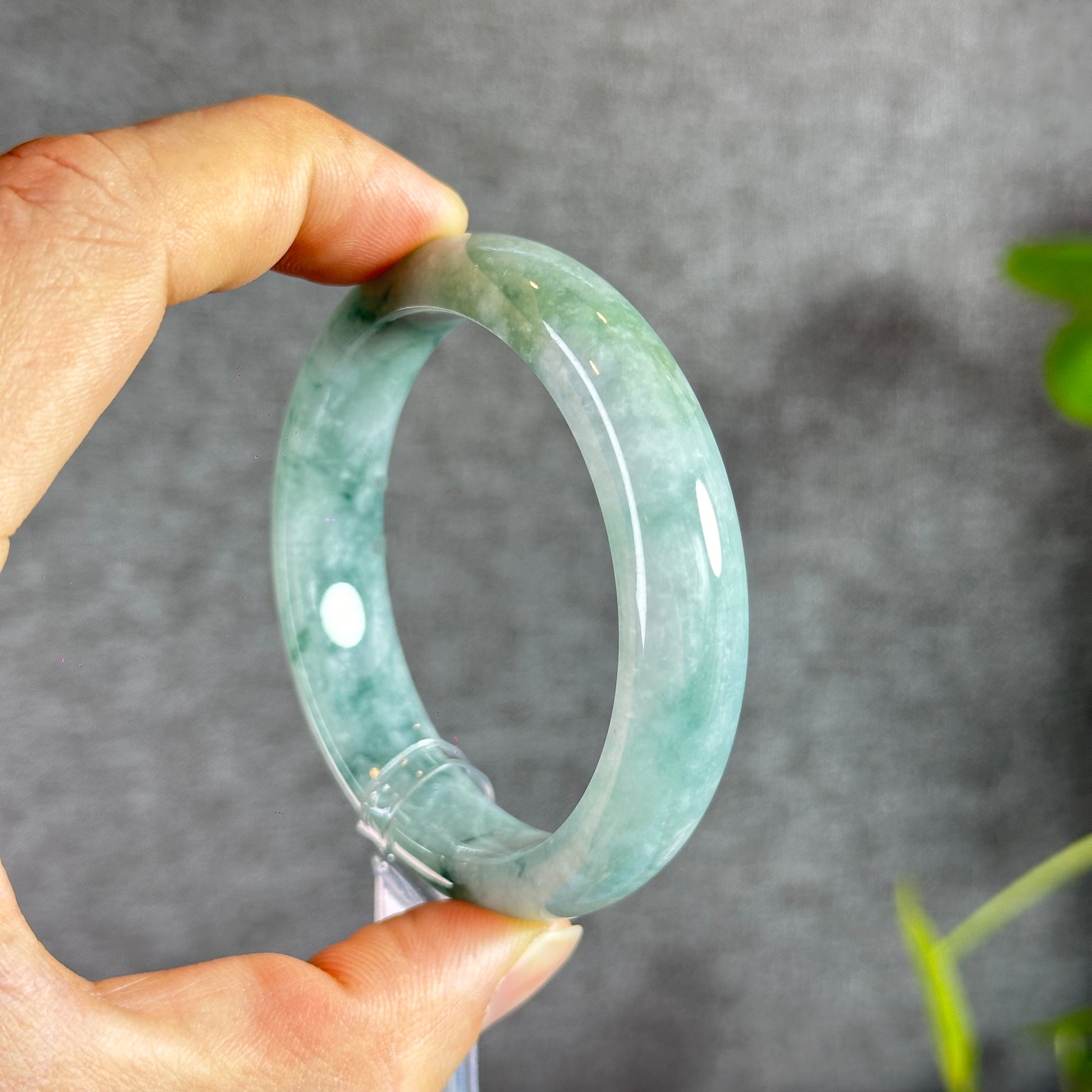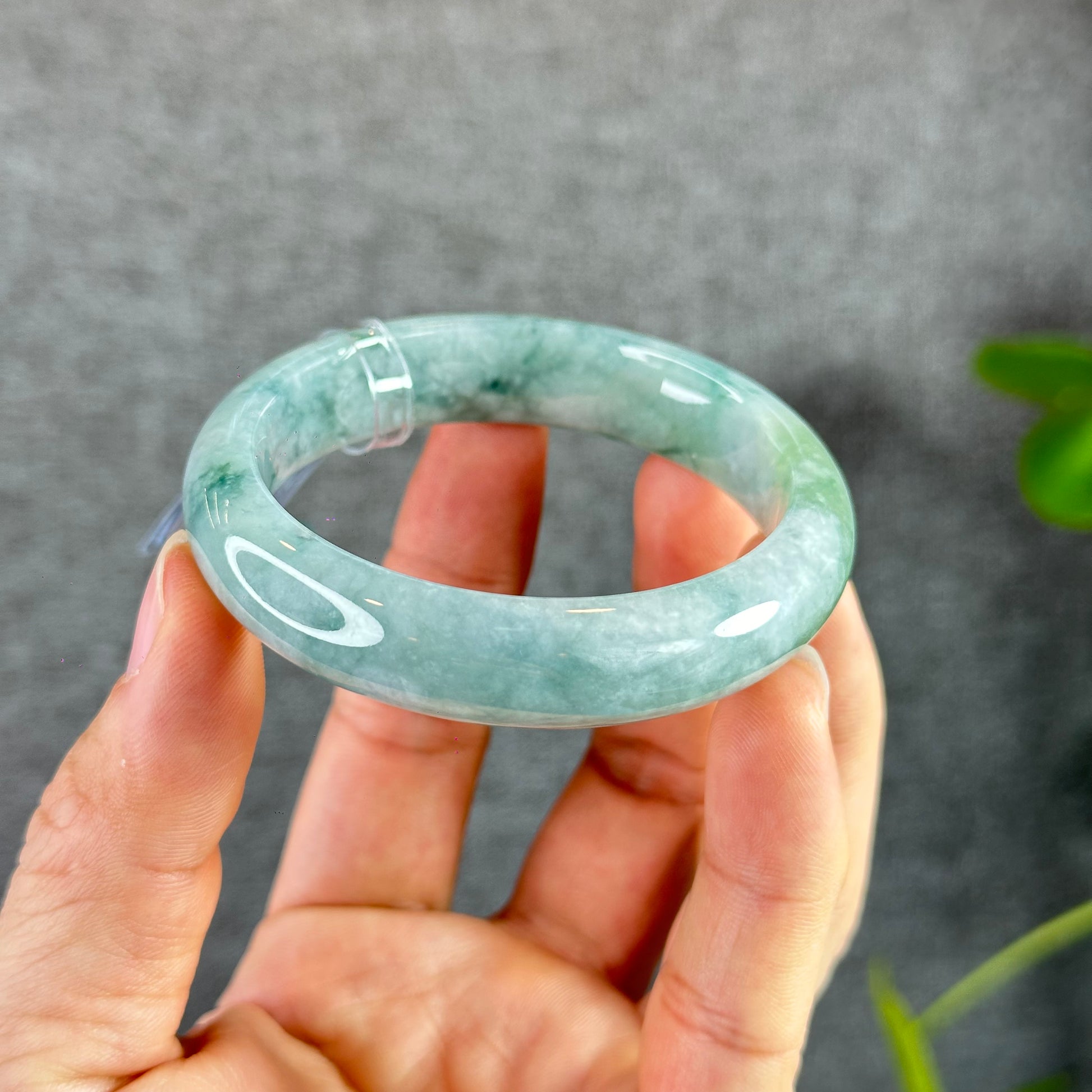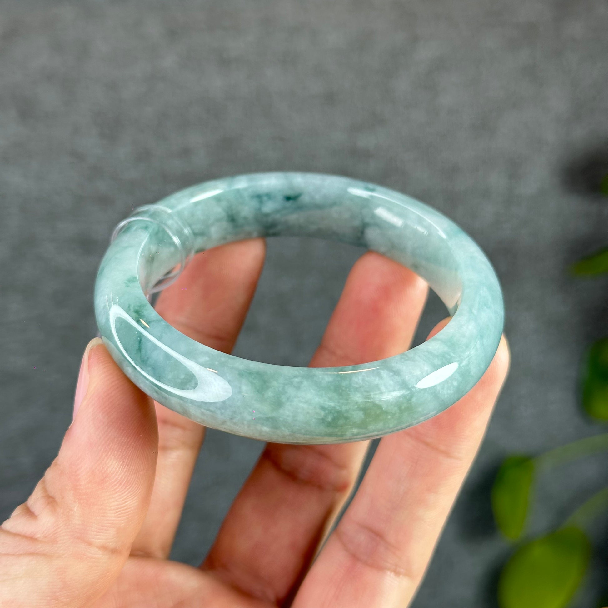 Floral Moss Green Natural Jadeite Jade Bangle Leaf Style Size 53 mm