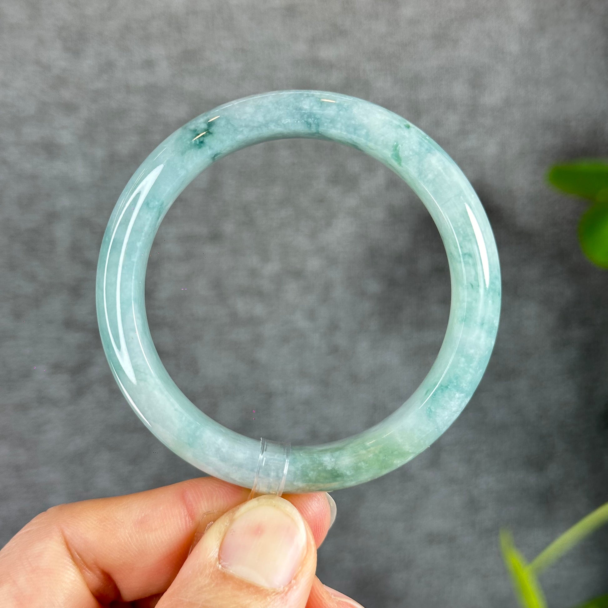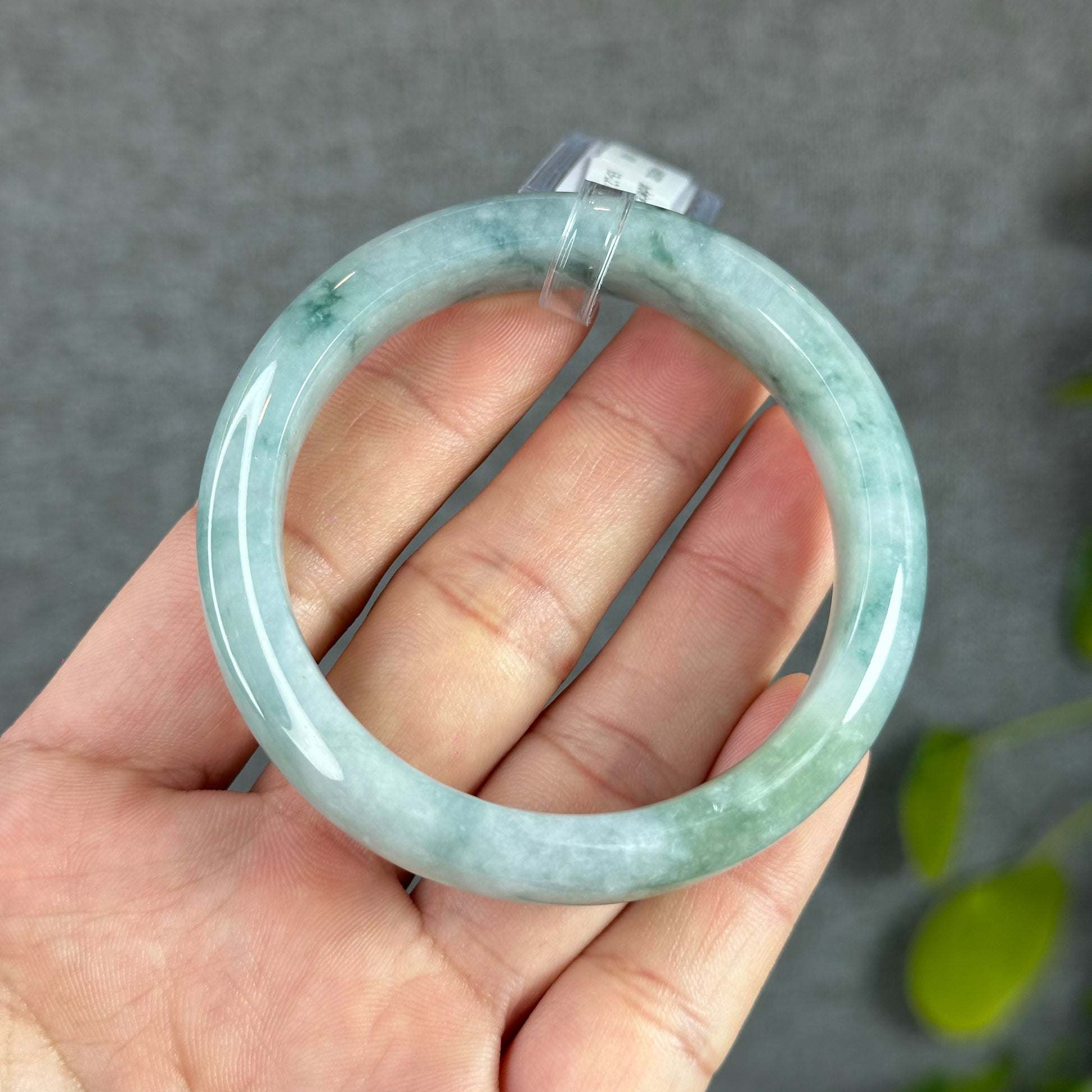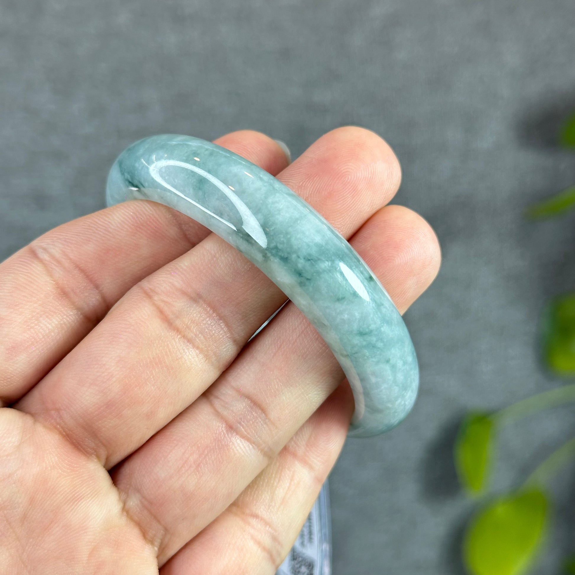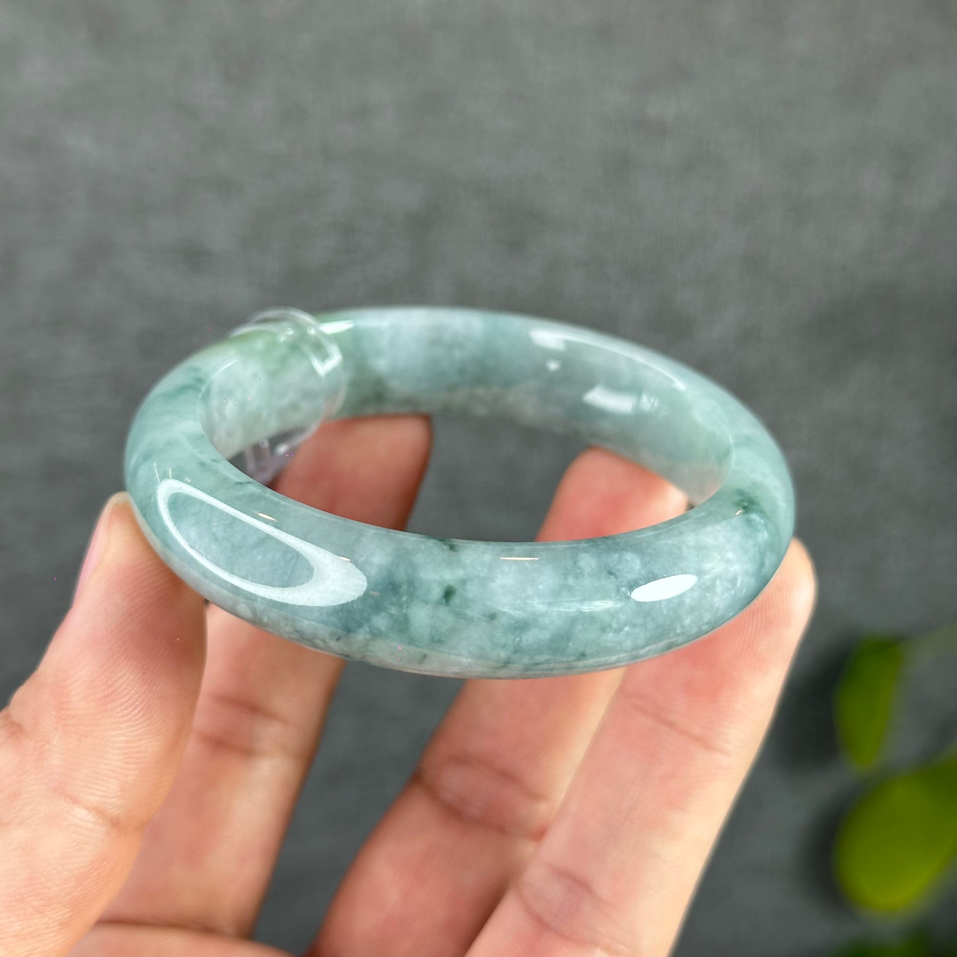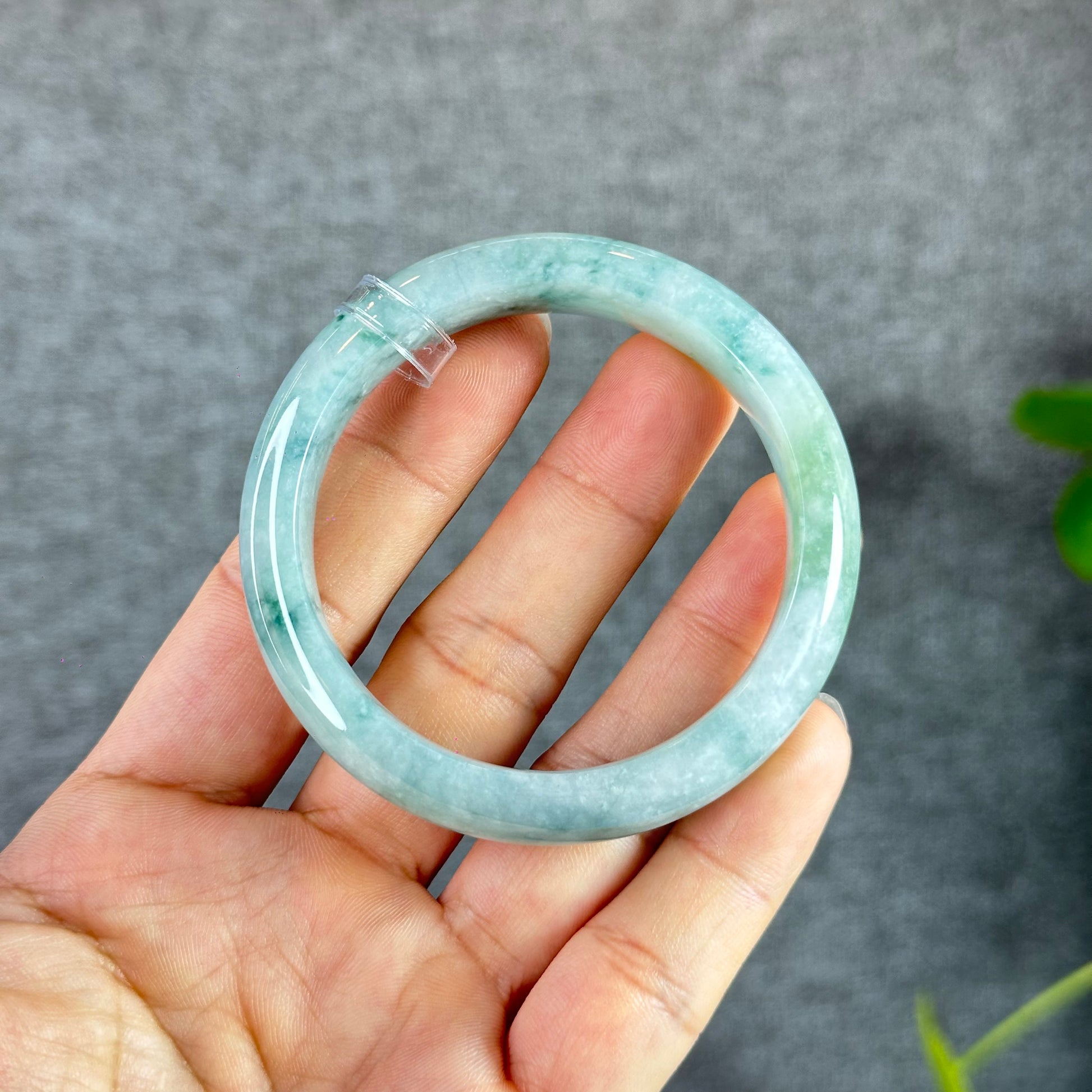 Floral Moss Green Natural Jadeite Jade Bangle Leaf Style Size 53 mm