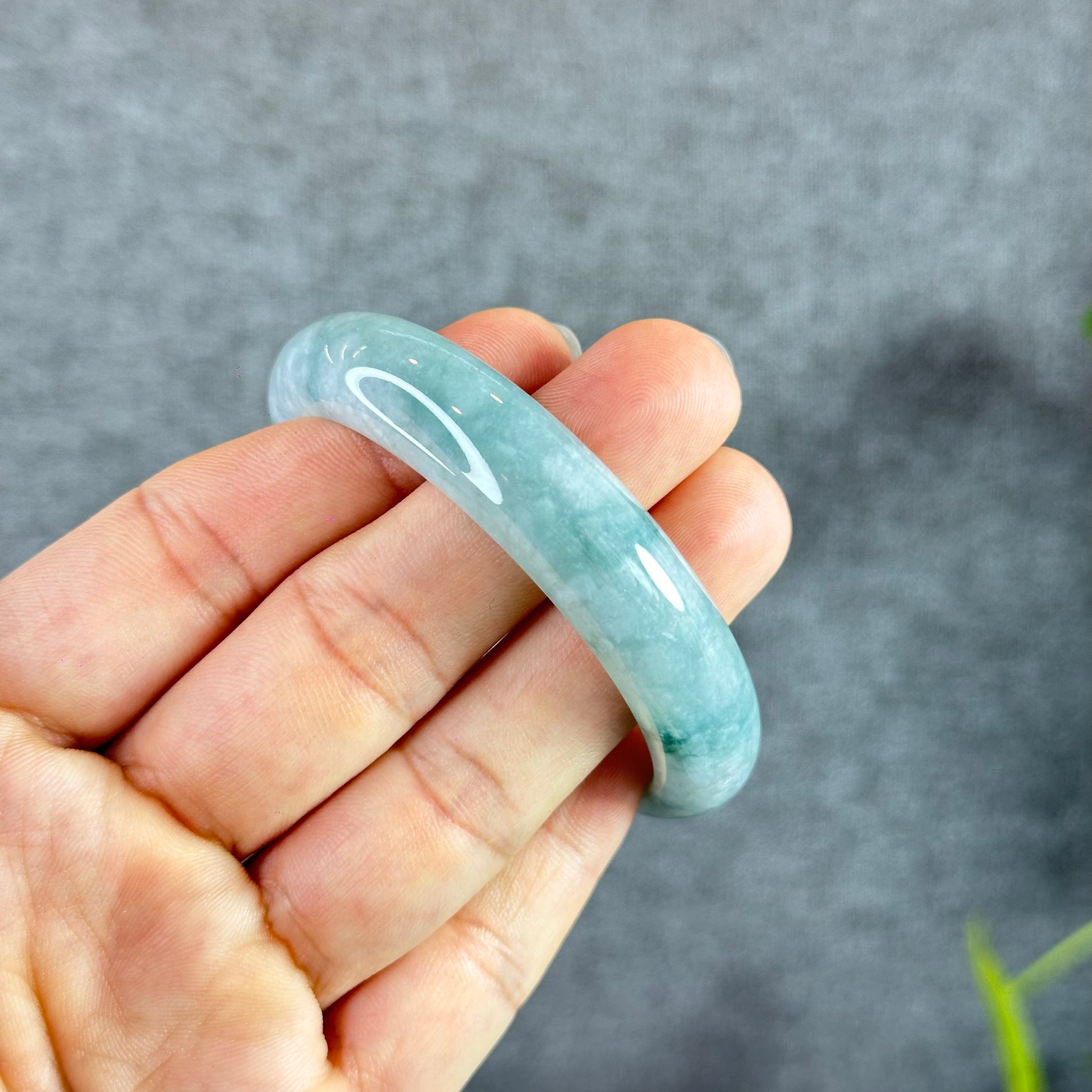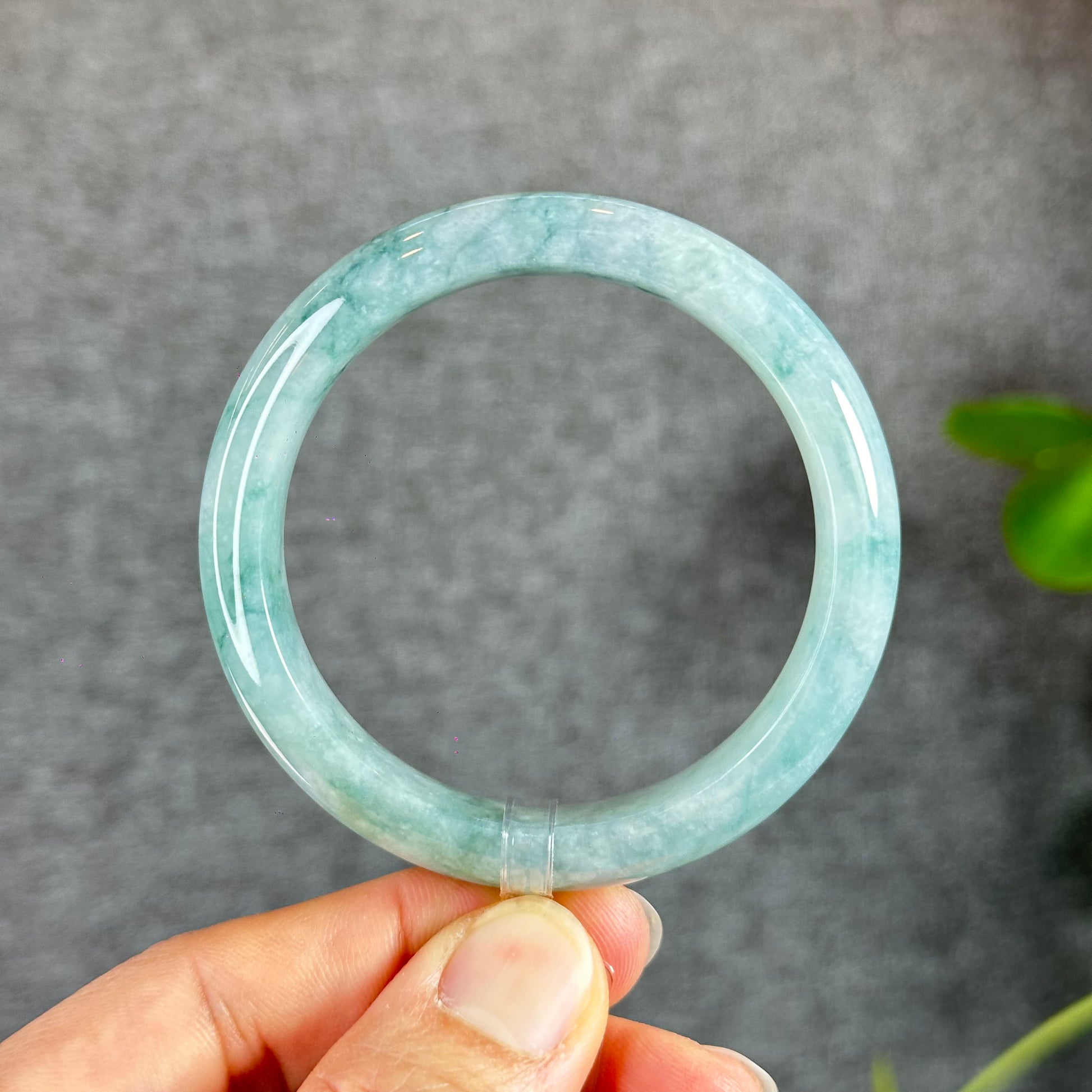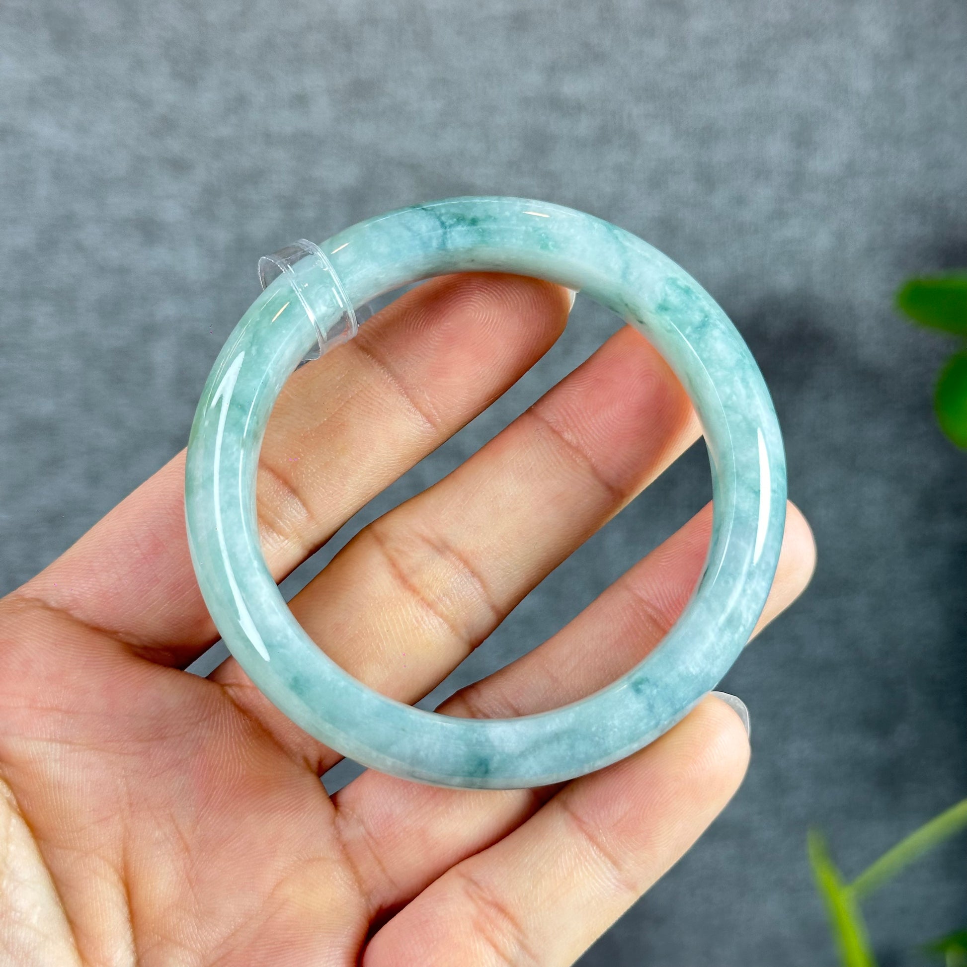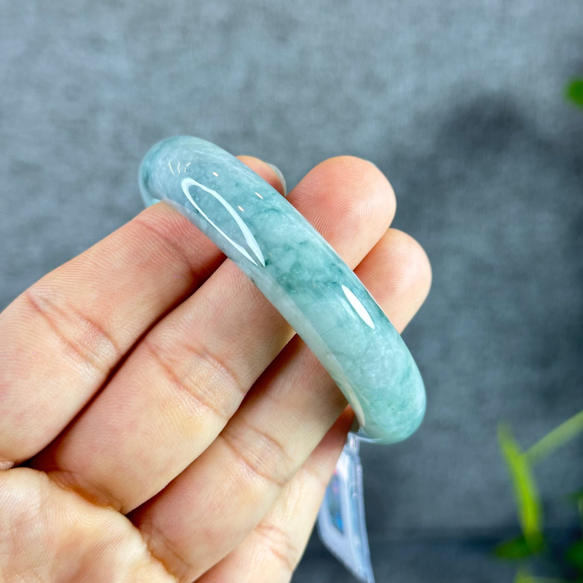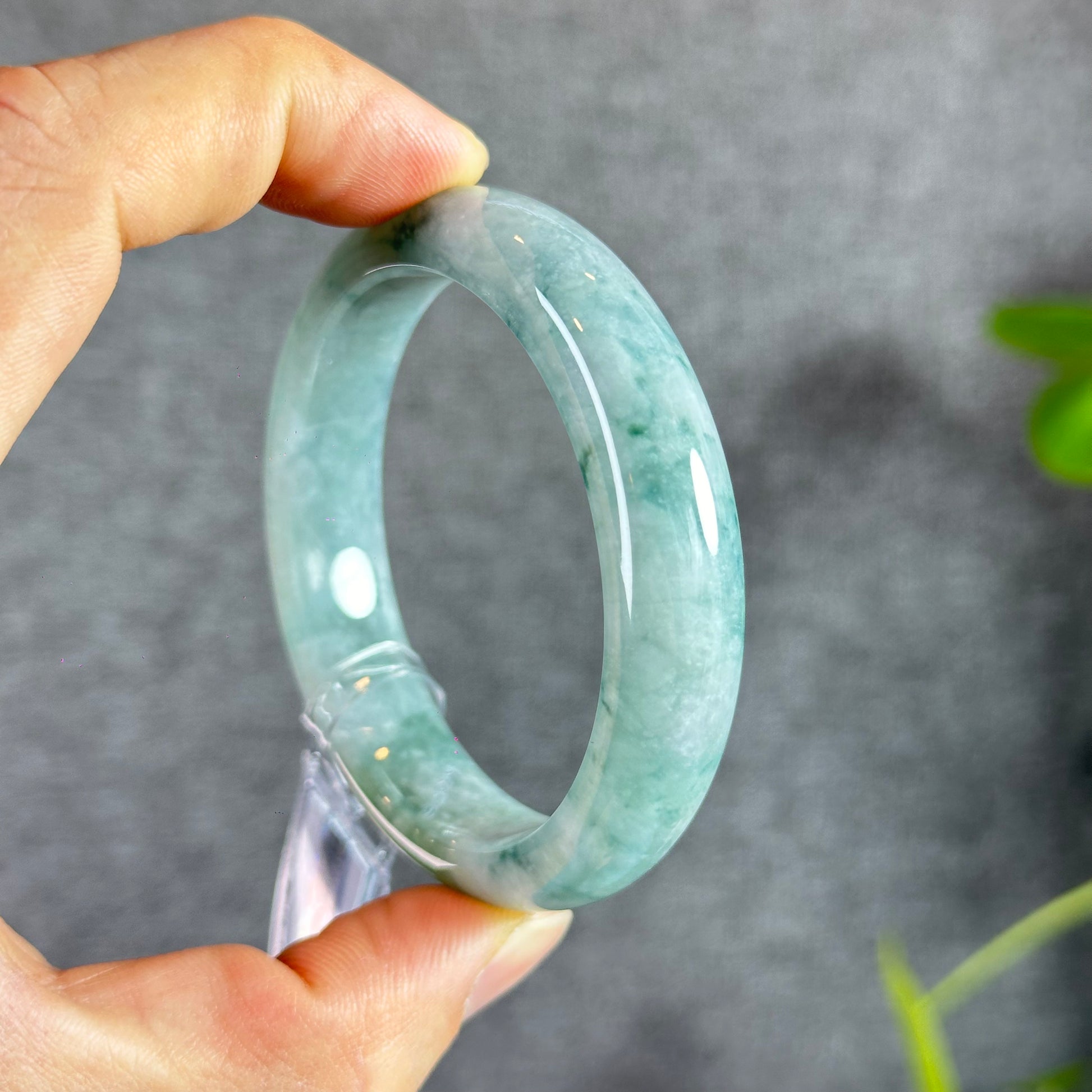 Floral Moss Green Natural Jadeite Jade Bangle Leaf Style Size 53 mm