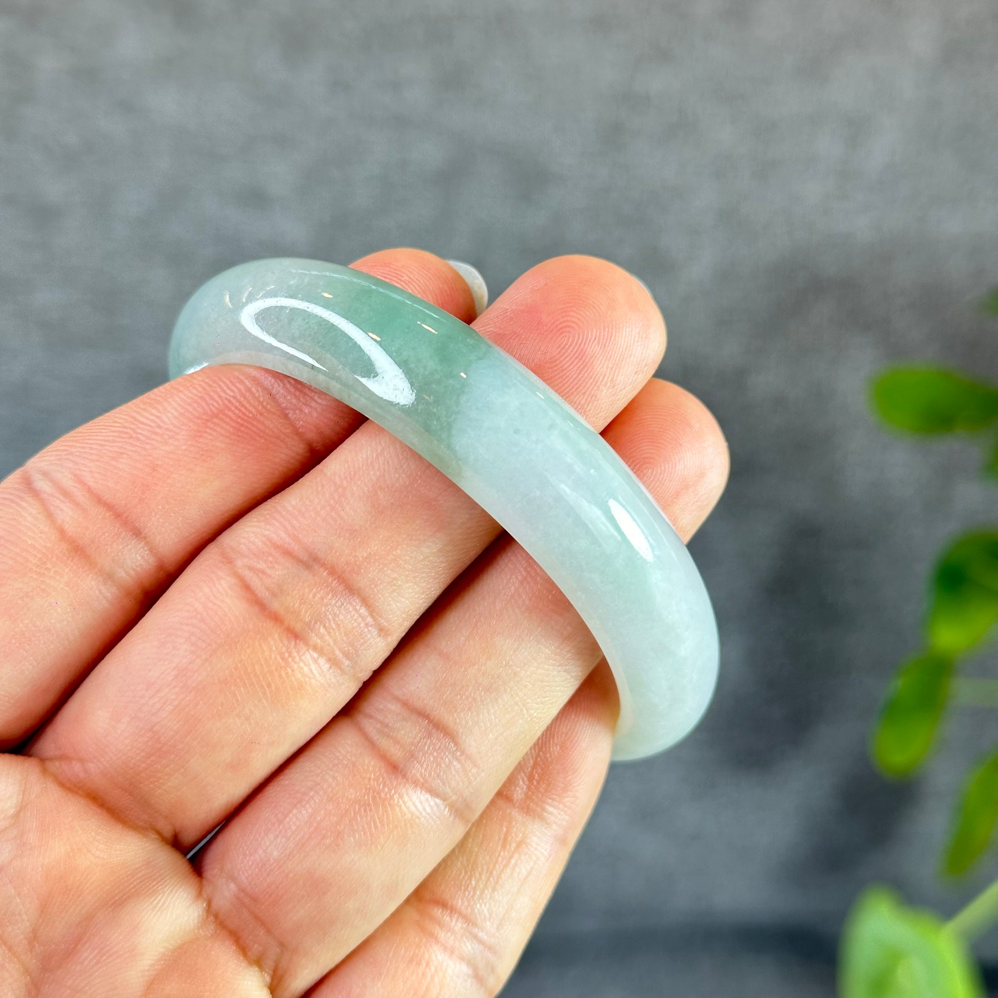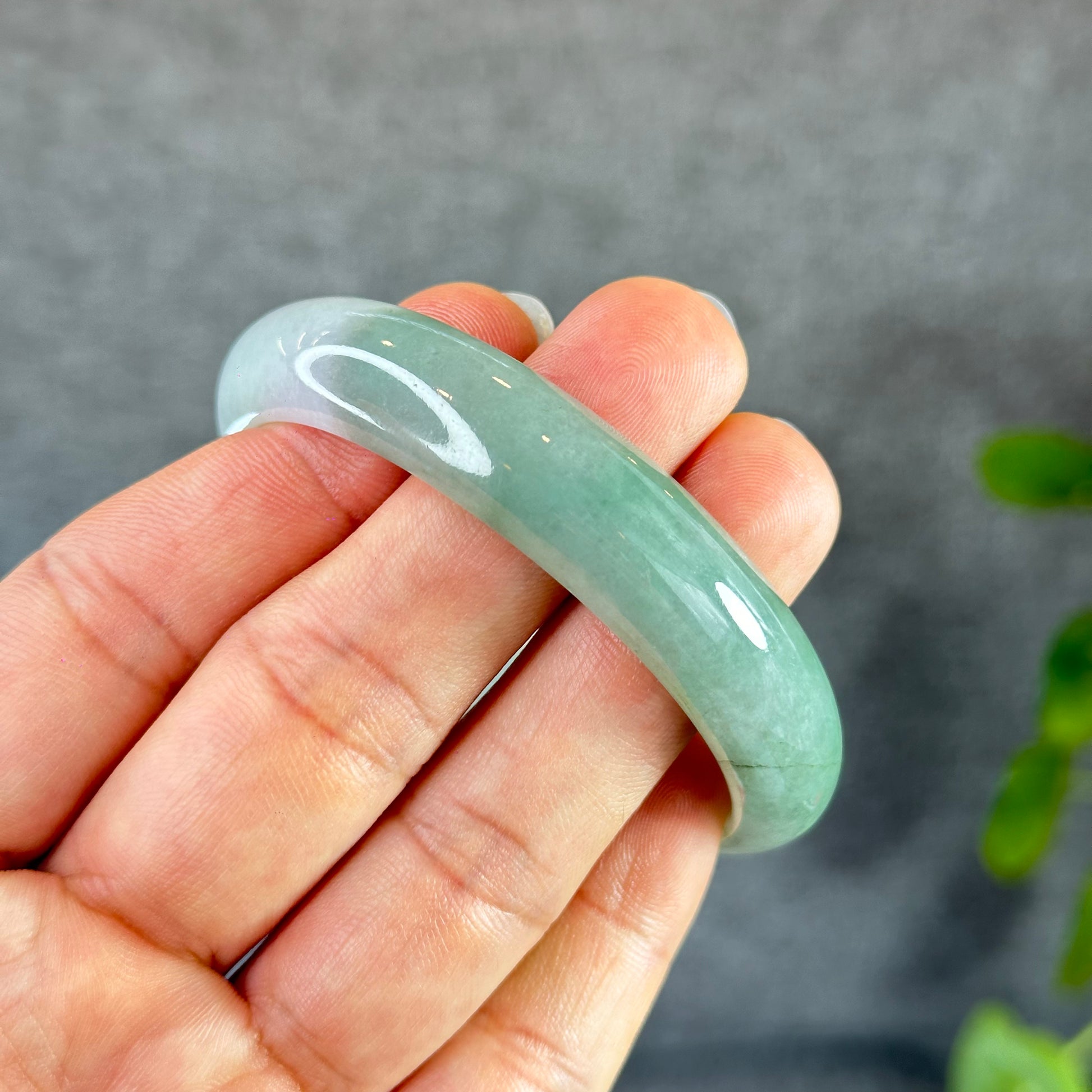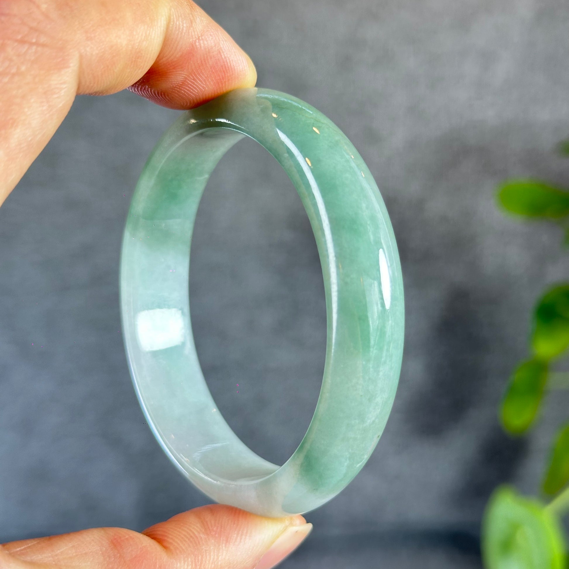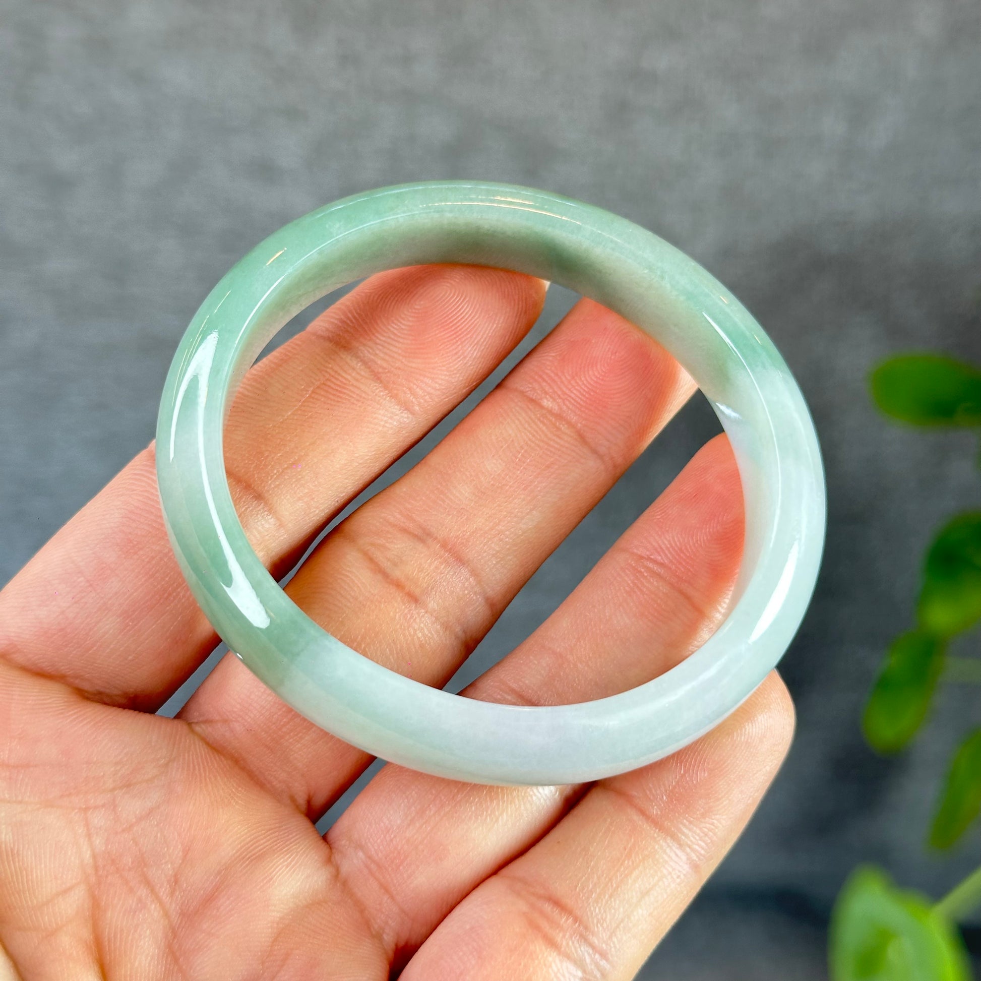 Moss Green Ivory White Natural Jadeite Jade Bangle Oval Leaf Style Size 55 mm