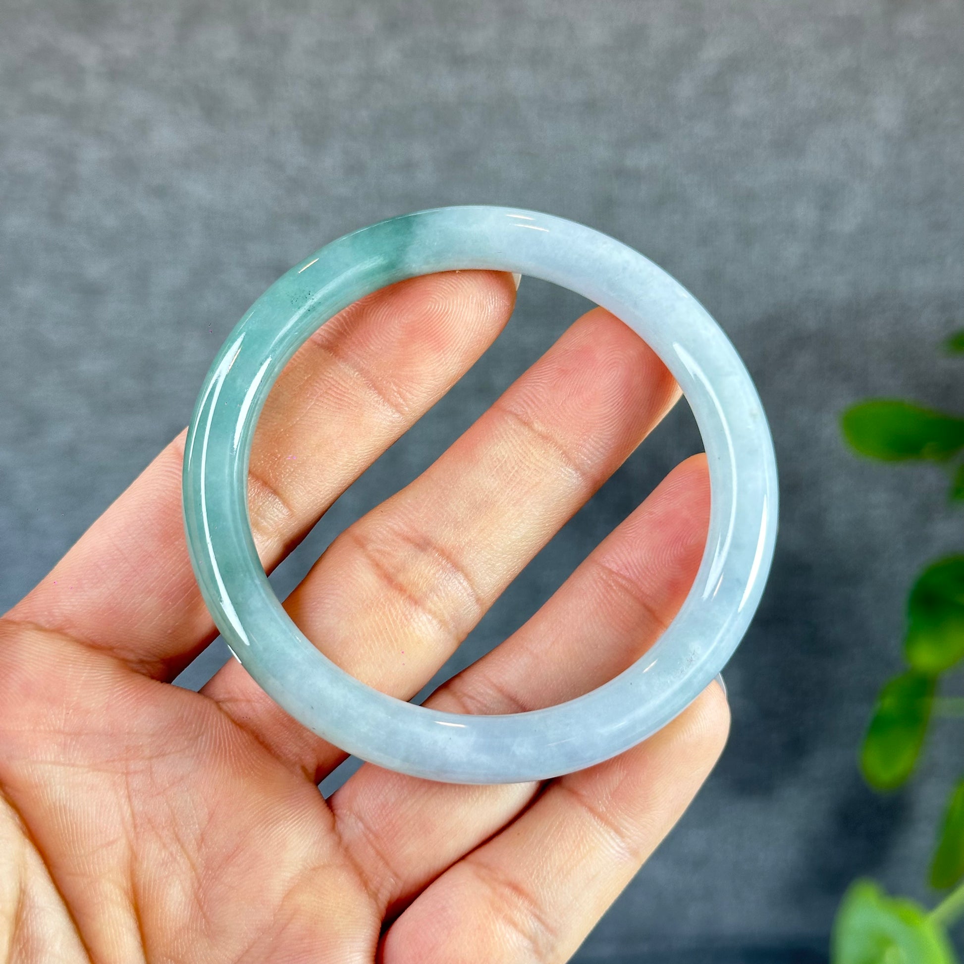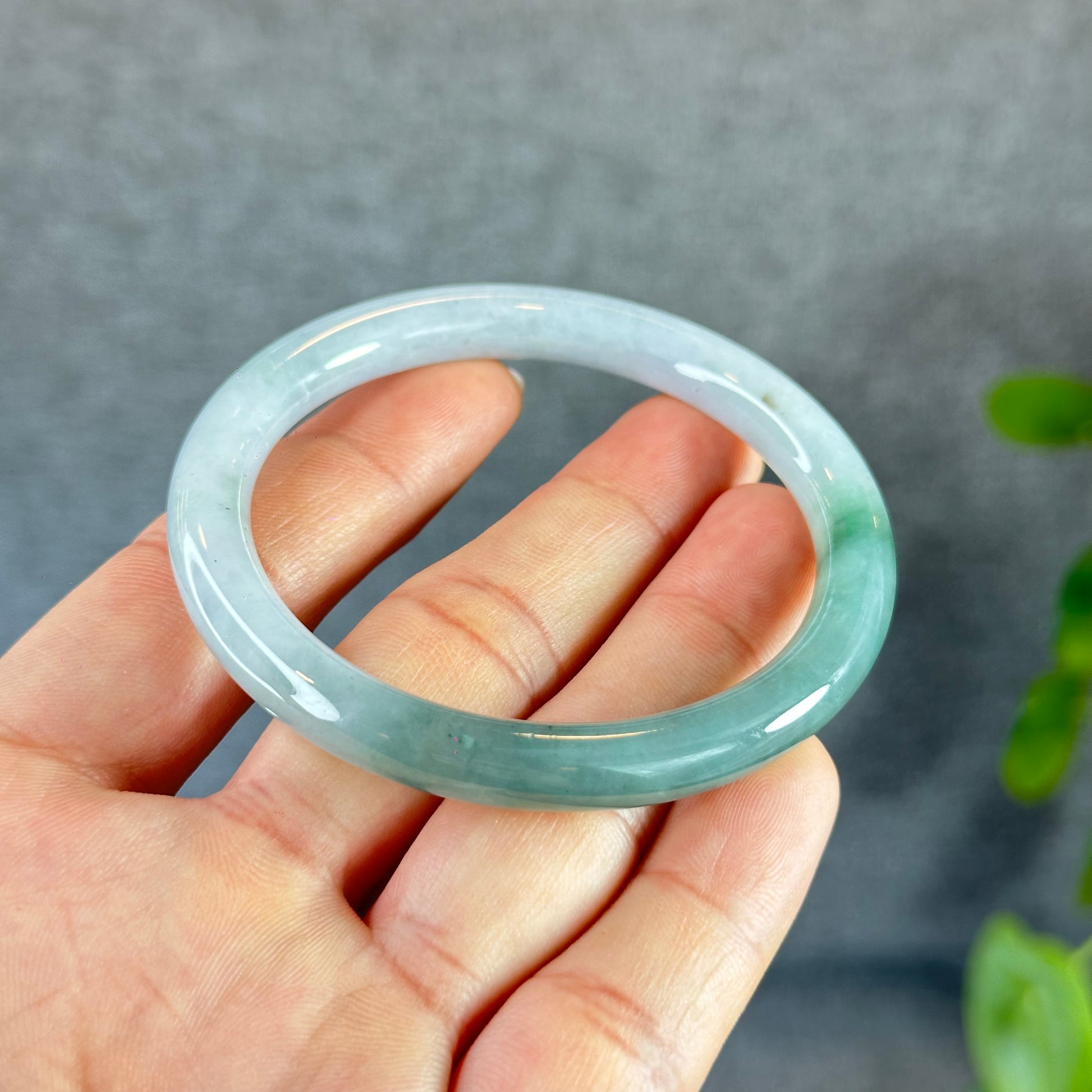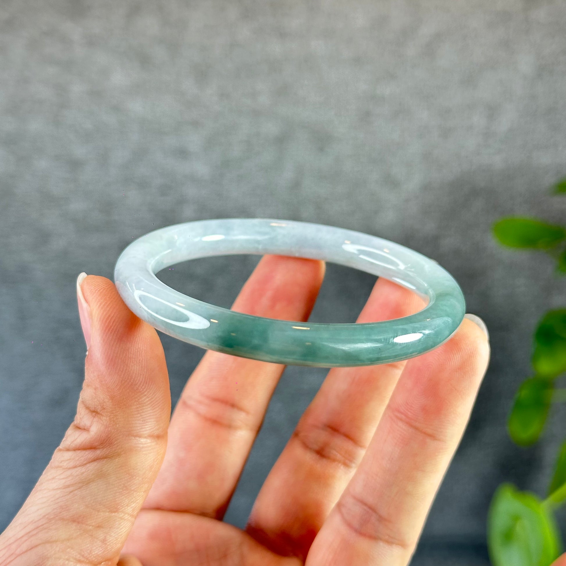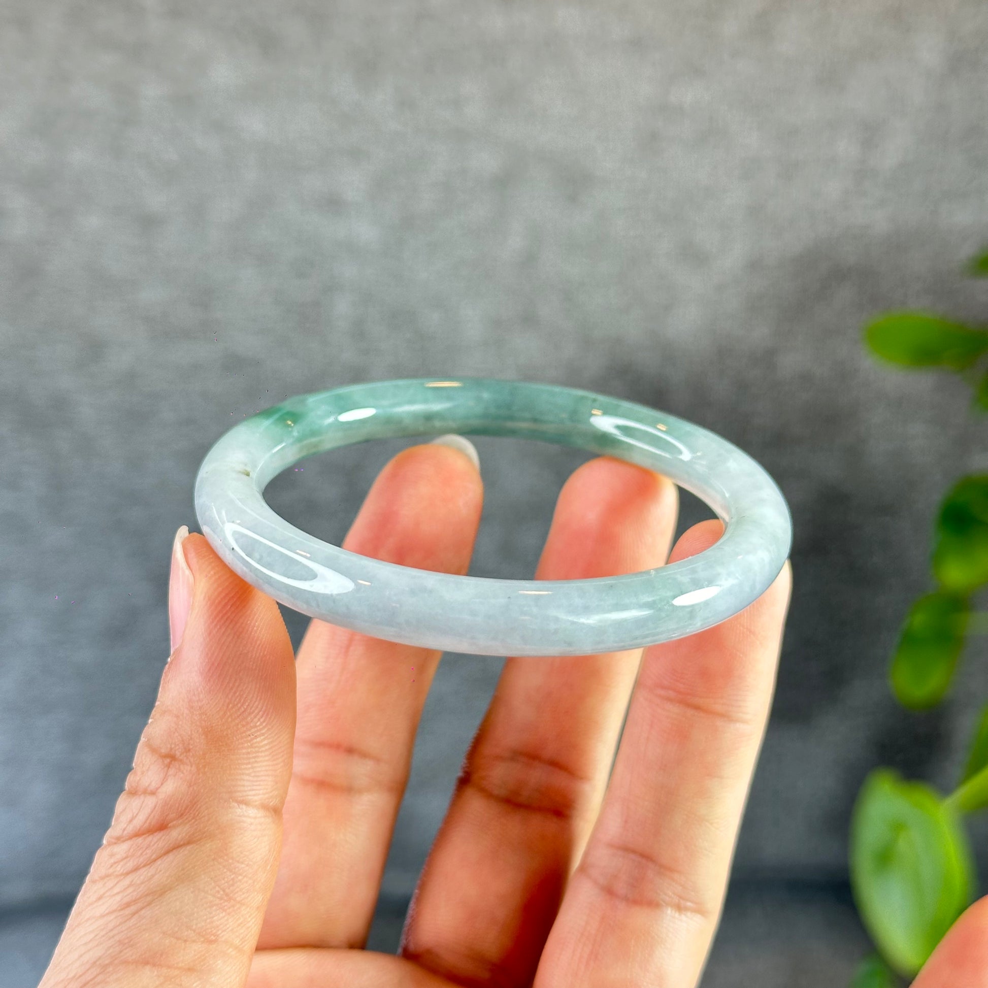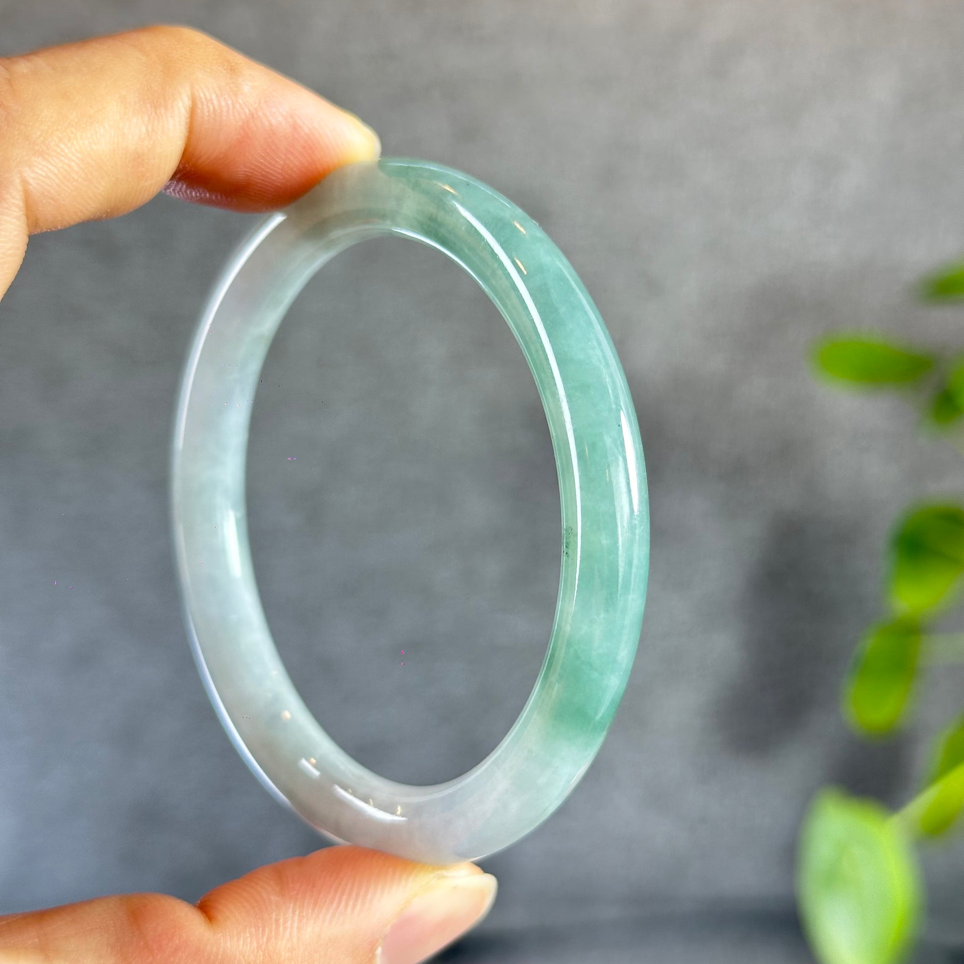 Moss Green Ivory White Natural Jadeite Jade Bangle Chopstick Style Size 55 mm