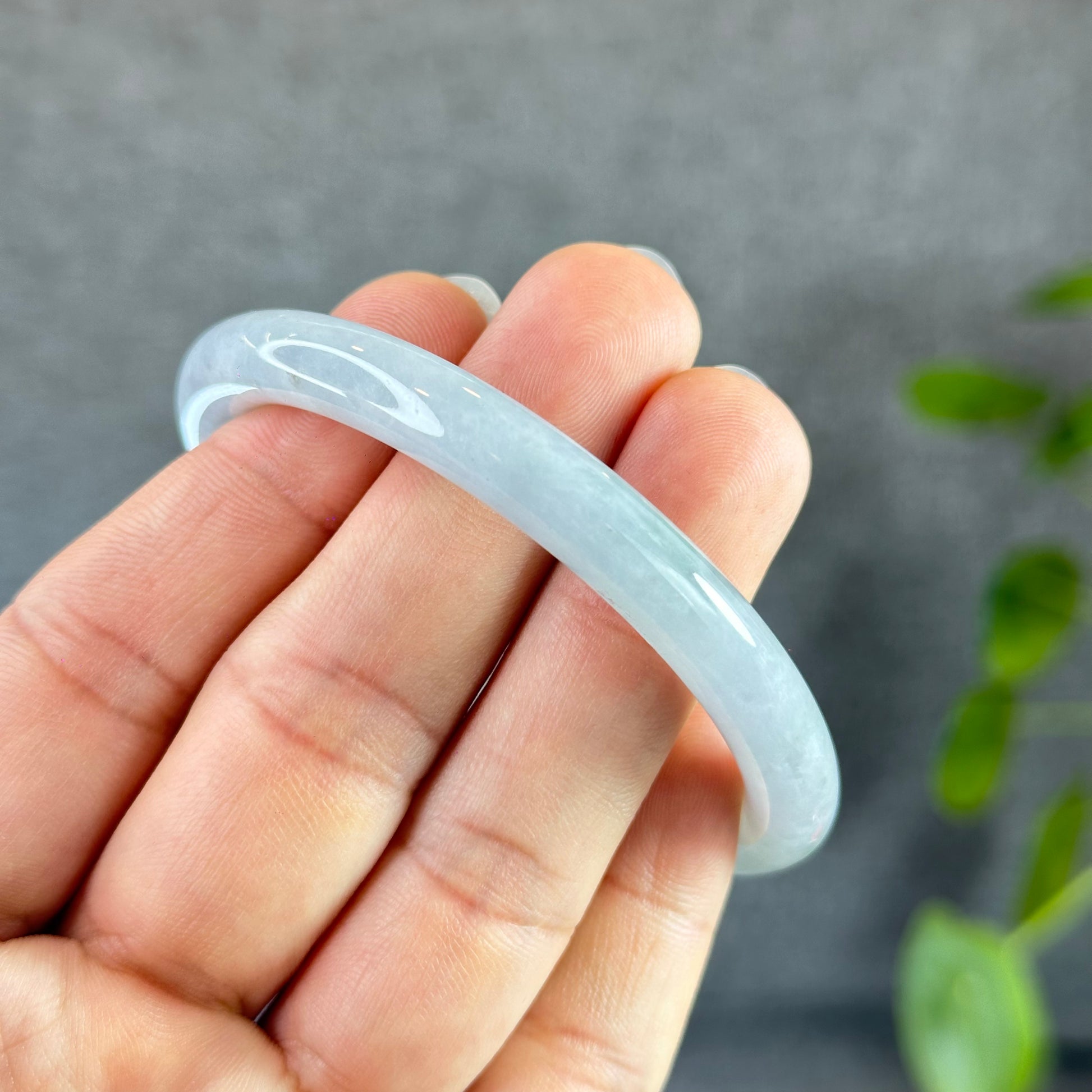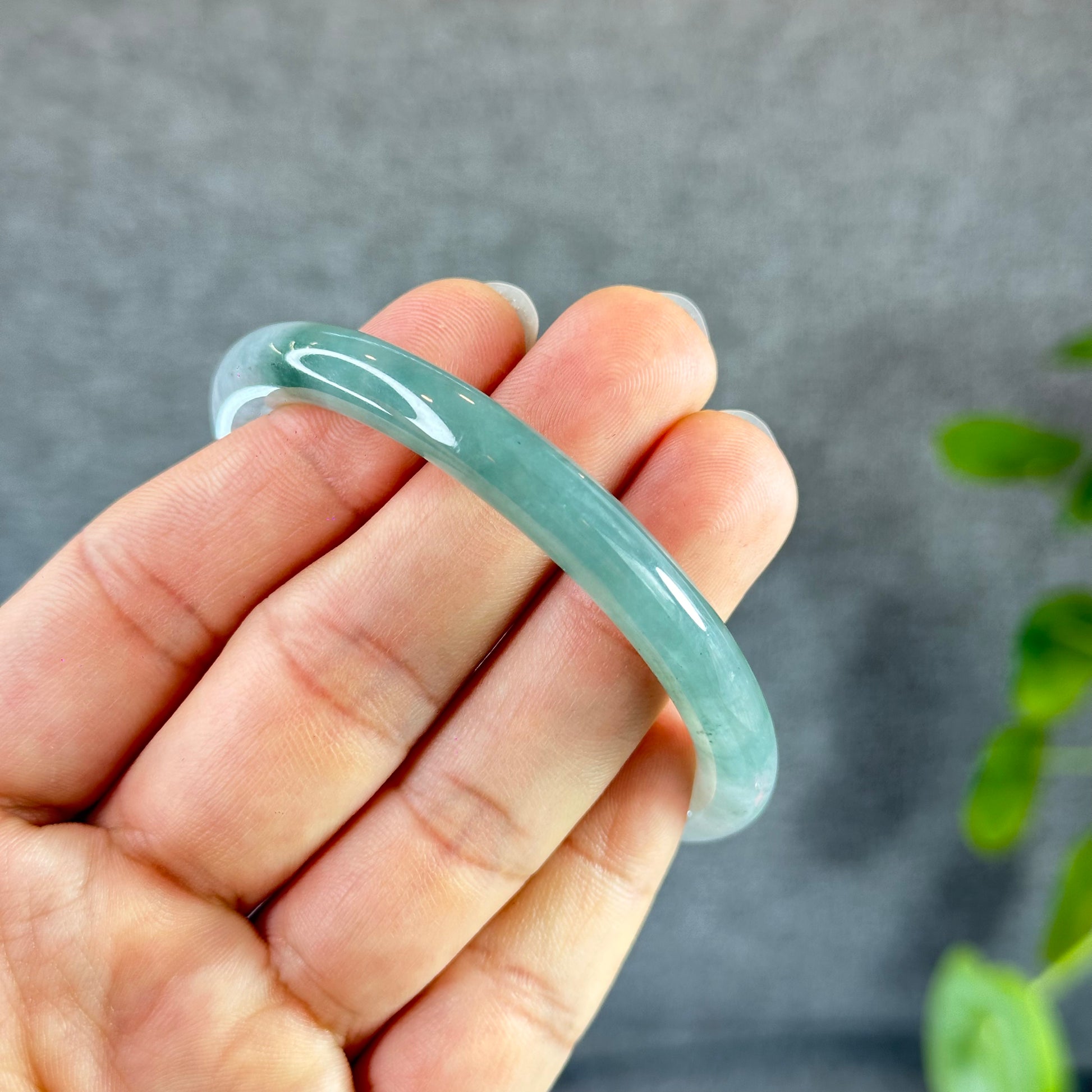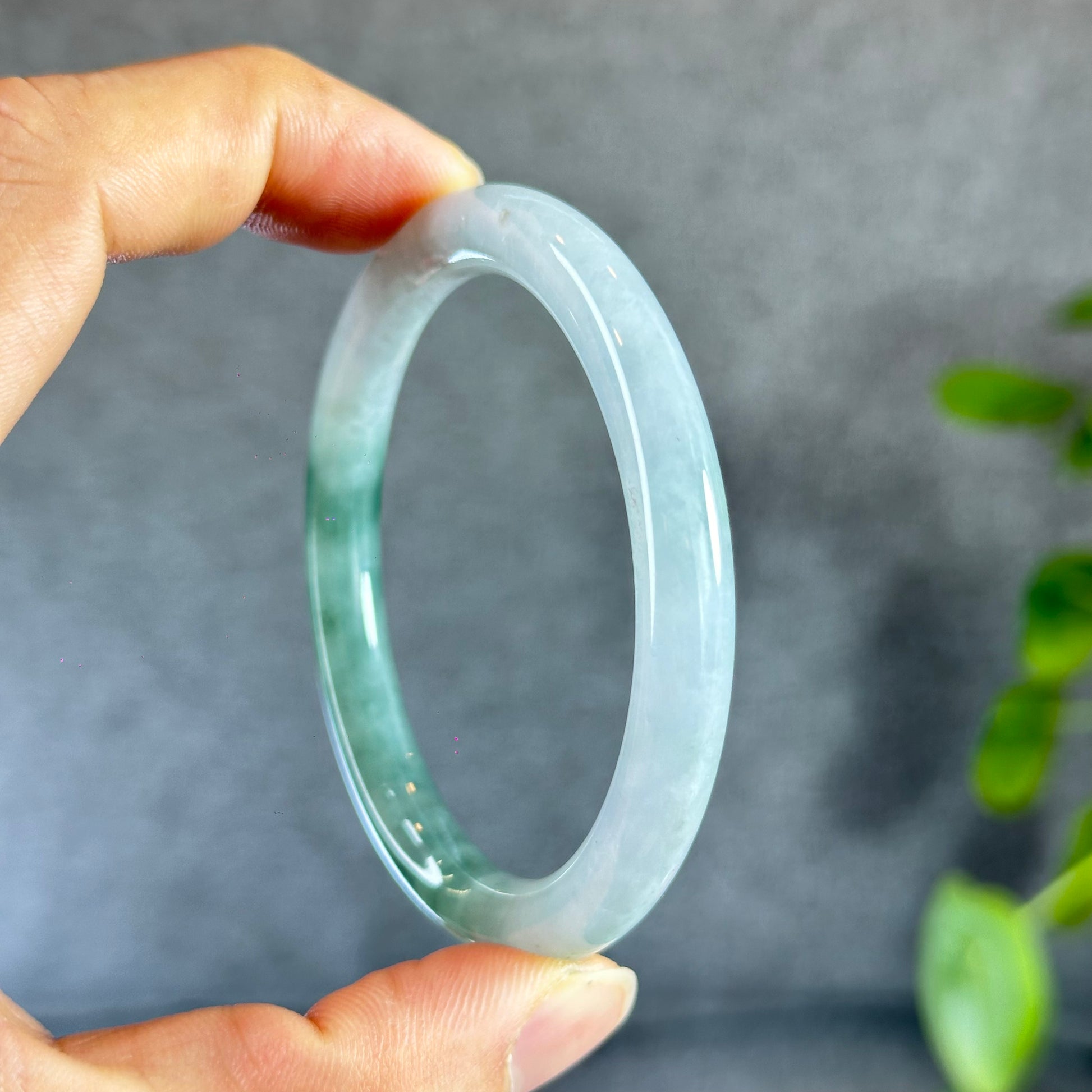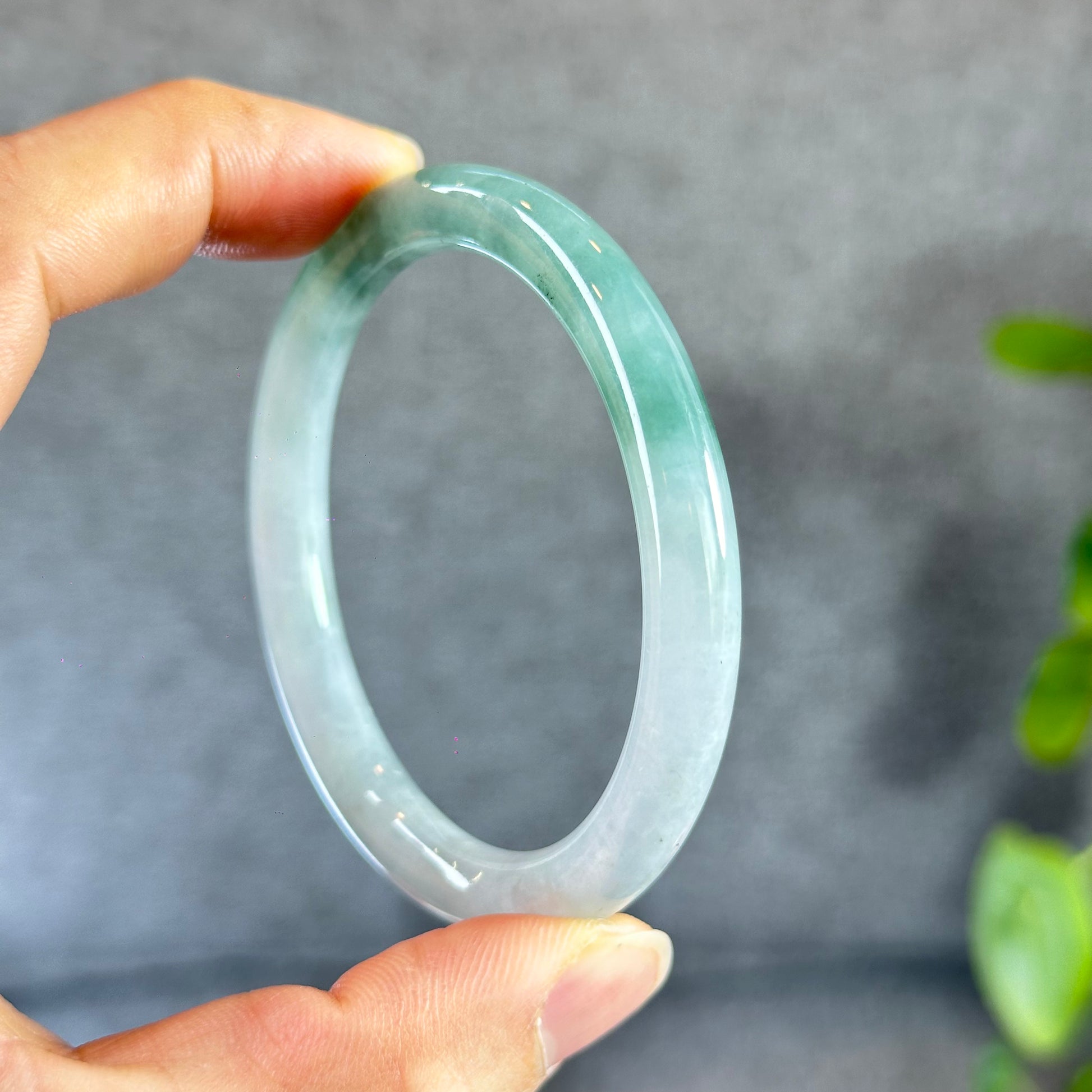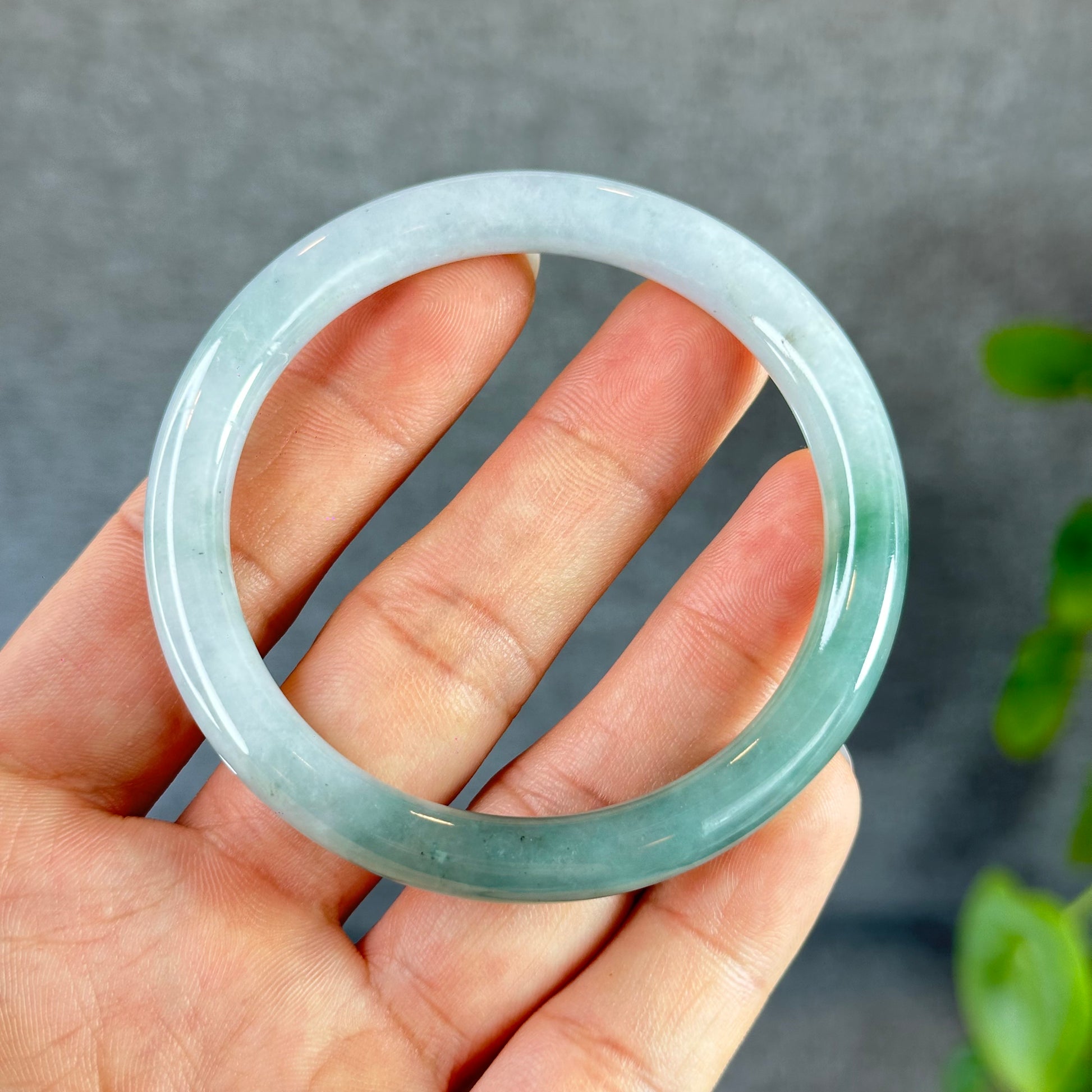 Moss Green Ivory White Natural Jadeite Jade Bangle Chopstick Style Size 55 mm
