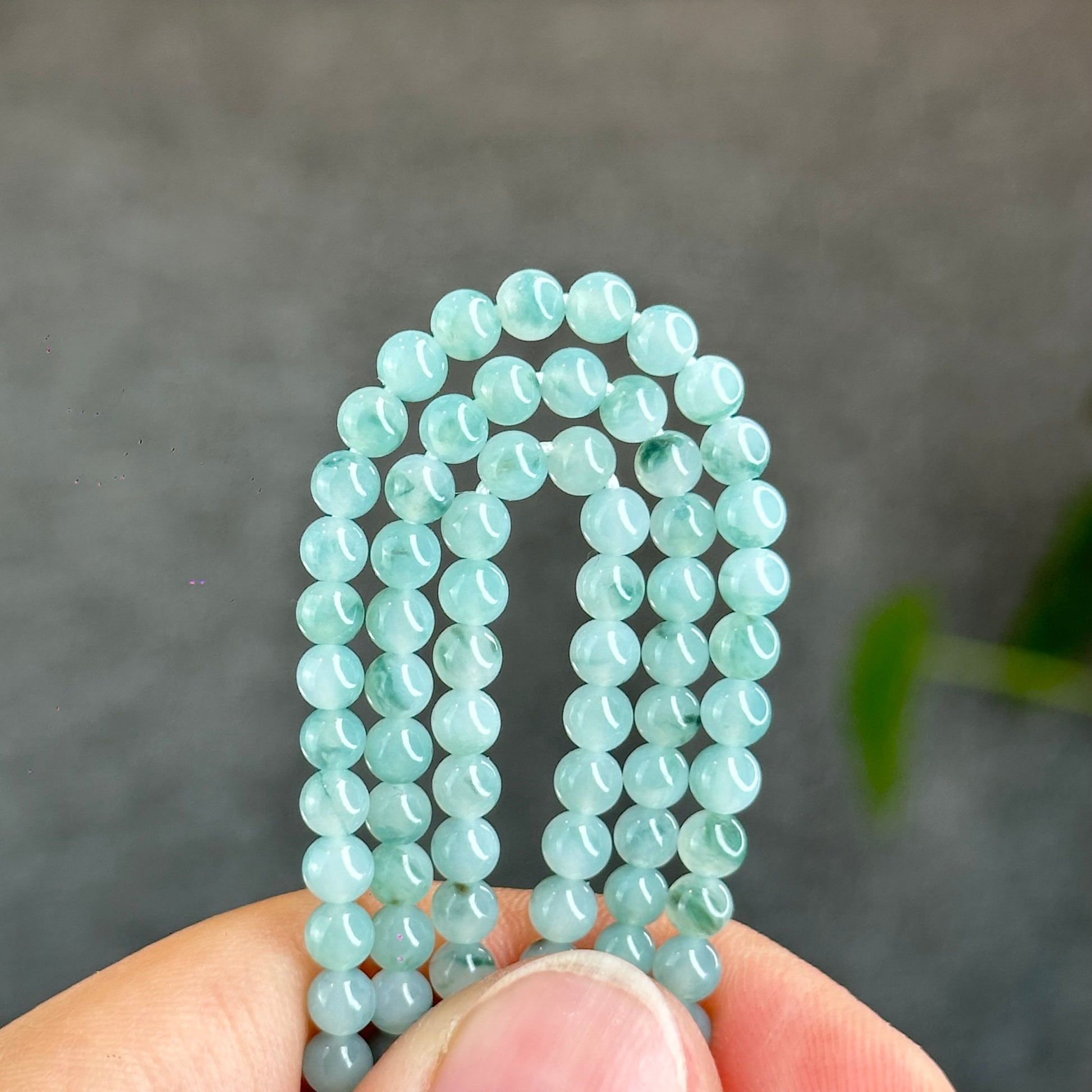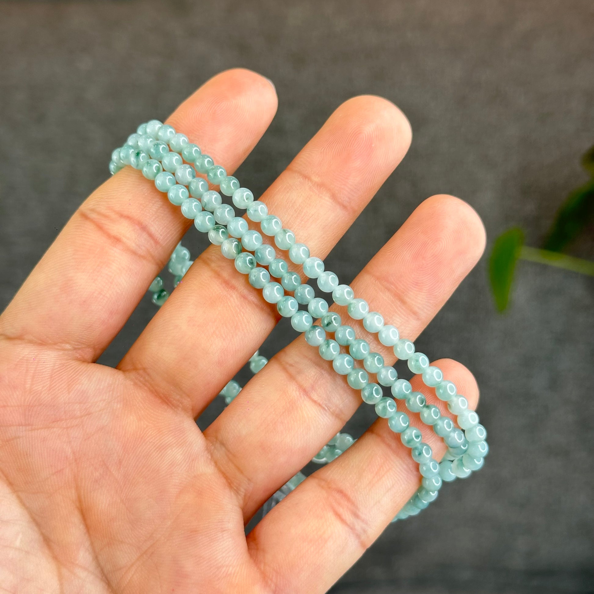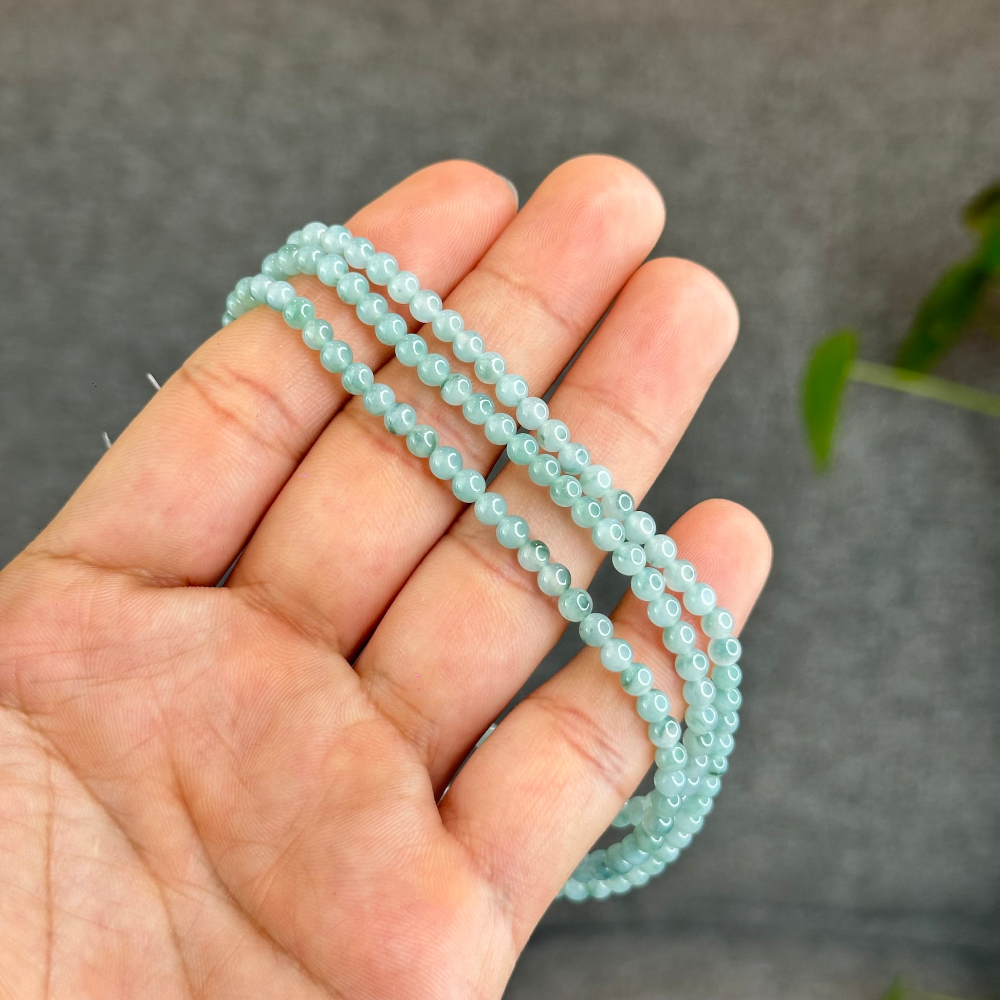 Natural Icy Floral Jadeite Jade Type A Triple Wrap Bracelet Size 4 mm