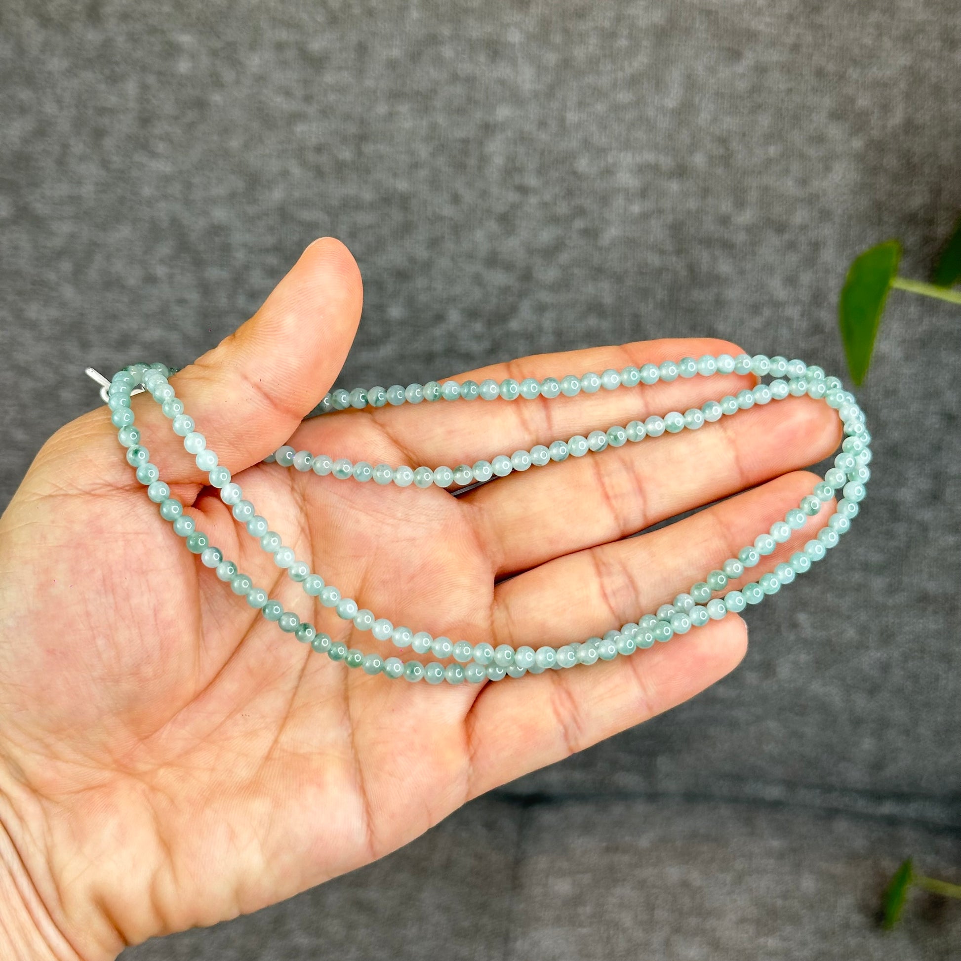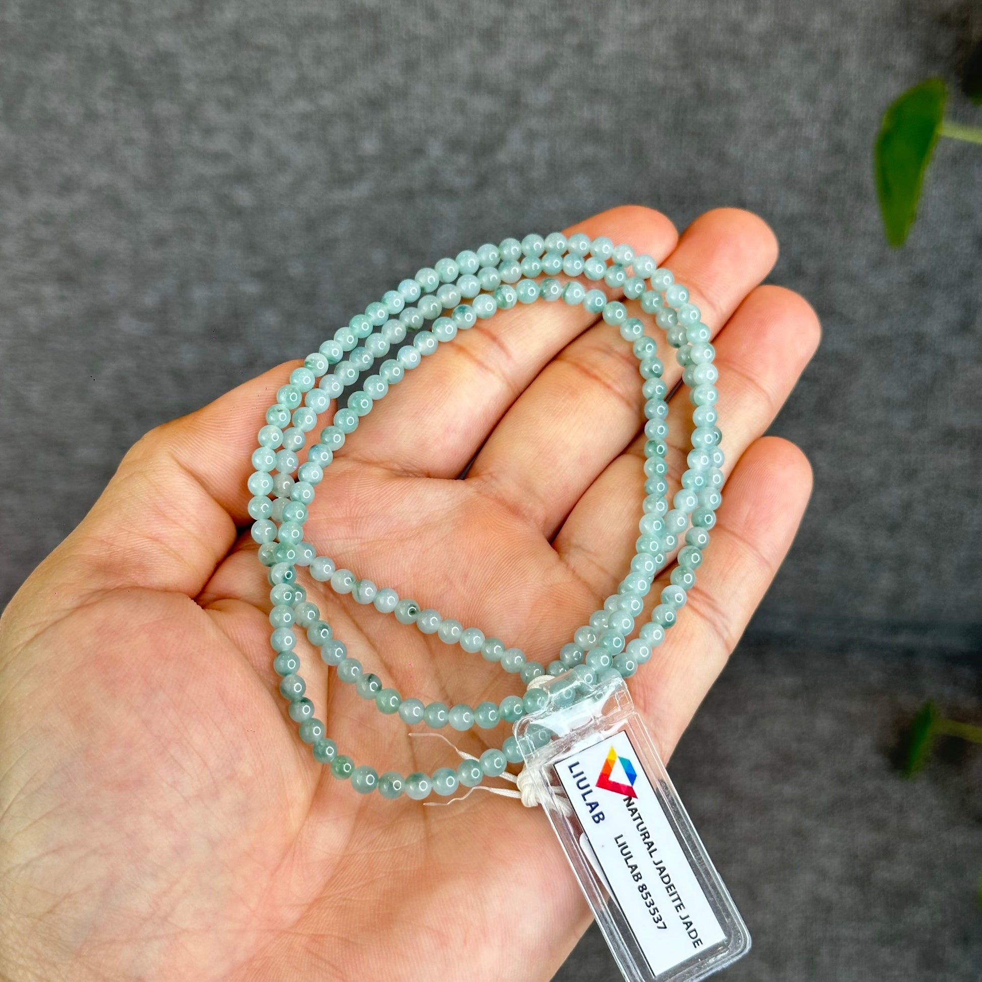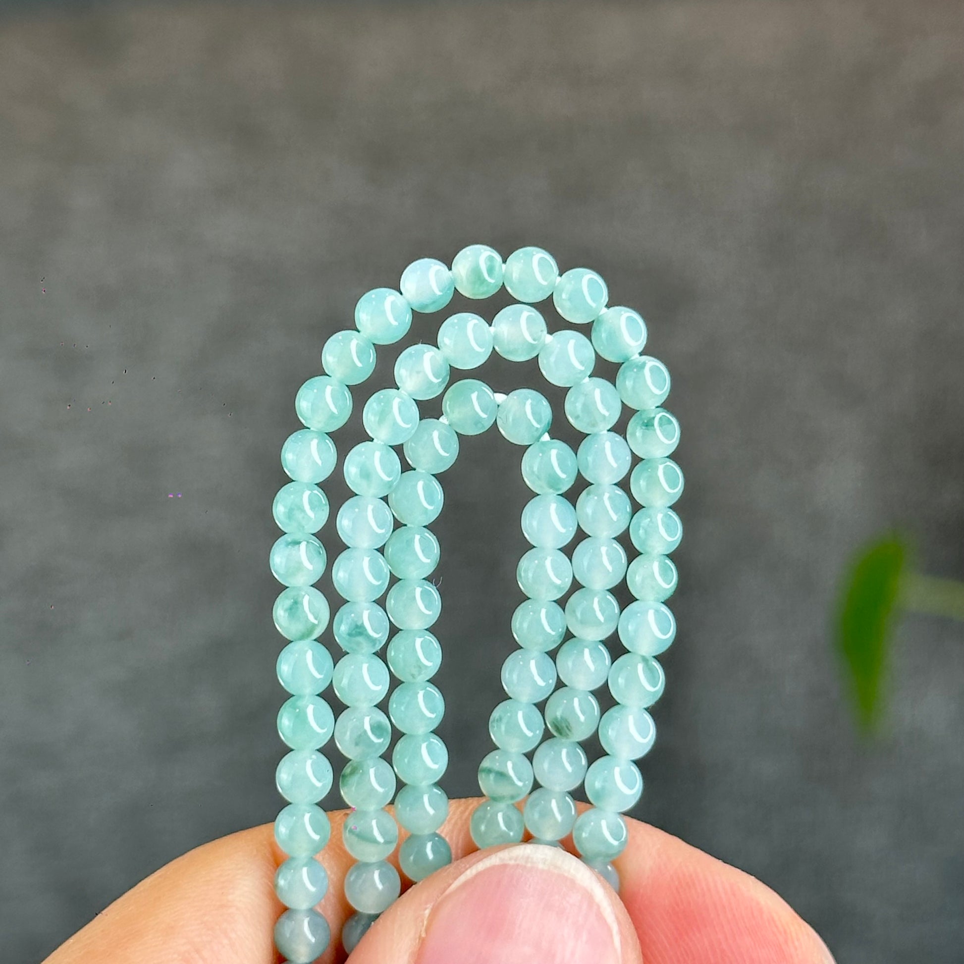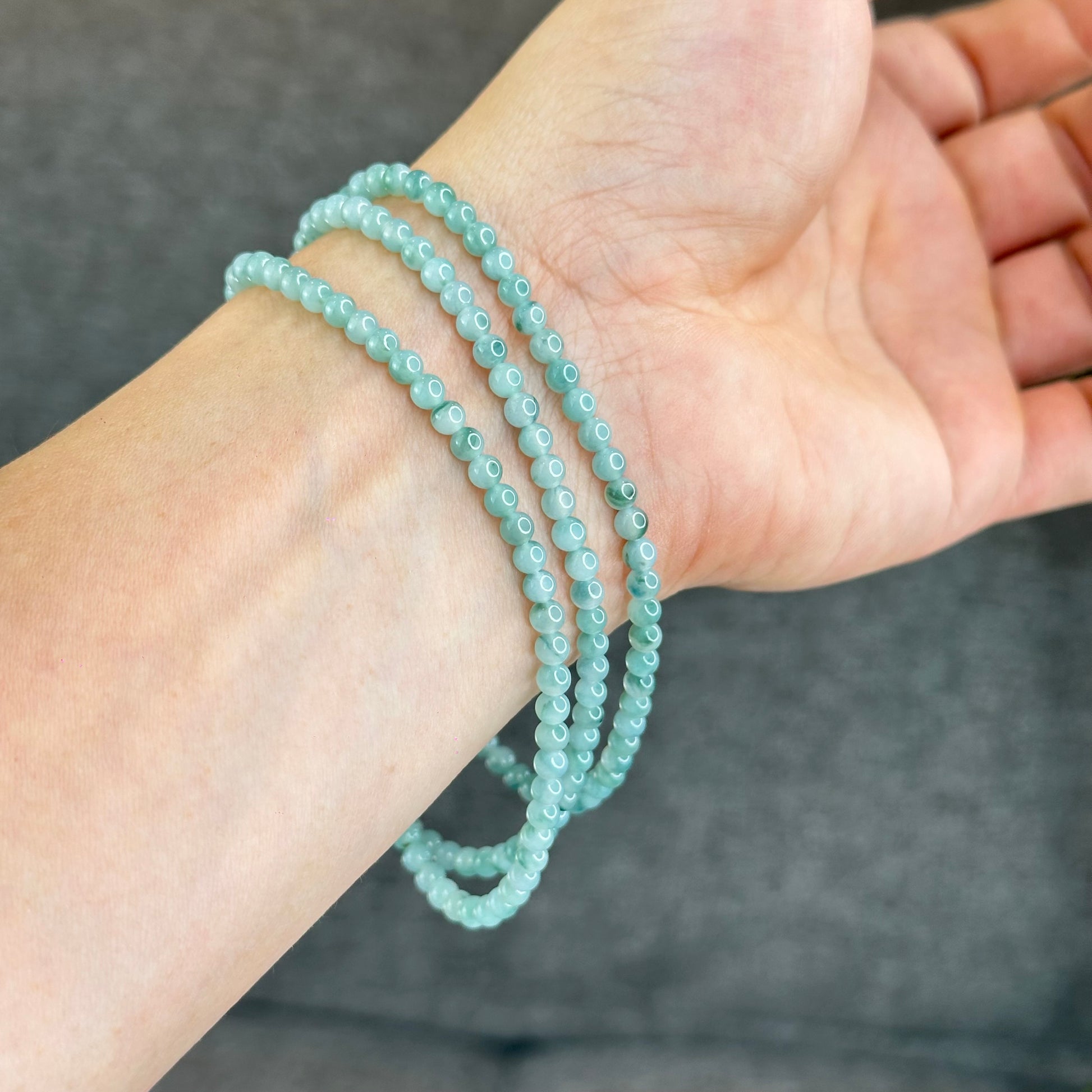 Natural Icy Floral Jadeite Jade Type A Triple Wrap Bracelet Size 4 mm