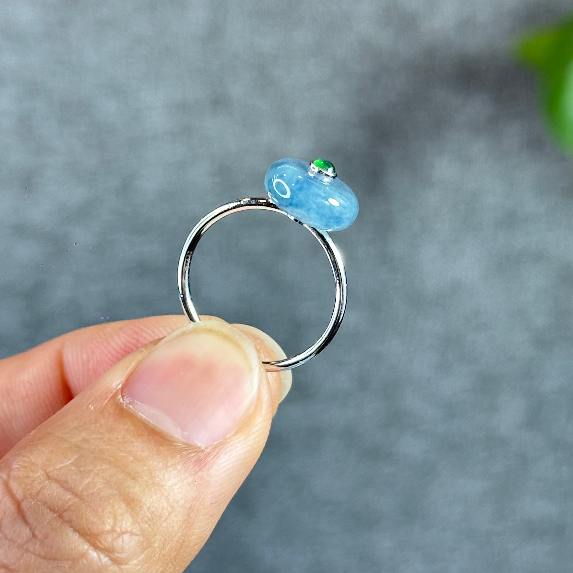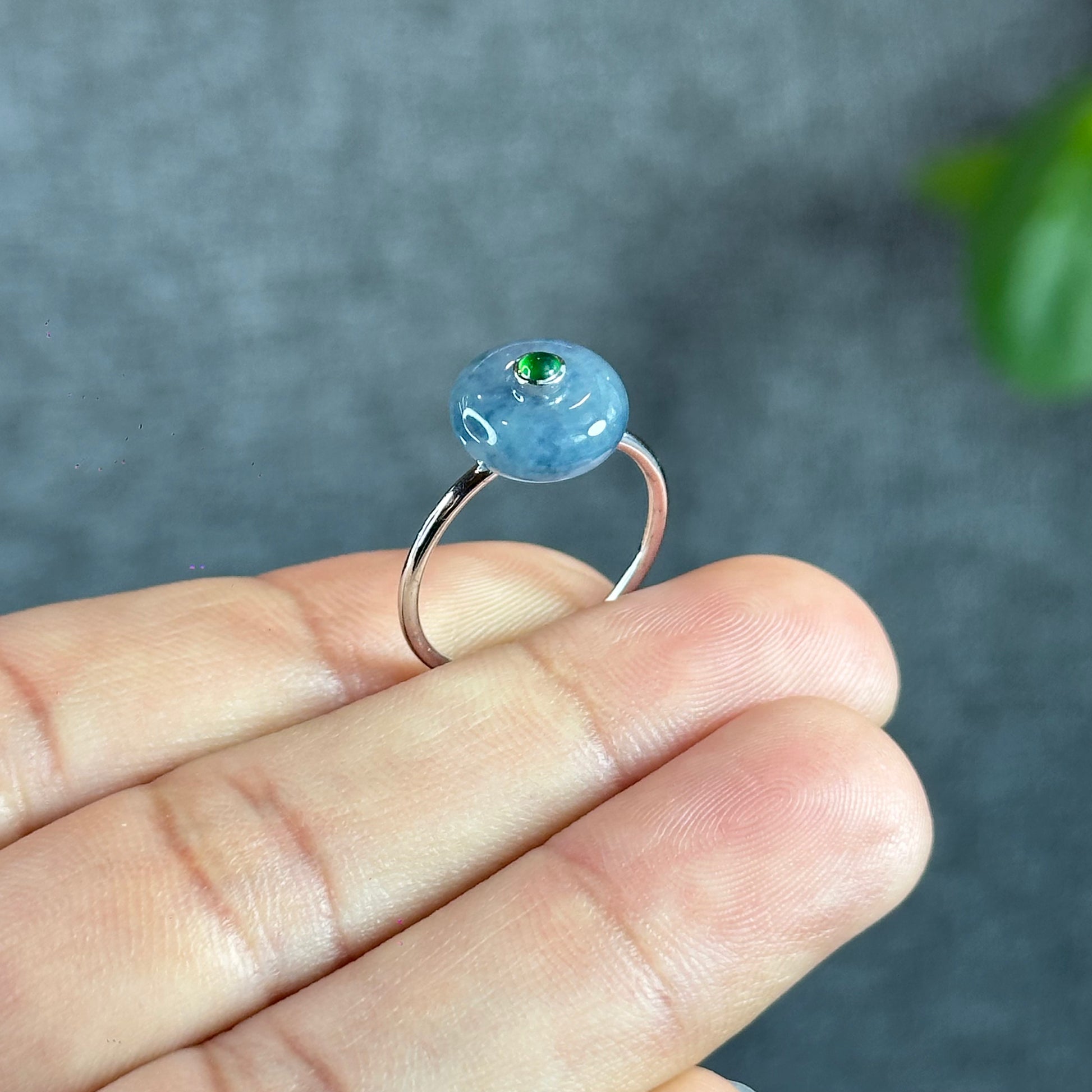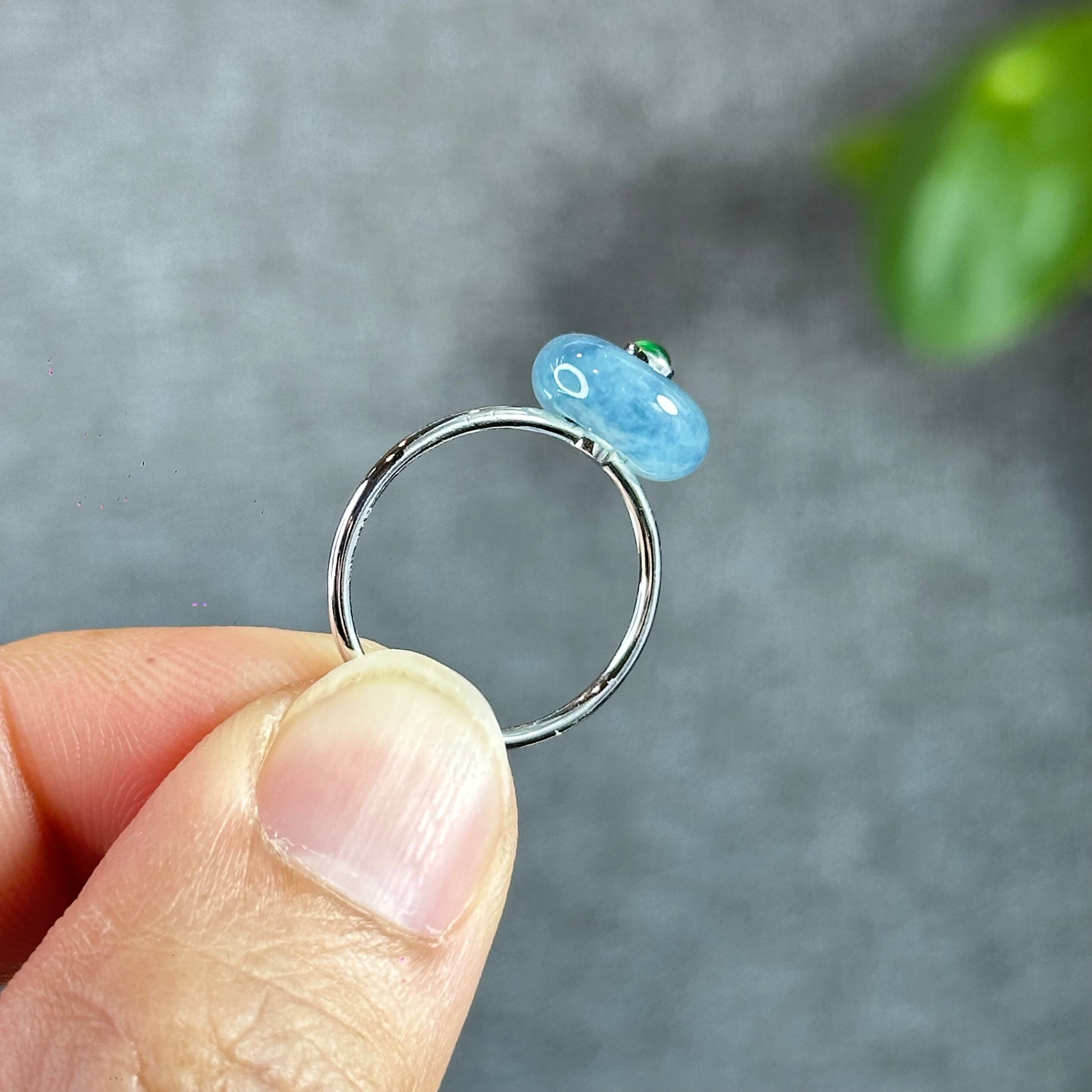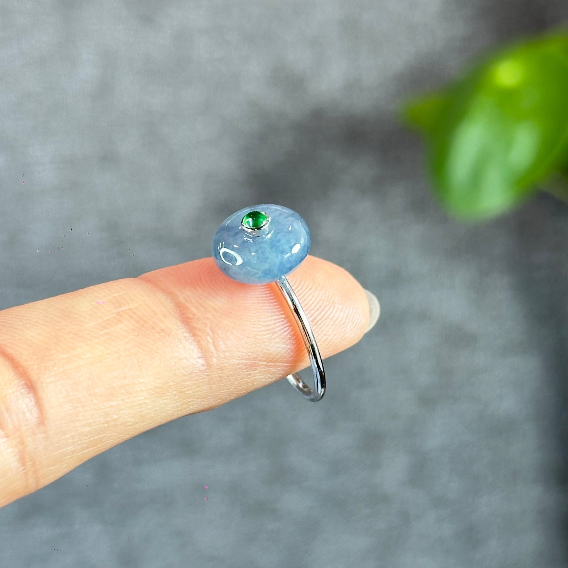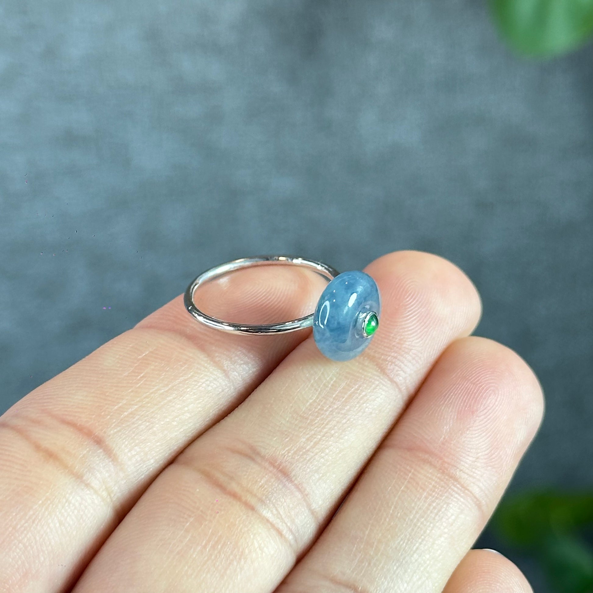 Icy Purple Blue Dong Dieu Natural Jadeite Jade Ring in 18k White Gold Setting Size 1.72 with Gem Review Certificate