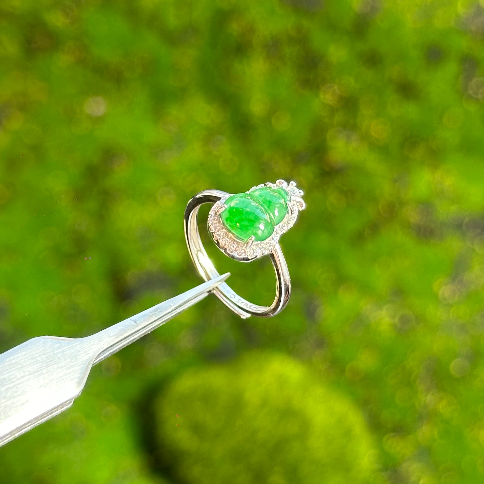 - Ho Lo Icy Imperial Green Natural Jadeite Jade Ring Free size in Silver 925 Setting