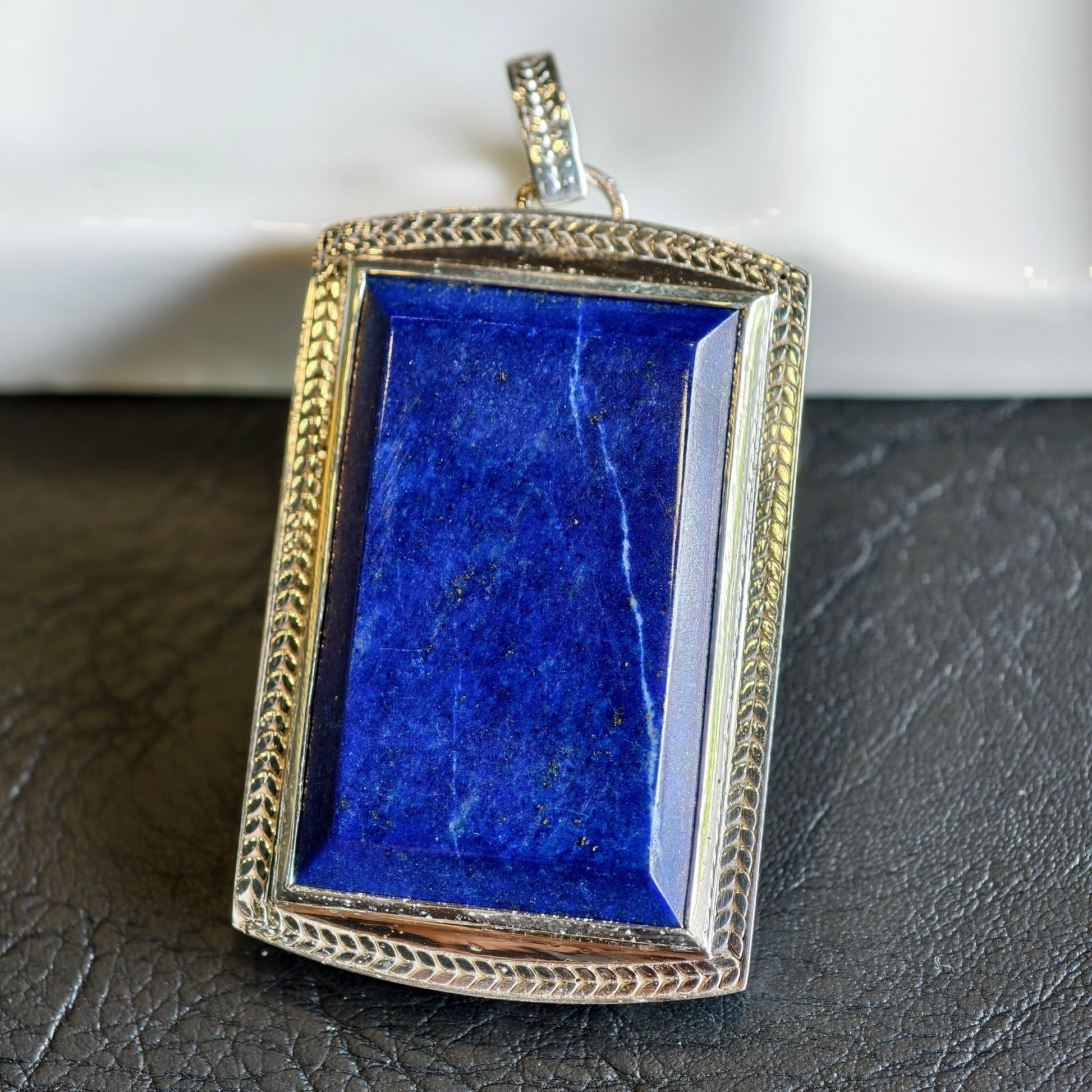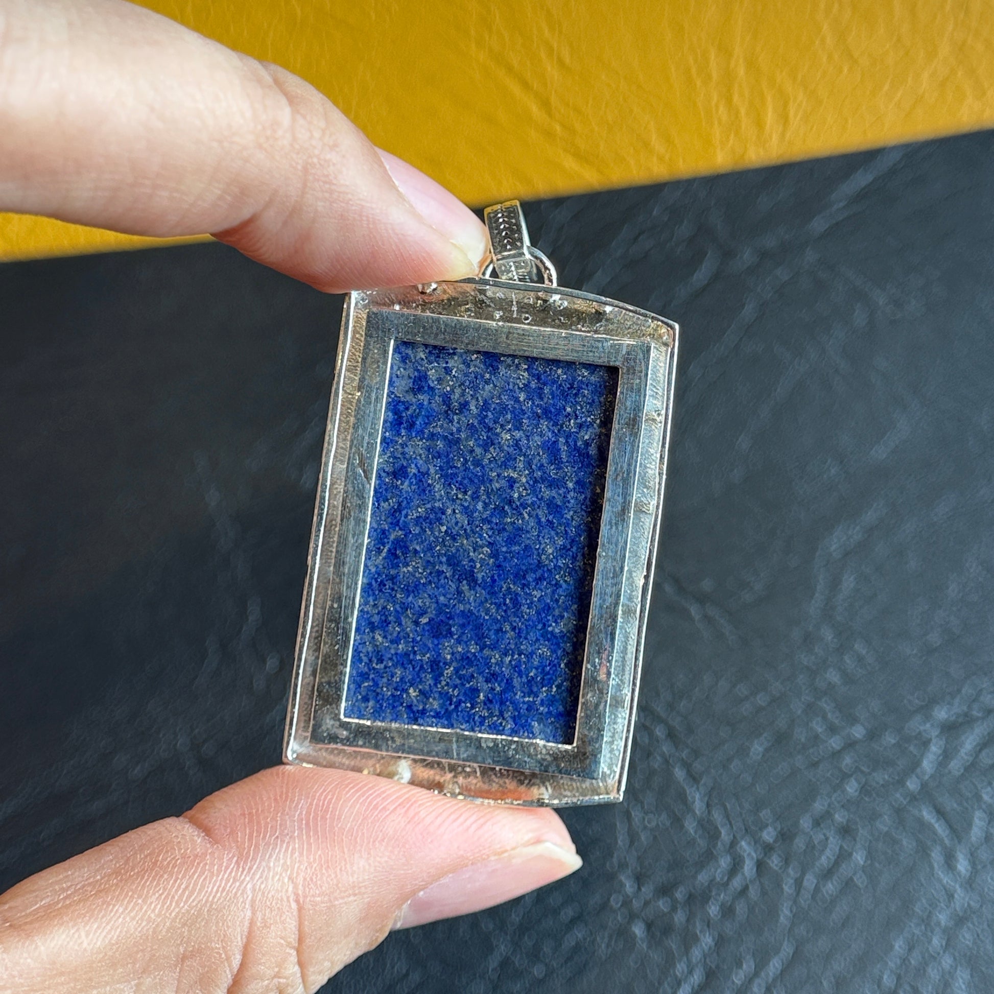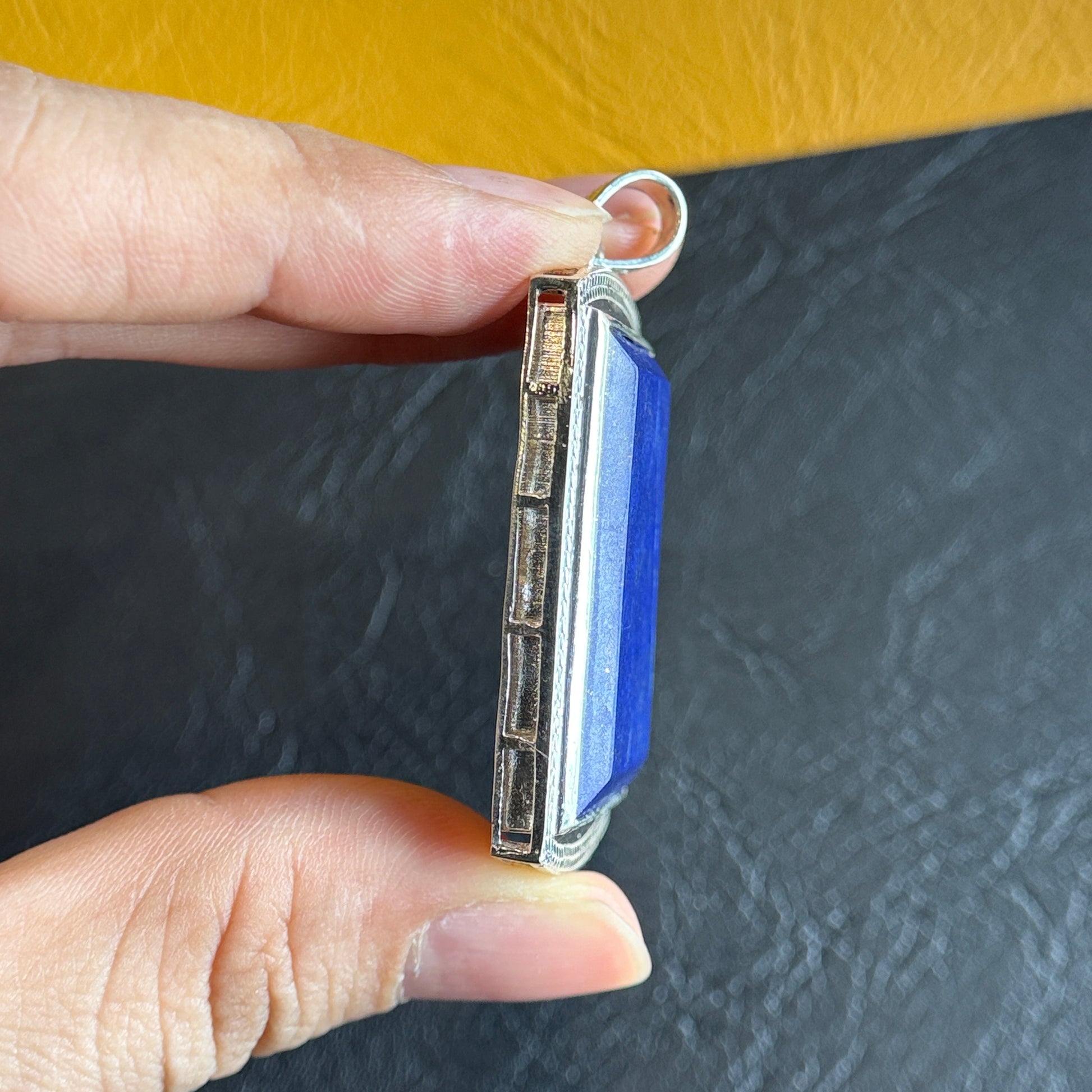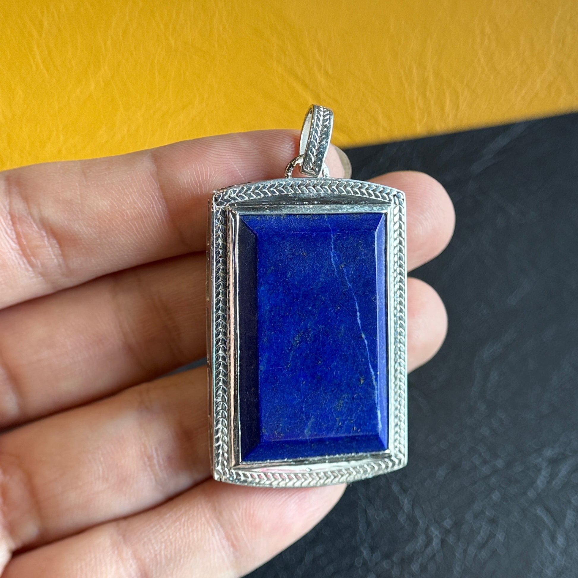 Natural Lapis Lazuli Rectangular Pendant in Gold Platted Silver Plated Setting