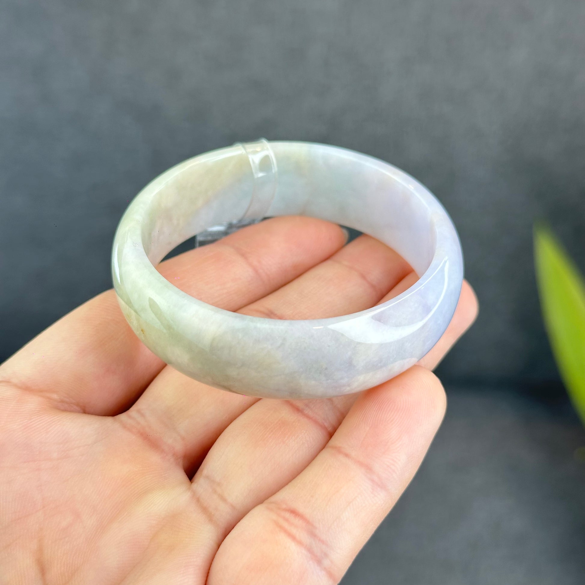 Natural Lavender Jadeite Jade Bangle Leaf Style Size 50.8 mm