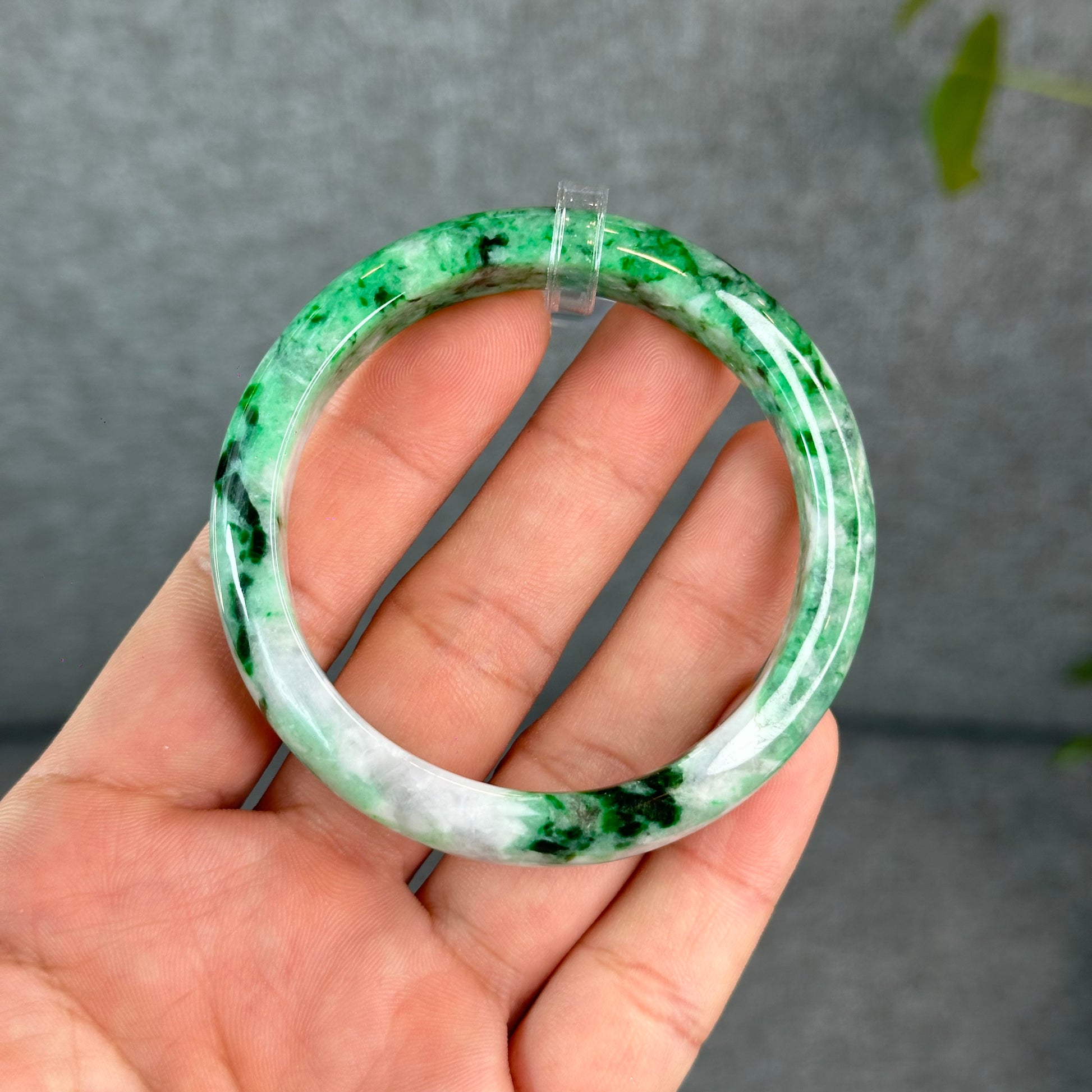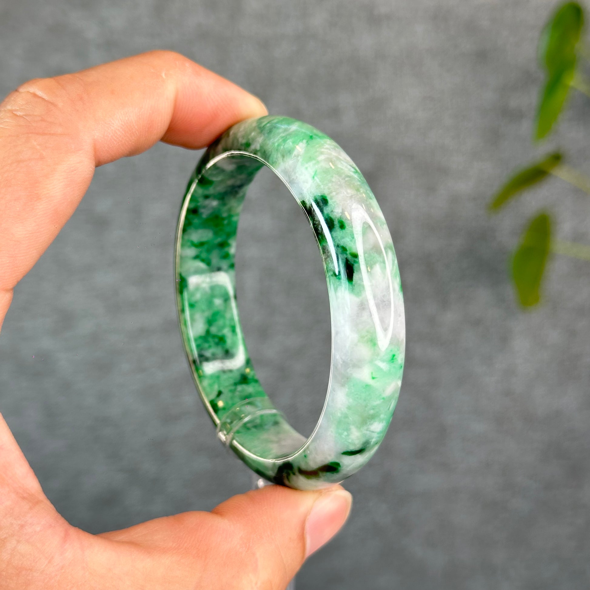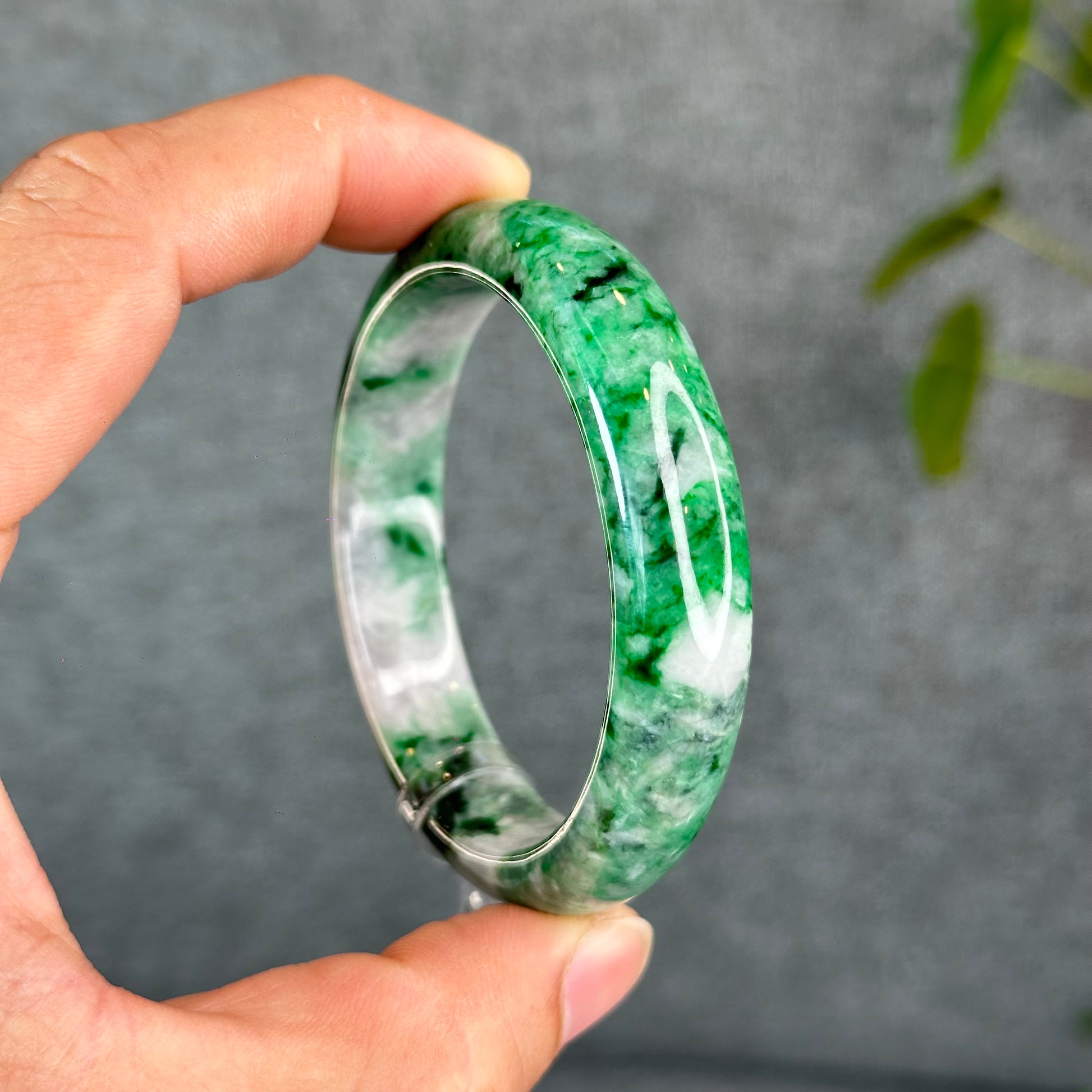 Natural Apple Green Jadeite Jade VIP Bangle Leaf Style Size 54 mm