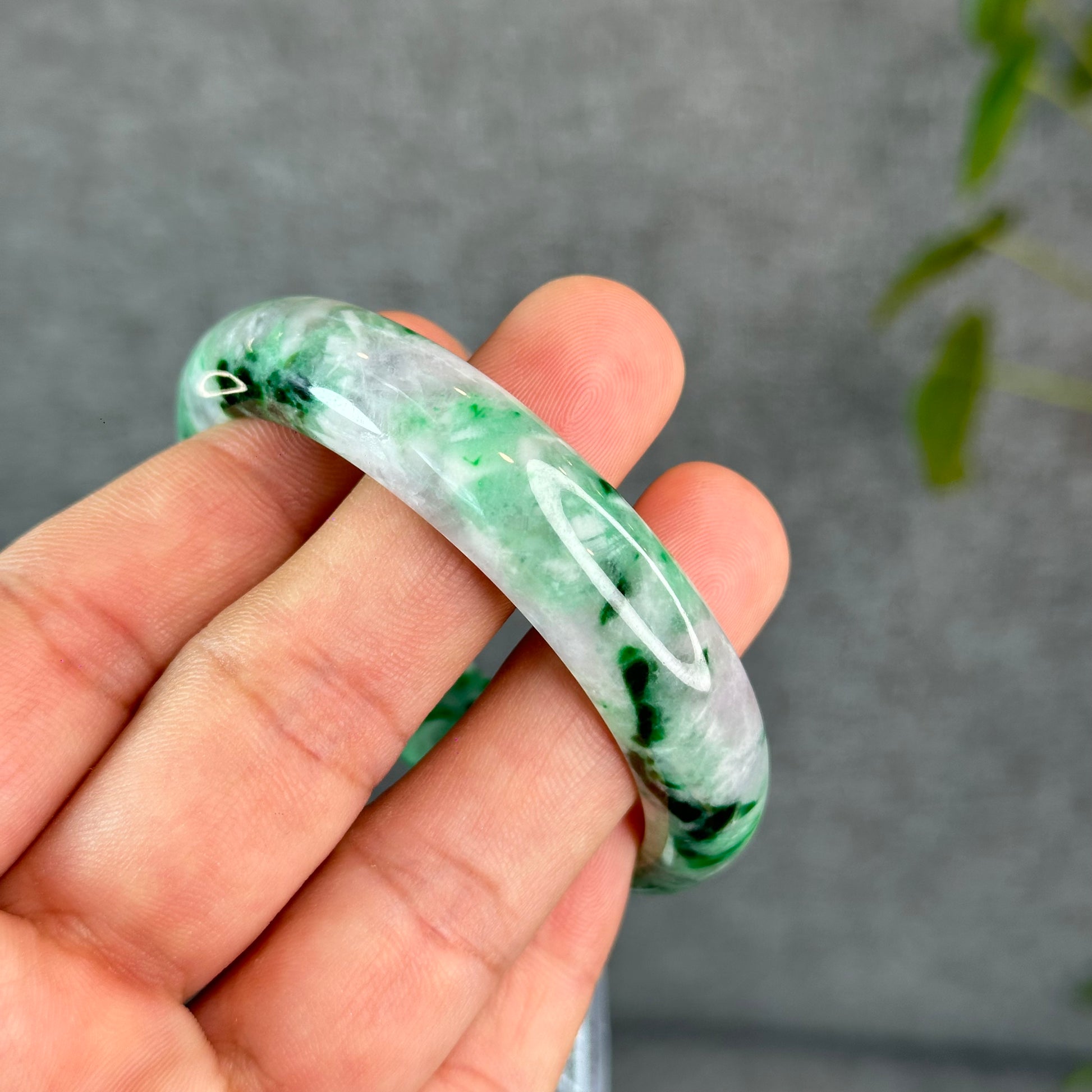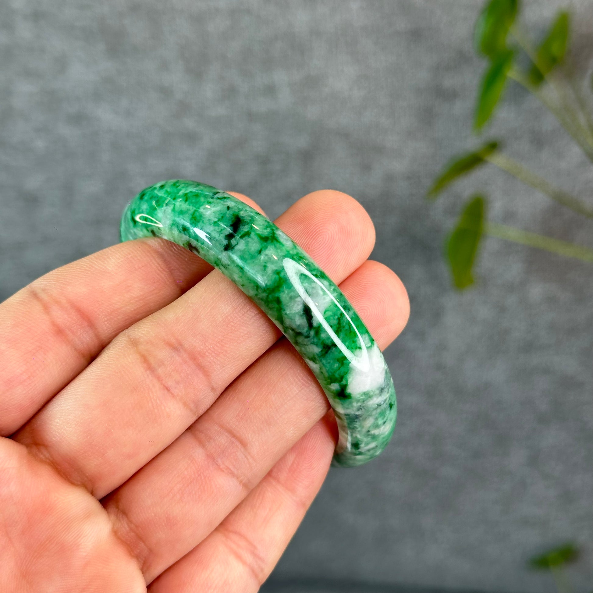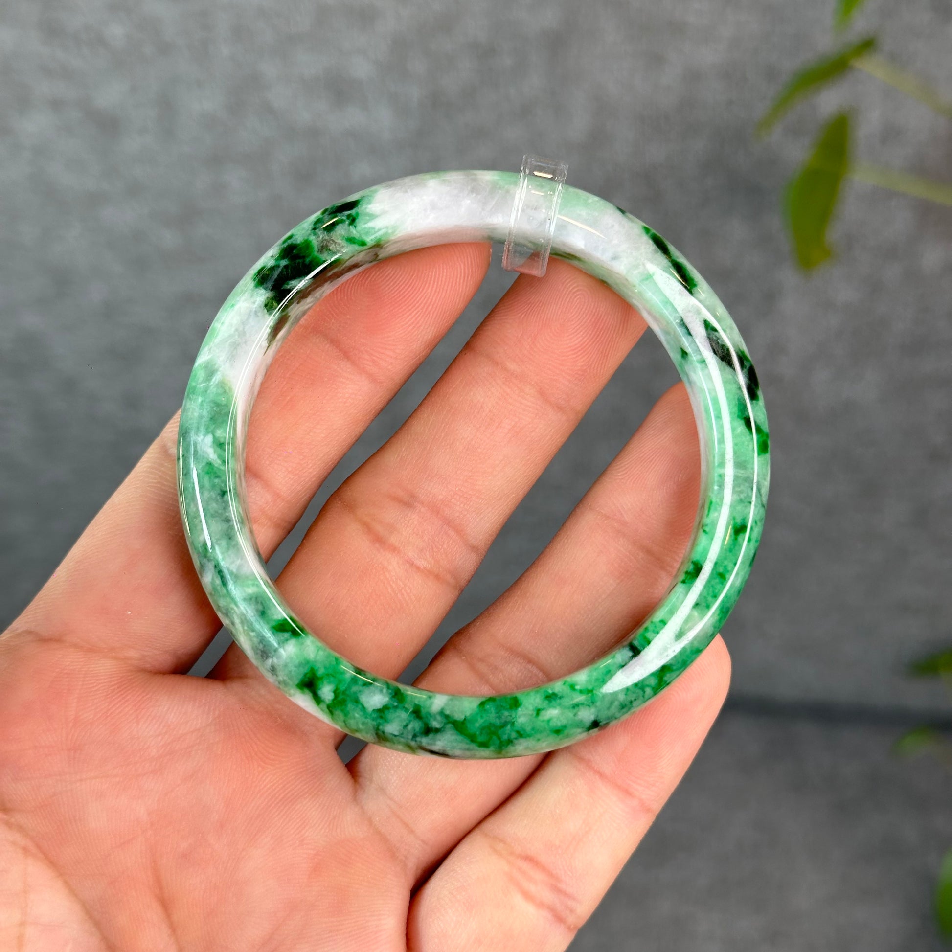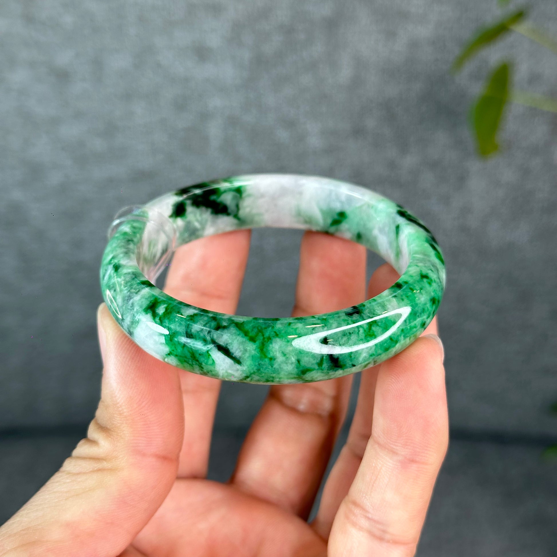 Natural Apple Green Jadeite Jade VIP Bangle Leaf Style Size 54 mm