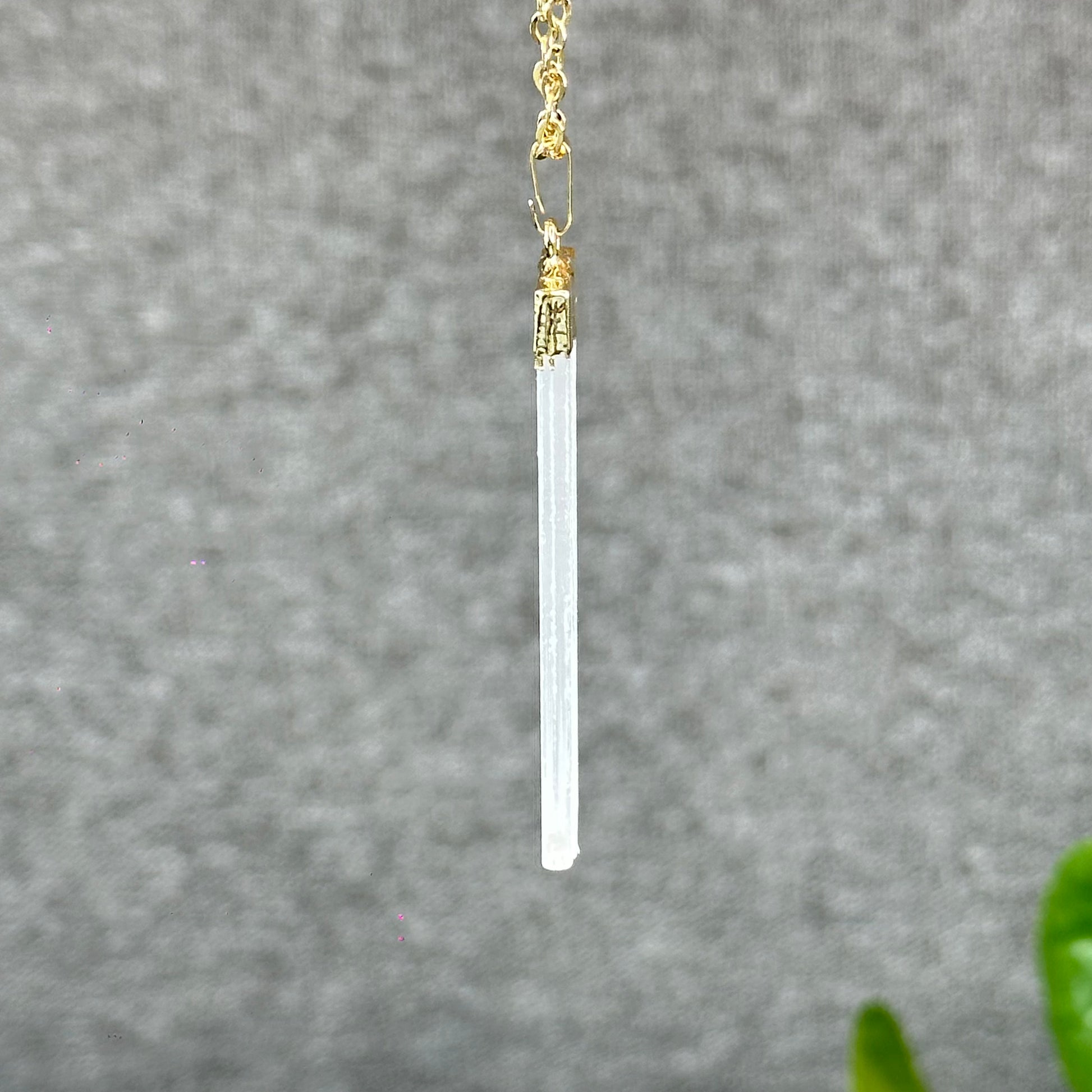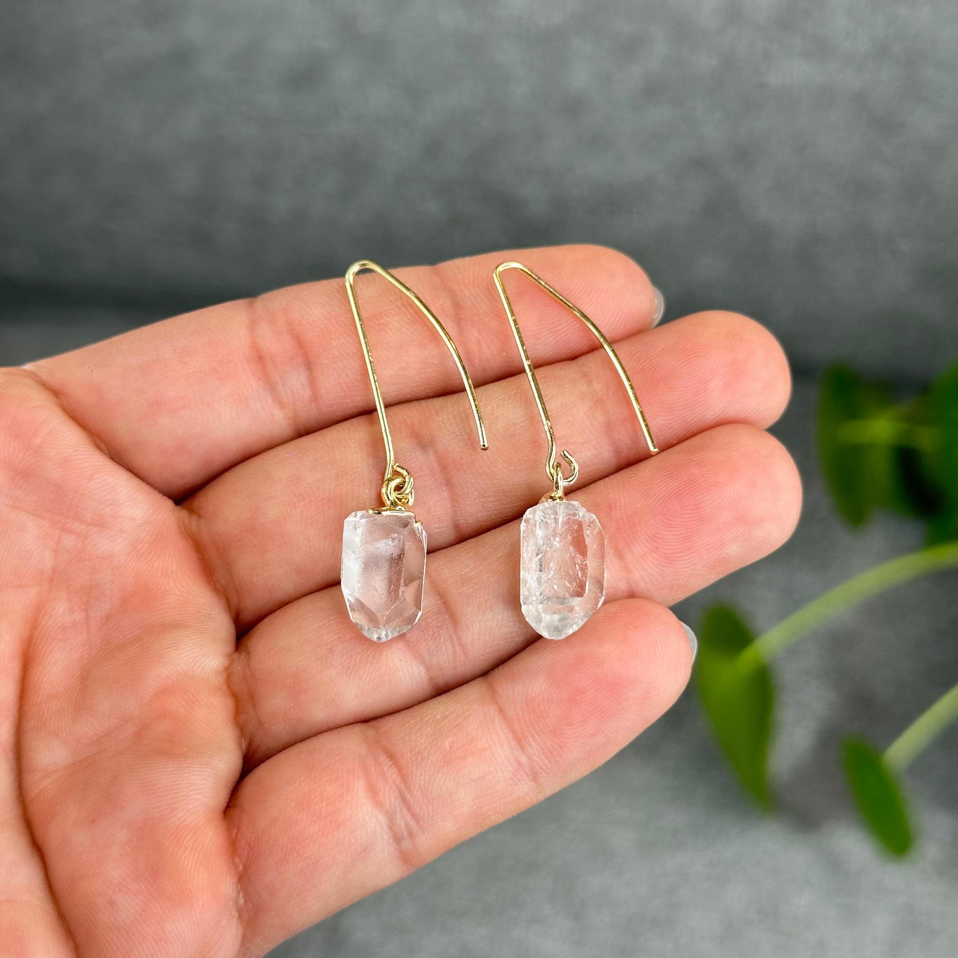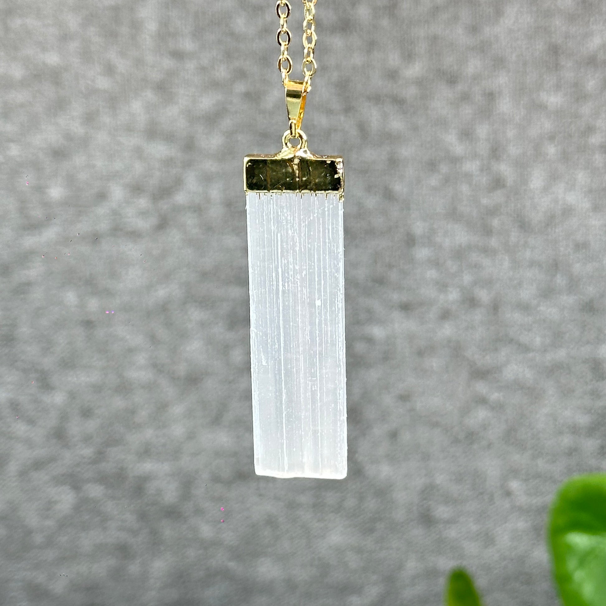 - Natural Clear Quartz Point Dangling Earrings with Selenite Rectangle Pendant with Chain Gold Platted