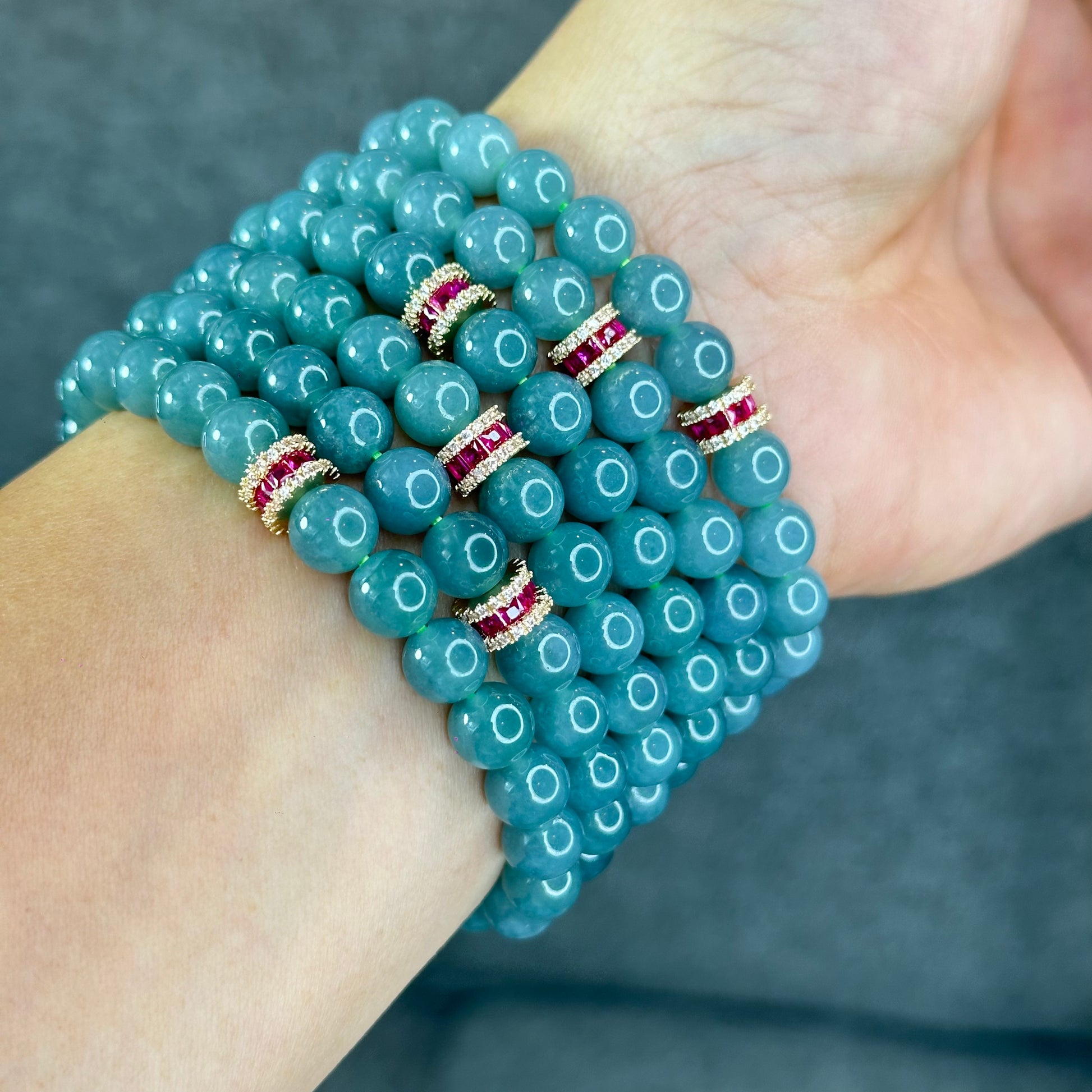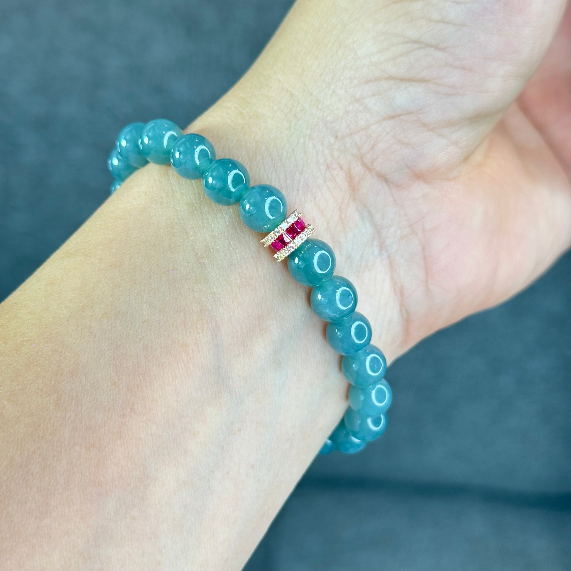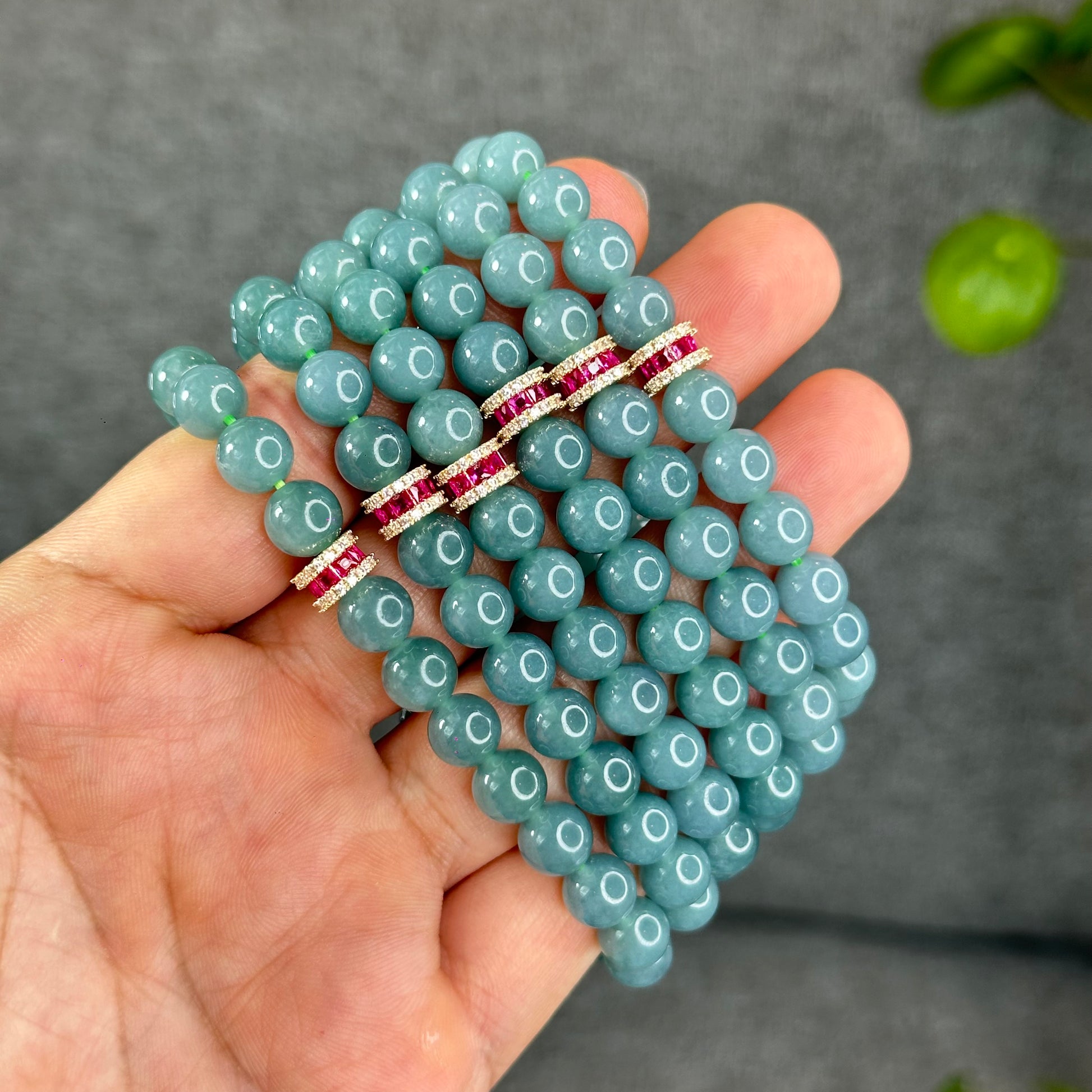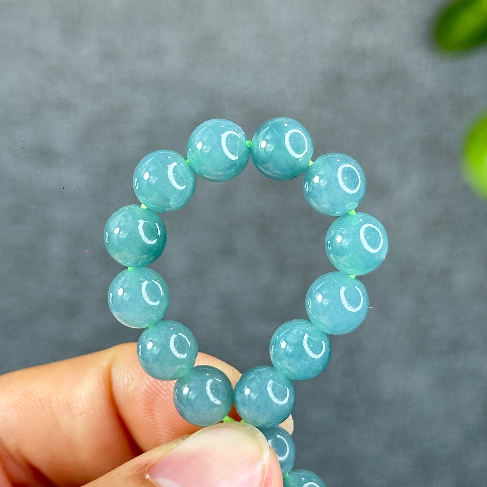Natural Semi-Translucent Light Water Green Jadeite Jade Bracelet Size 8 mm
